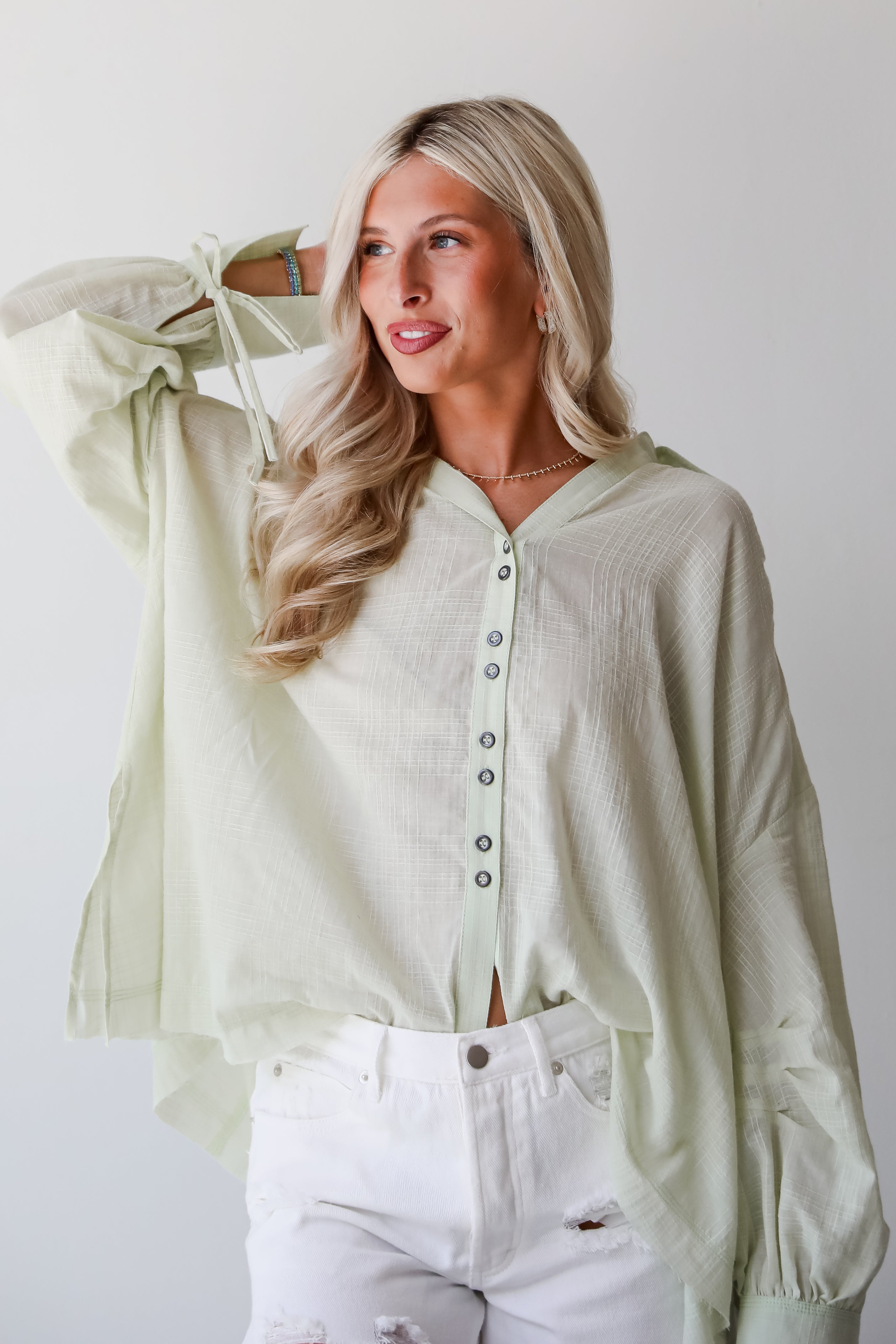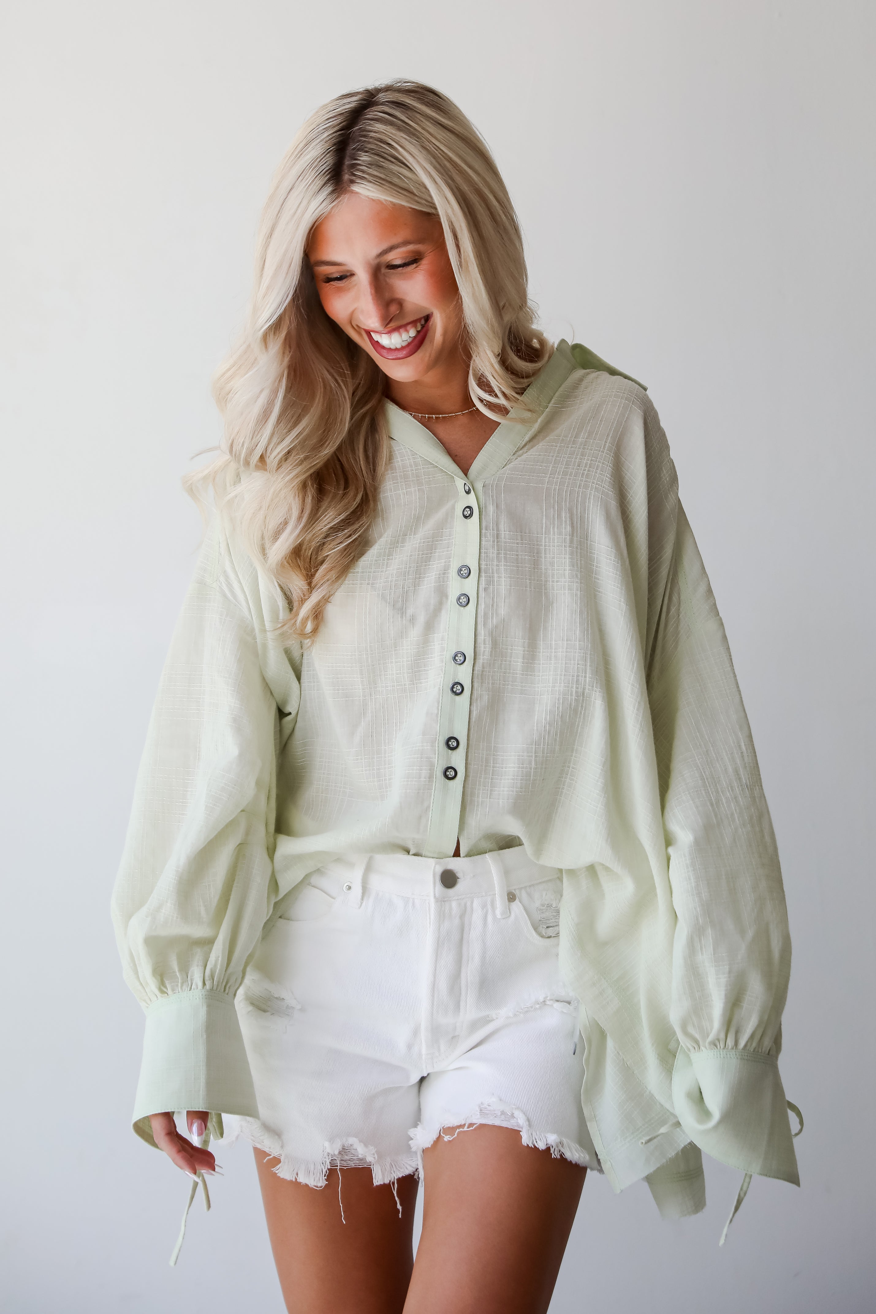 FINAL SALE - Stunning Demeanor Light Green Oversized Blouse