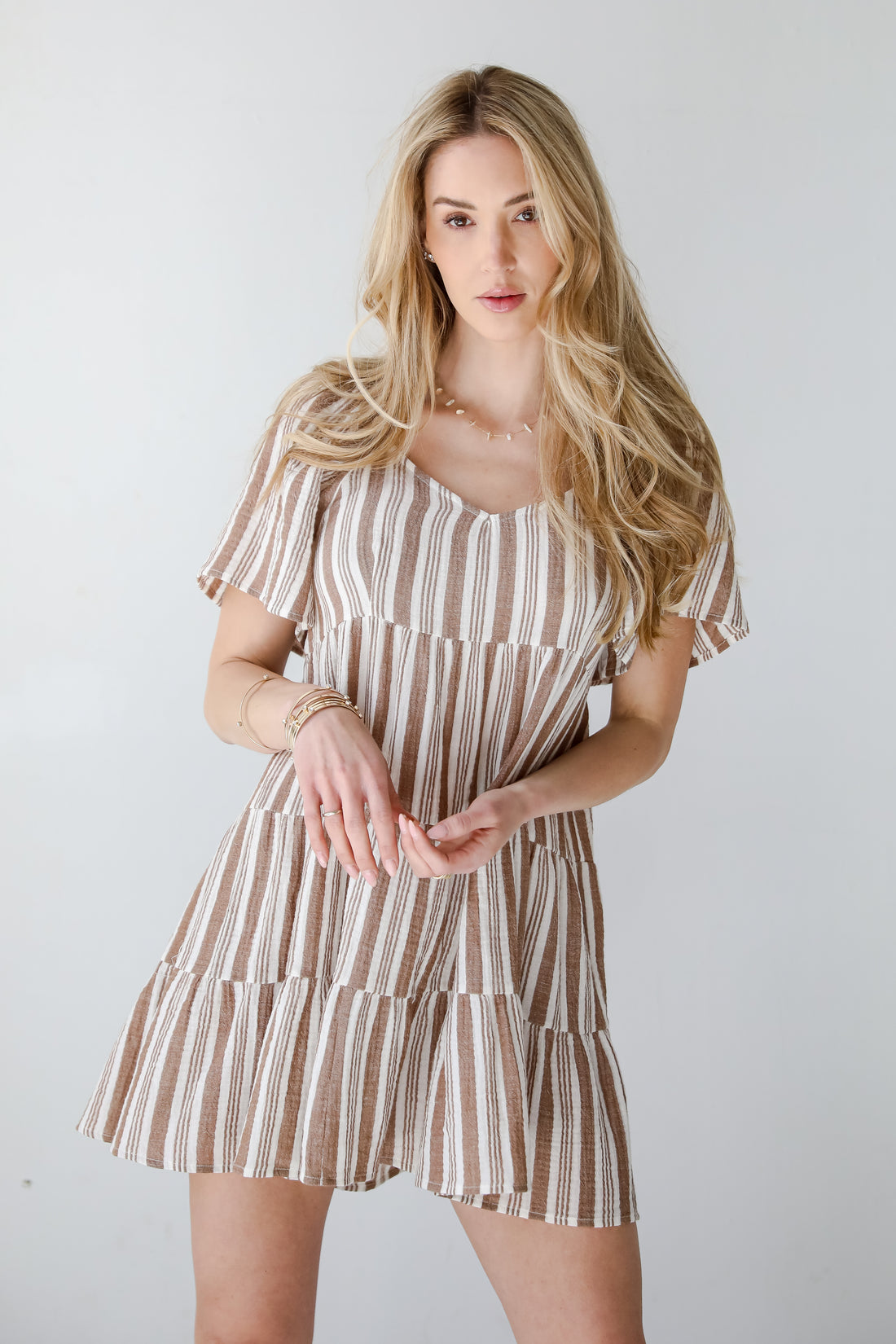 FINAL SALE - Springtime Sweetie Off White Striped Linen Tiered Mini DressFINAL SALE - Springtime Sweetie Off White Striped Linen Tiered Mini Dress- Regular price