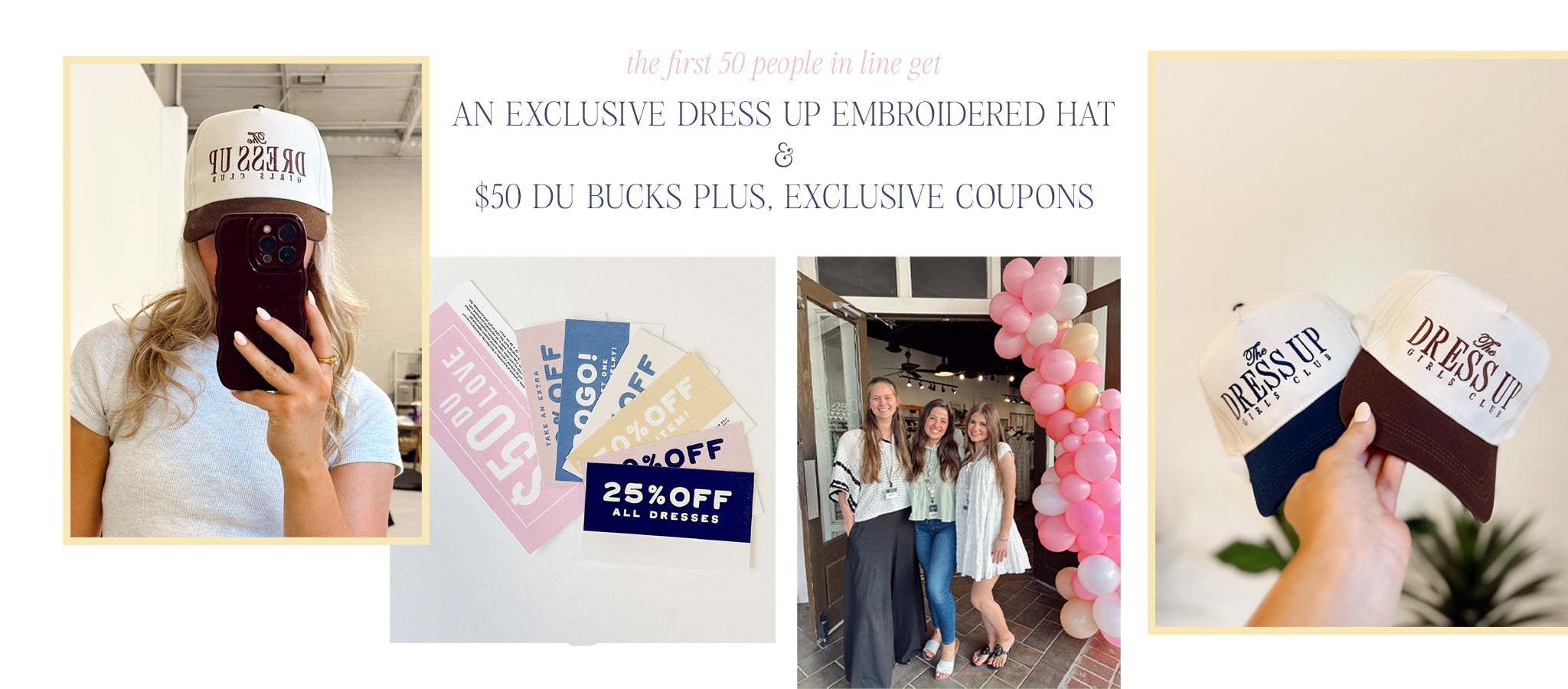 The first 50 guests in line at every store get $50 gift card vouchers + an exclusive Dress Up Hat, exclusive coupons + goodies. Each guest all day long will draw to win a surprise discount off their purchase, shop the best new arrivals, enjoy refreshments and more!