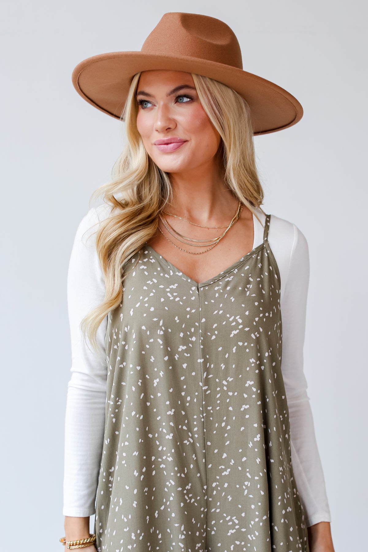 The Absolute Cutest Spotted Wide Leg Jumpsuit has arrived just in time for everyone to fall for your charm this season! This jumpsuit is designed to make a bold fashion statement, showcasing your individuality and flair for modern trends. The green spotted pattern adds a whimsical touch to your outfit, creating an eye-catching and unique appearance. The wide-leg design is the defining feature of this jumpsuit, creating a relaxed and flowy silhouette that's perfect for making a statement. The wide legs allow for freedom of movement while adding a touch of drama and elegance to your look. Pair this green spotted wide leg jumpsuit with heels and statement accessories for a chic and eye-catching look, or go for a more relaxed vibe with flats and minimalist jewelry!