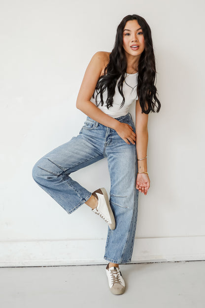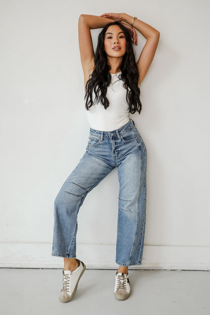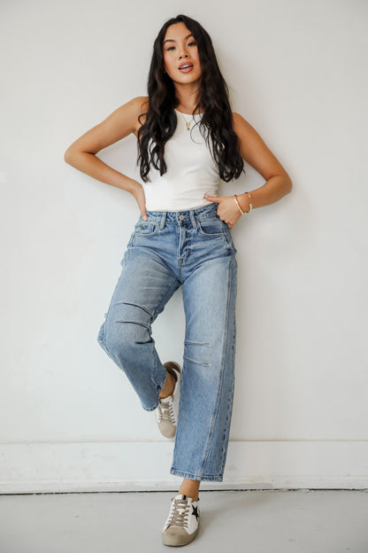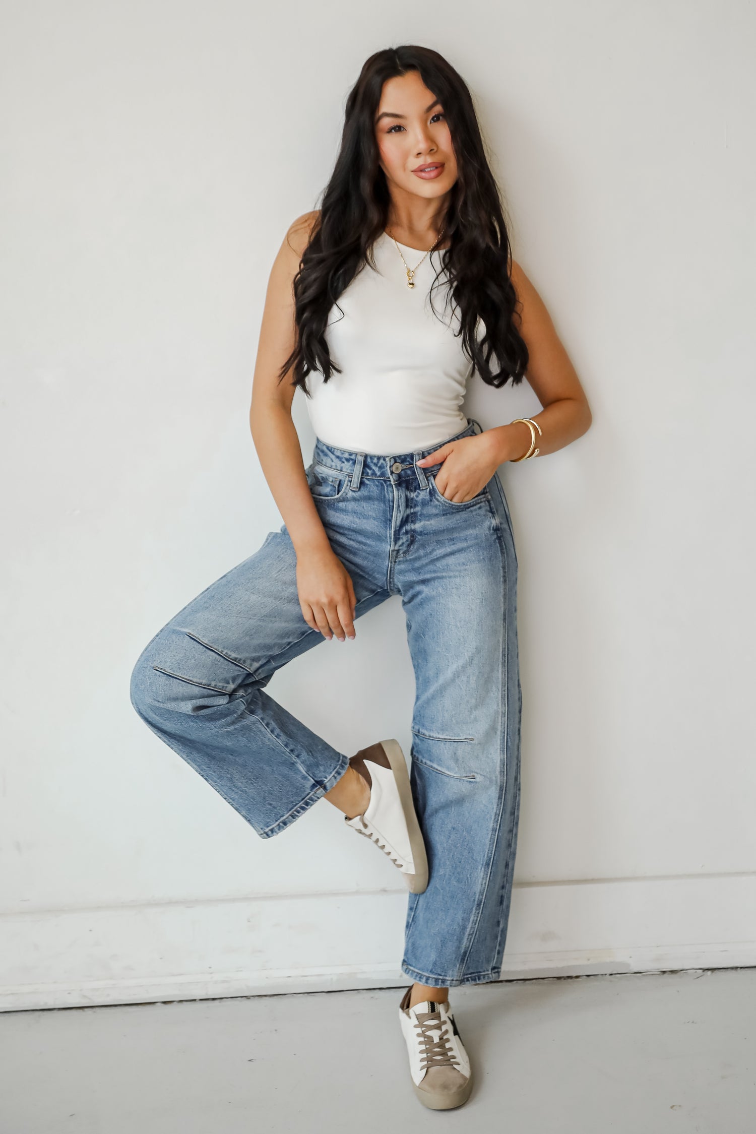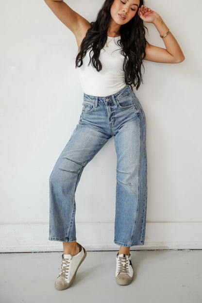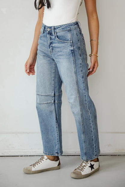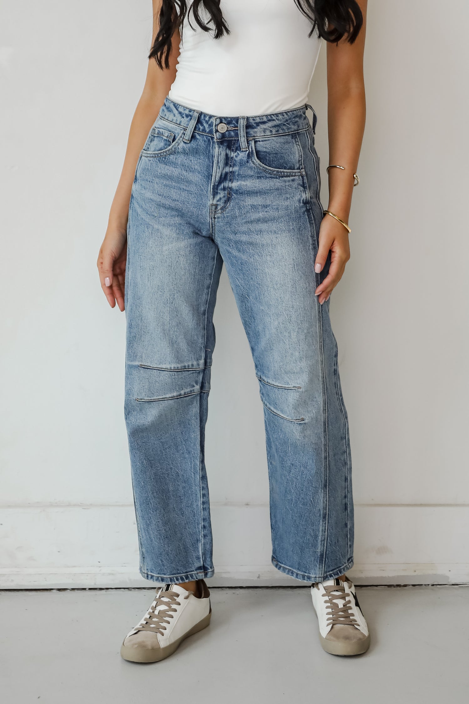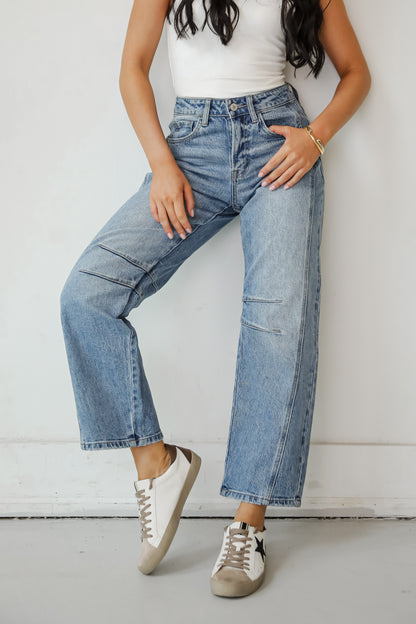 Upgrade your denim game with the Addy Medium Wash High-Rise Barrel Jeans—the perfect blend of effortless style and modern edge! Designed with a flattering high-rise waist, these jeans cinch you in while offering a relaxed, curved barrel-leg silhouette for a trendy, laid-back vibe. The medium wash gives them a timeless, versatile look, making them easy to dress up or down. Whether you pair them with a fitted tank and sneakers for a casual day out or a sleek bodysuit and heels for a chic night out, these jeans bring the perfect mix of structure and comfort to your wardrobe. A must-have for the fashion-forward trendsetter!