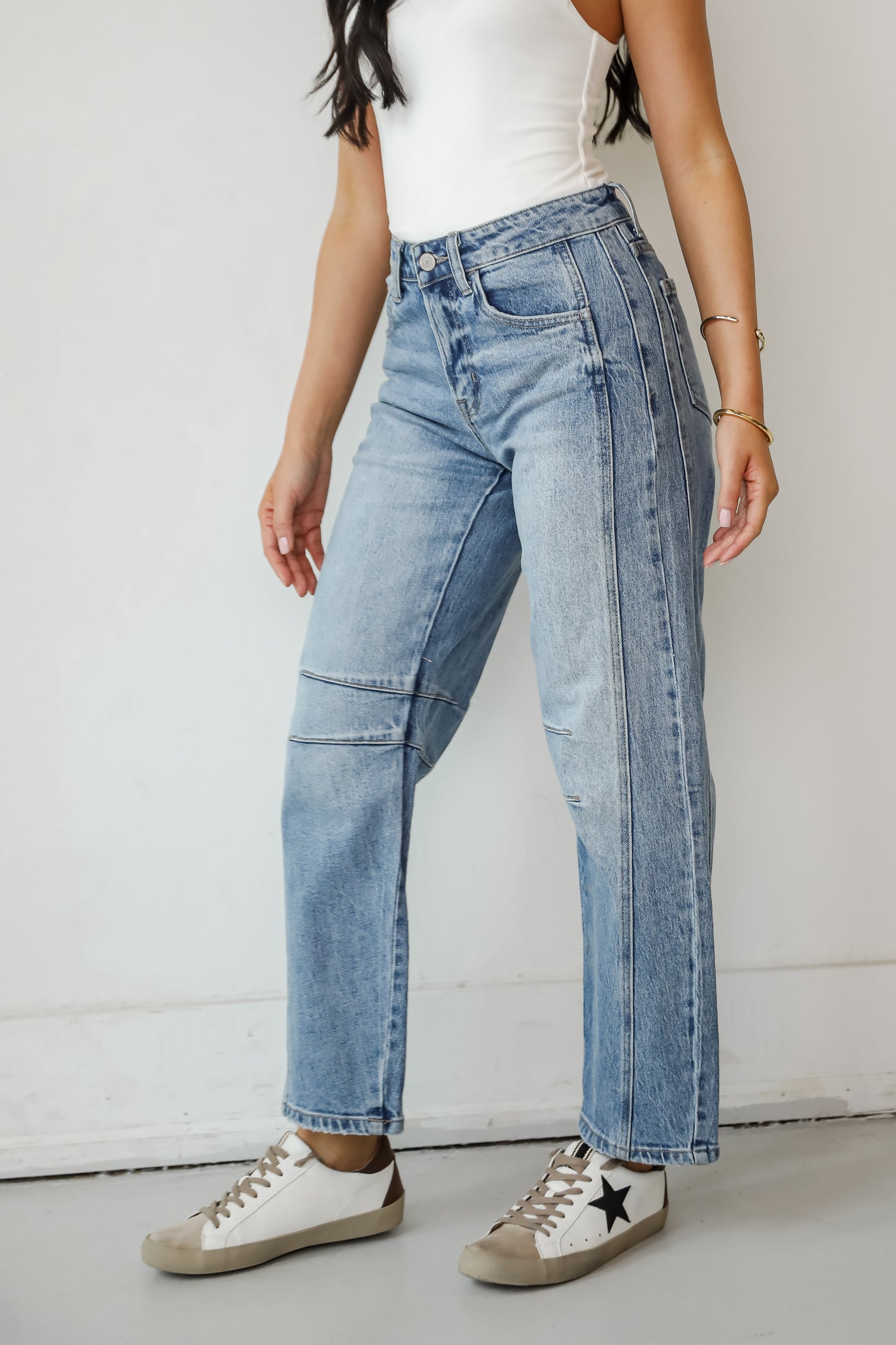 - Slightly Stretchy Medium Wash Denim Fabrication