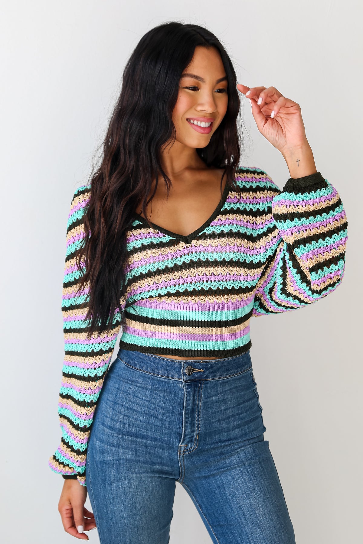 Catch at least a couple compliments with help from the Admire You Crochet Knit Top! This top is designed to make a statement while keeping you cozy and fashionable. The colorful striped crochet knit design exudes a sense of playfulness and creativity, creating a captivating visual appeal that's perfect for adding a touch of personality to your look. The vivid stripes add a youthful and energetic vibe, making it ideal for various occasions. Crafted with meticulous attention to detail, this top offers a comfortable and relaxed fit that envelops you in warmth. The crochet knit material not only adds a textured and cozy element but also ensures you stay snug during cooler seasons. The long sleeves provide extra warmth and versatility, making this top suitable for transitioning from daytime to evening events with ease. The vibrant stripes are a versatile canvas for expressing your unique style!