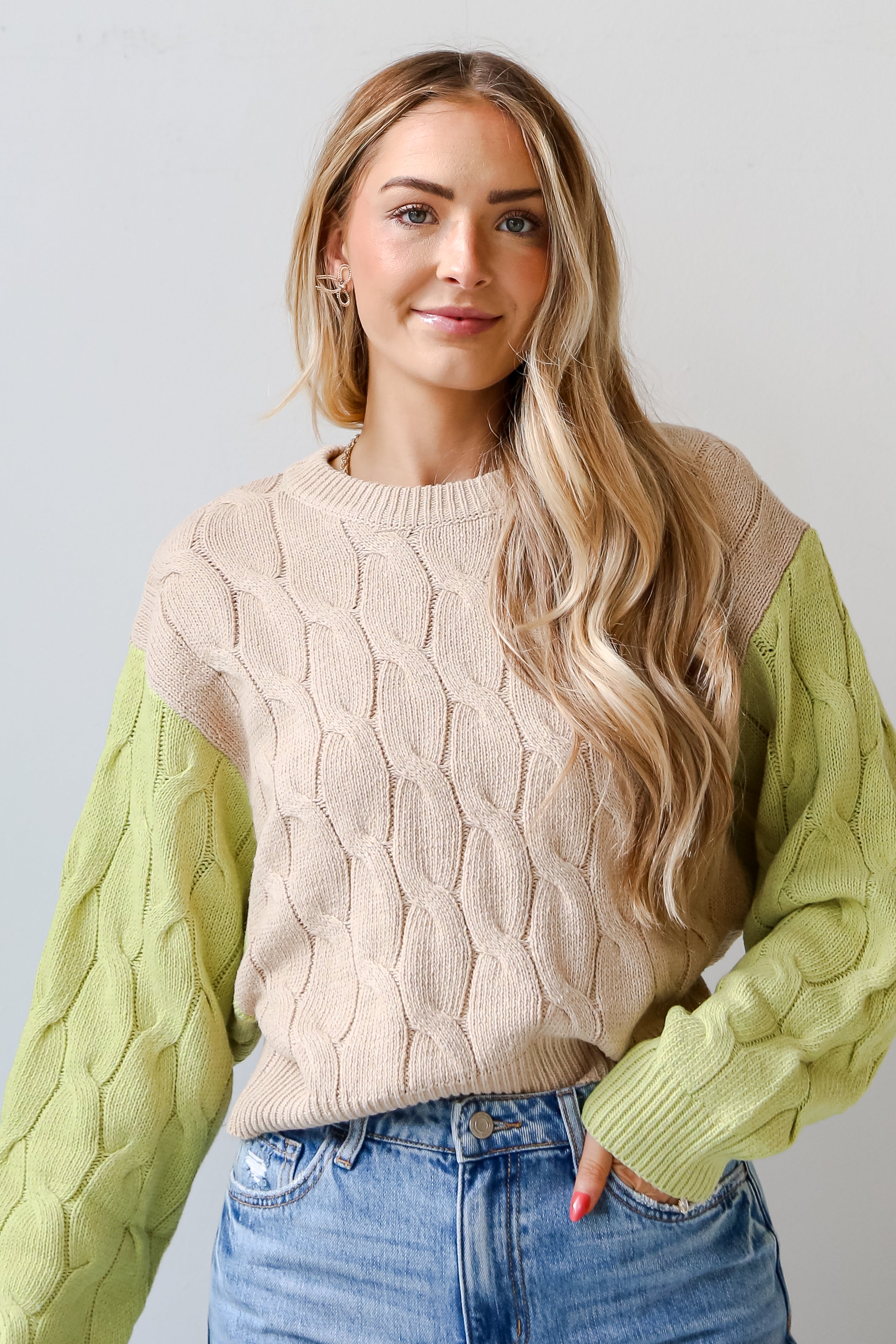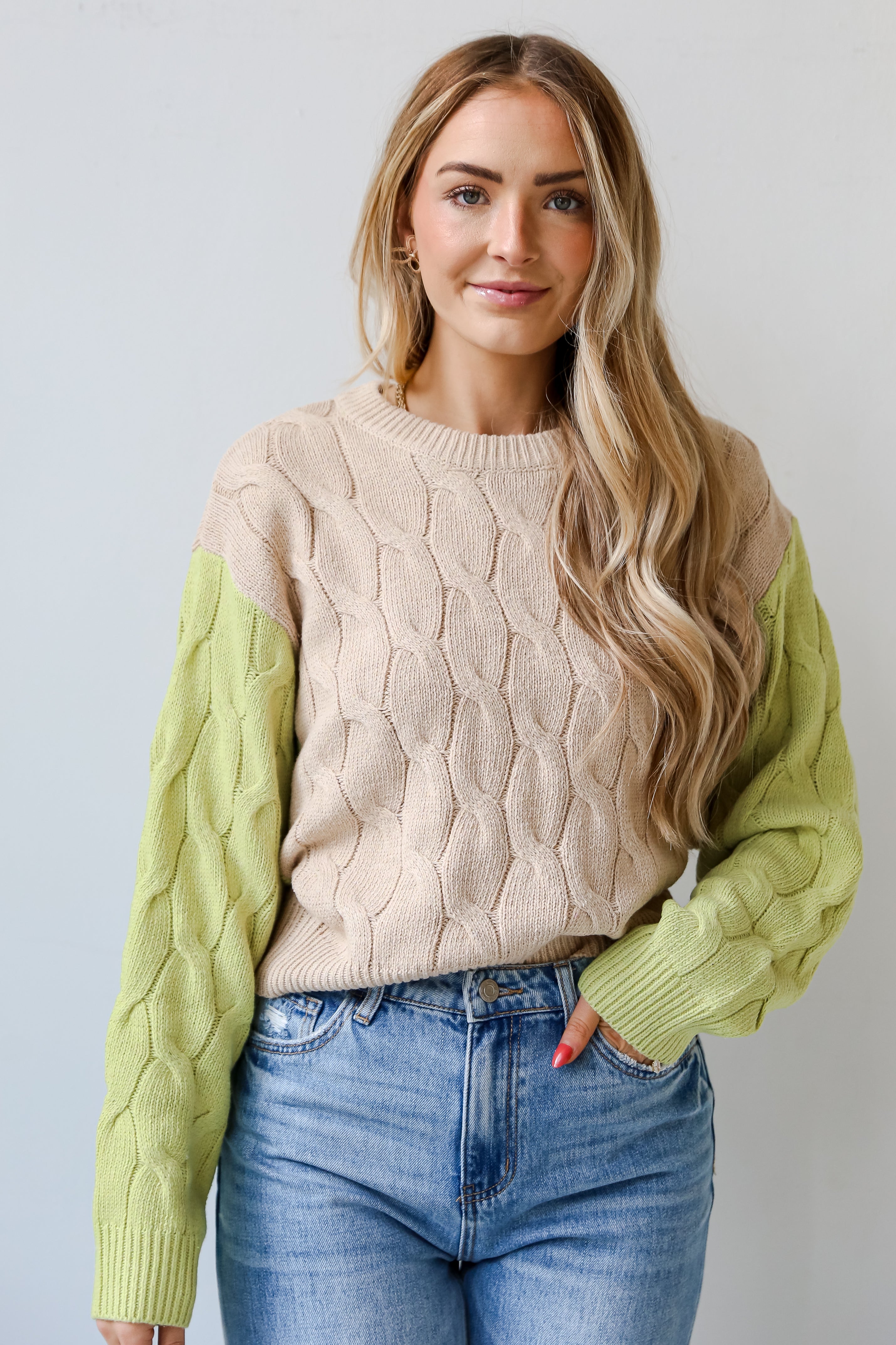 FINAL SALE - Adorable Season Color Block Cable Knit Sweater