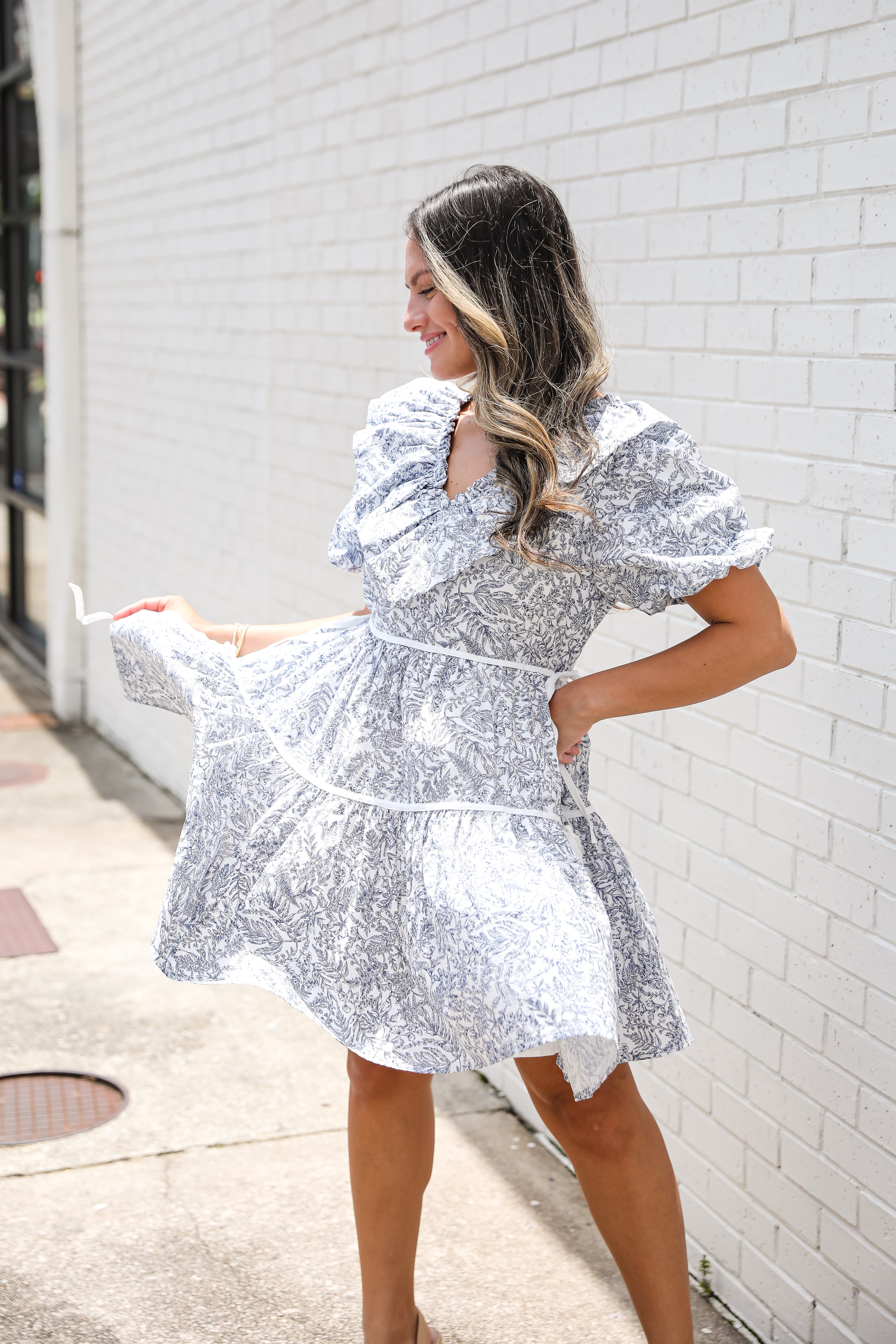 Whether you like to frolic or strut, the All Tied Up Navy Floral Tiered Mini Dress is perfect for doing either in adorable style! Featuring a classic white base adorned with delicate navy florals, this dress brings a fresh, romantic vibe to any occasion. The puff sleeves add a touch of vintage charm, while the tiered skirt creates a playful silhouette full of movement. Perfect for brunch, garden parties, or a casual date night—just add sandals or wedges and you're effortlessly chic!