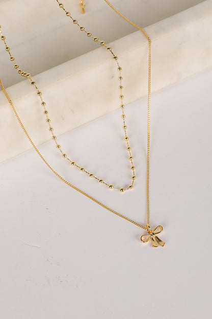 Allie Gold Layered Bow Charm Necklace