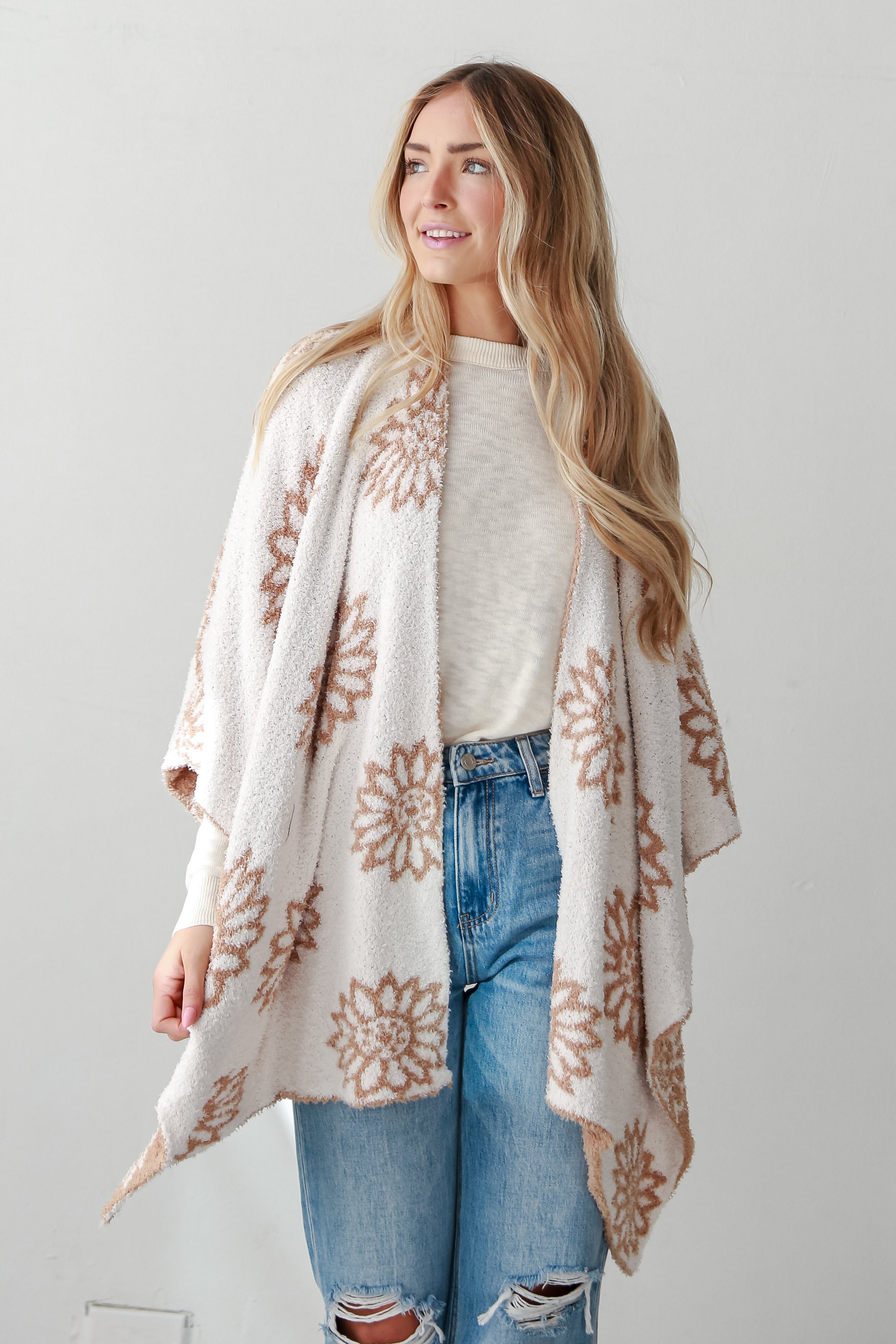 The Always The Coziest Beige Luxe Knit Shawl is essential for an effortlessly cute winter wardrobe! This shawl is a testament to refined elegance, featuring a luxurious knit fabric adorned with a mesmerizing flower print, elevating your style with a touch of romance. The delicate flower print, intricately woven into the fabric, adds a graceful and feminine dimension, making this shawl a standout accessory for any occasion. The versatile design of the shawl allows for various styling options. Redefine your wardrobe with this exquisite accessory, adding a touch of timeless beauty to your everyday attire!