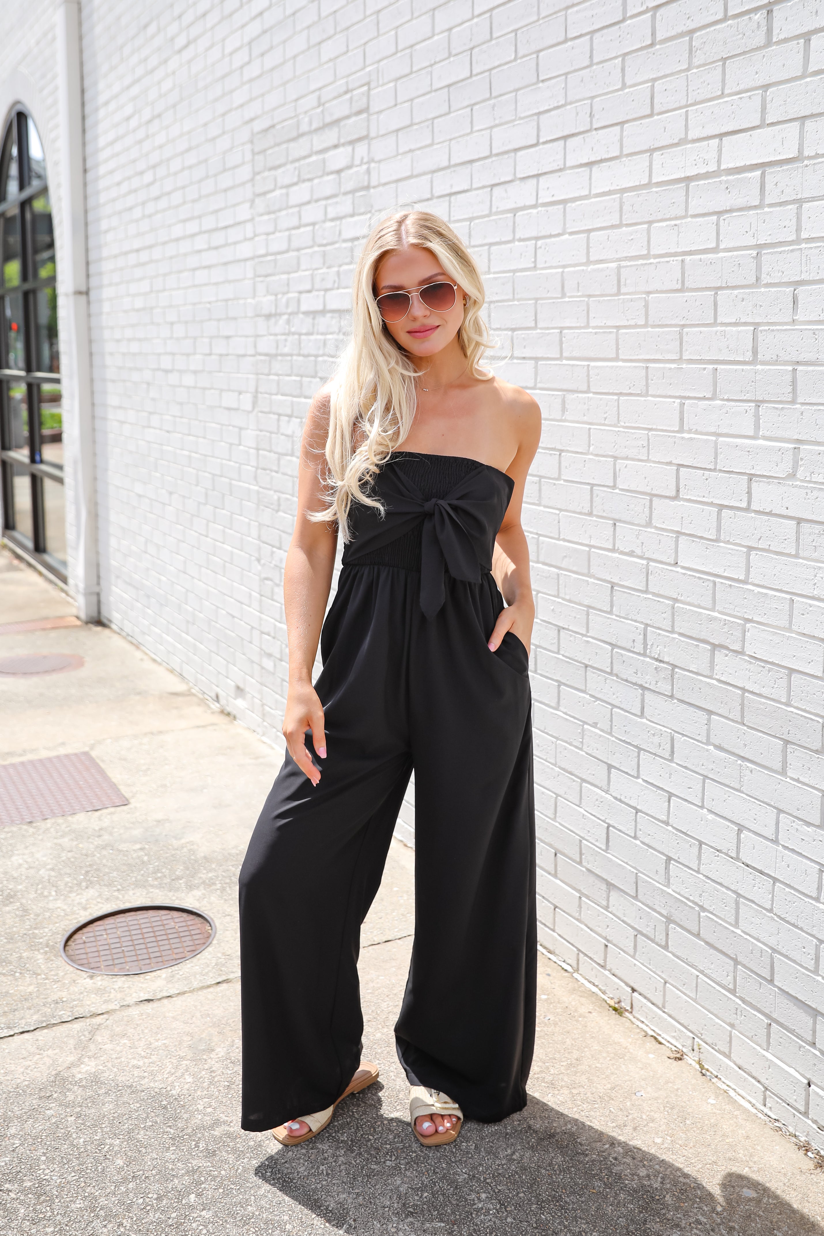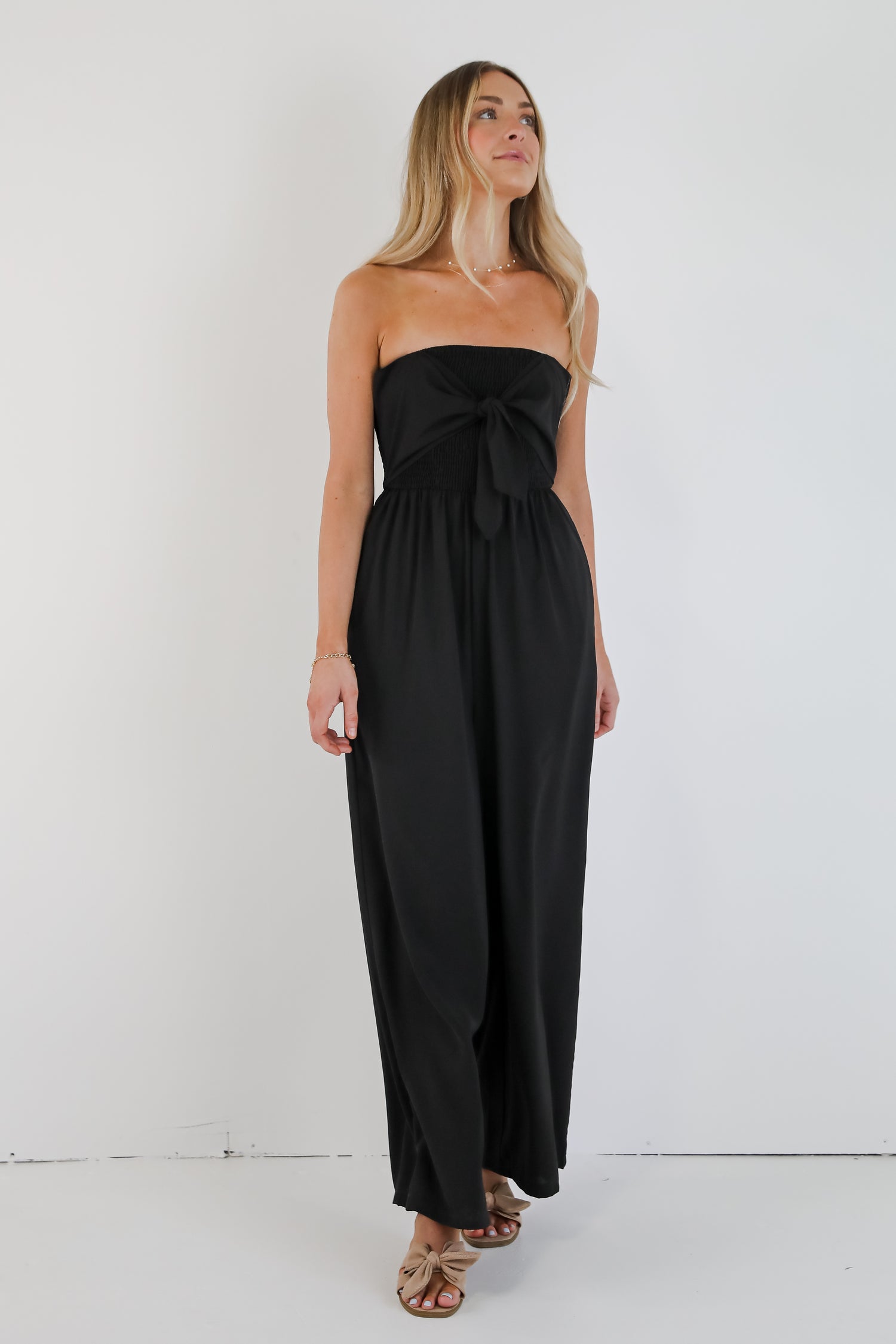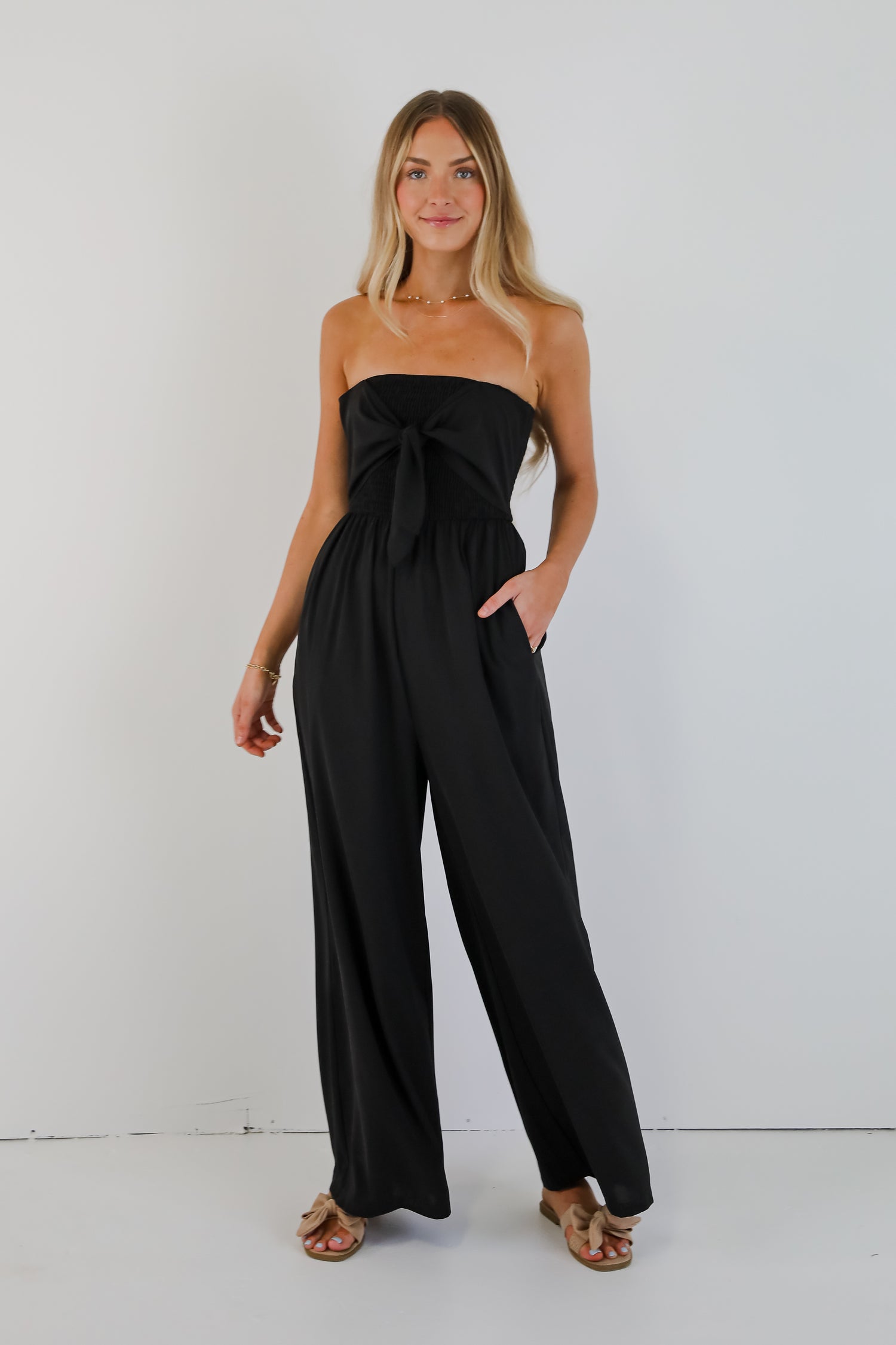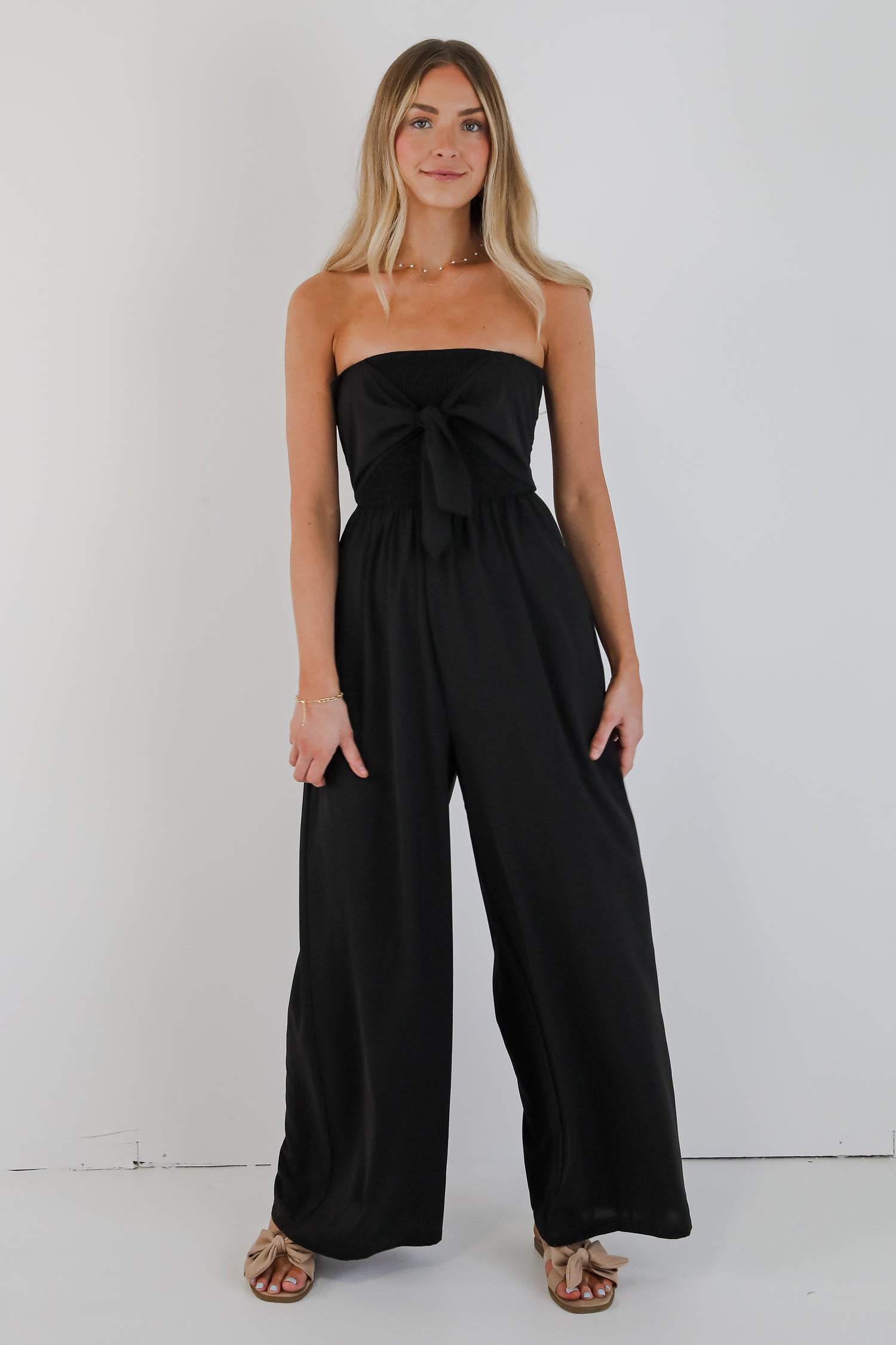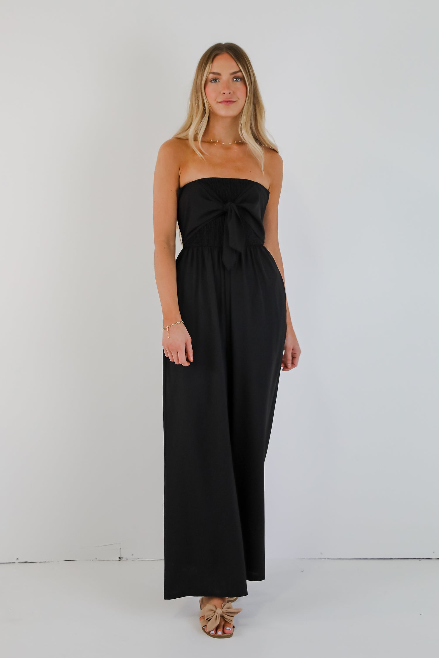 FINAL SALE - Back In Love Black Strapless Smocked Jumpsuit