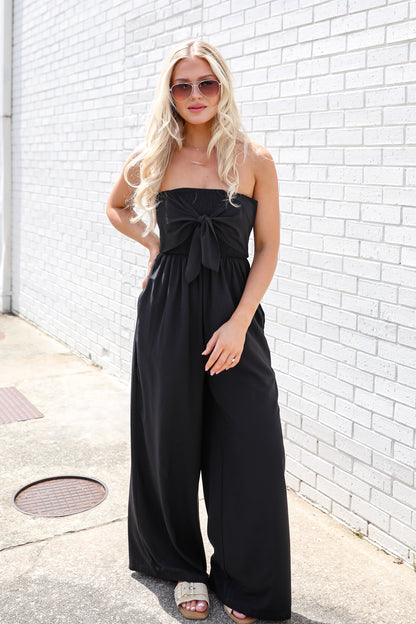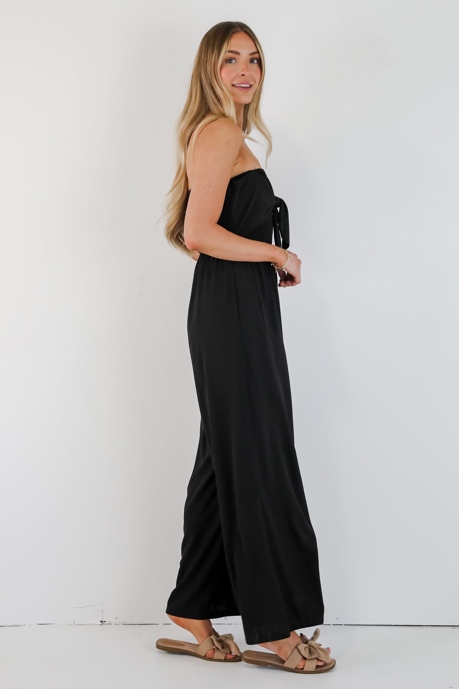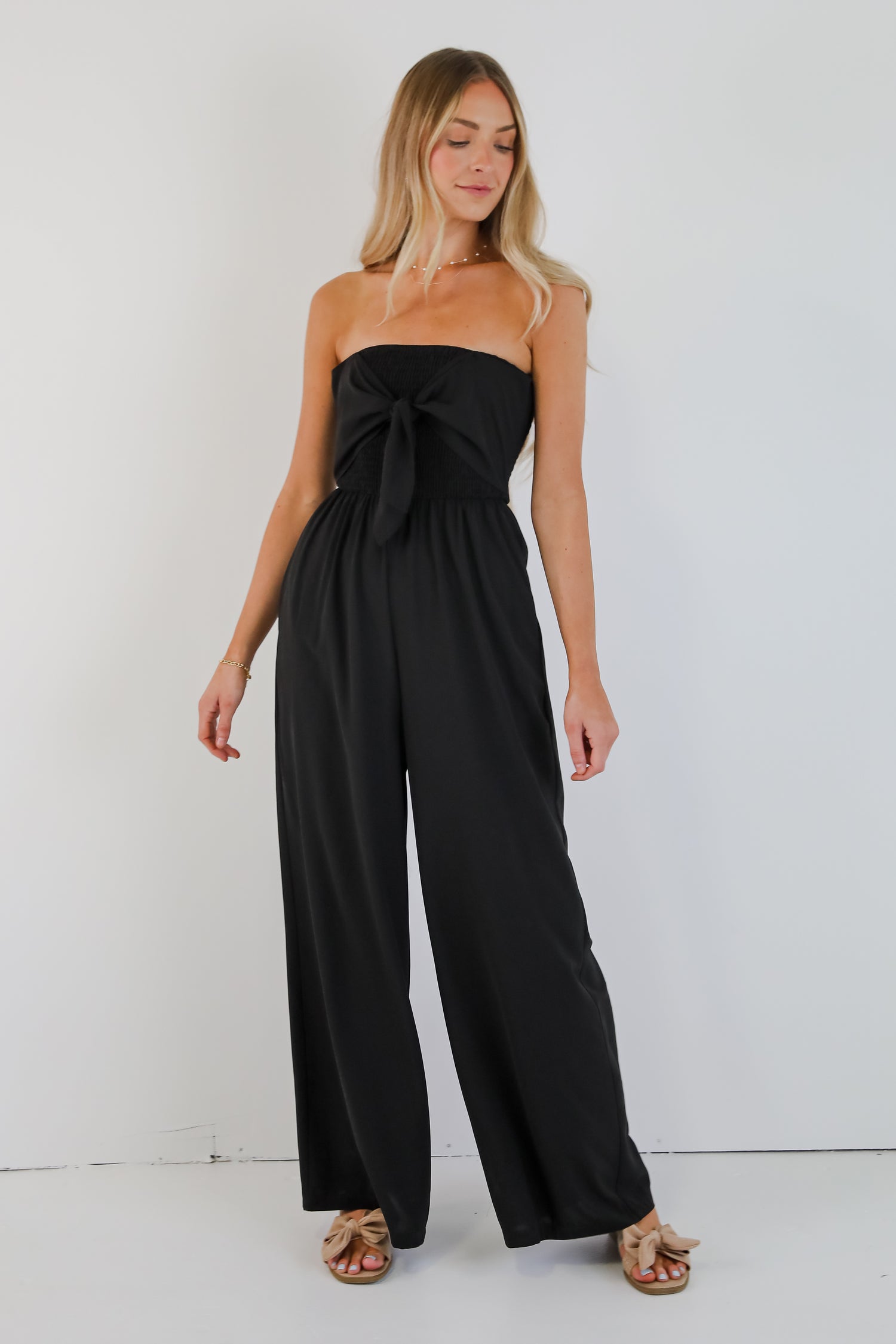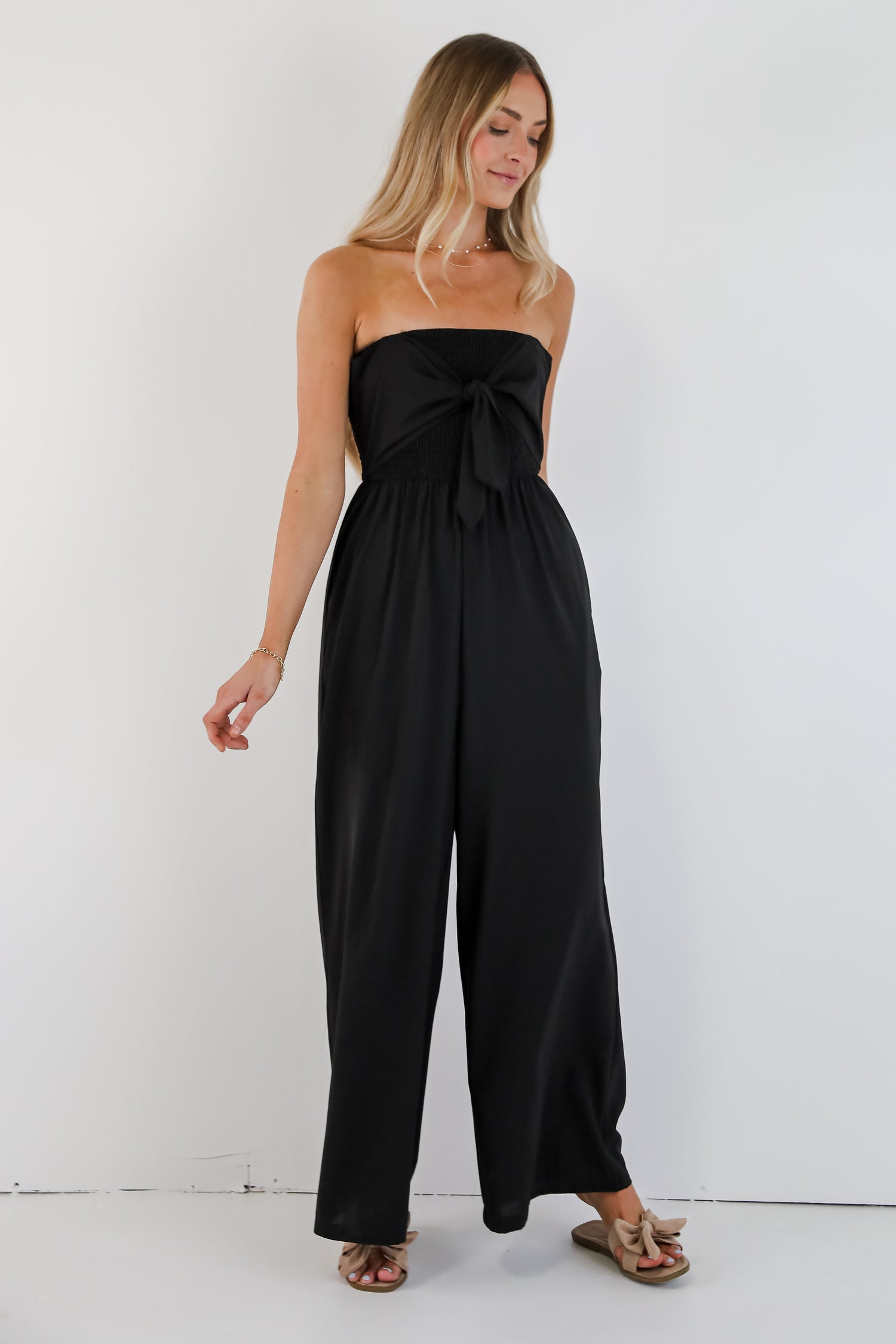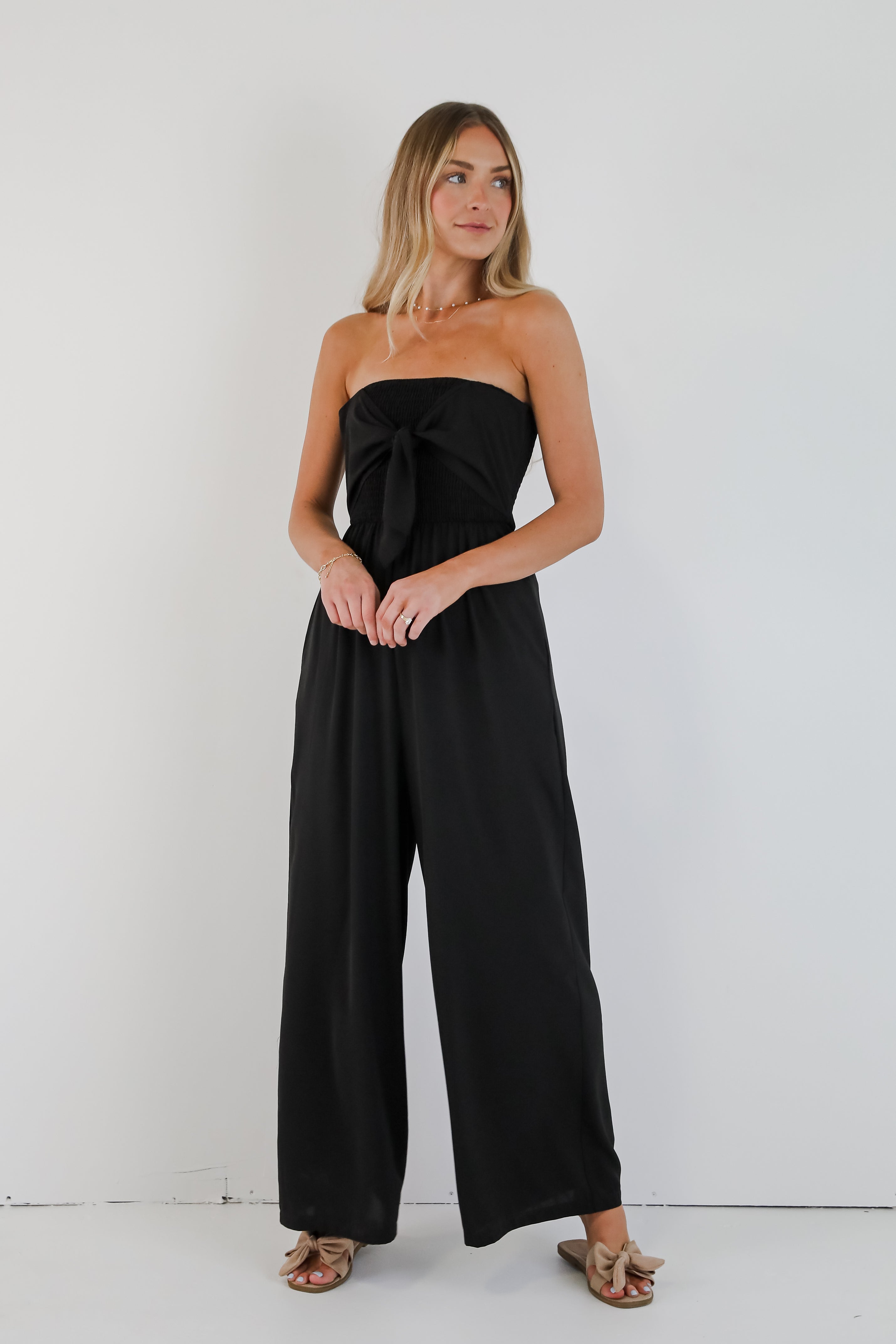 FINAL SALE - Back In Love Black Strapless Smocked Jumpsuit