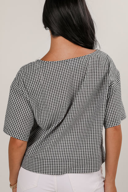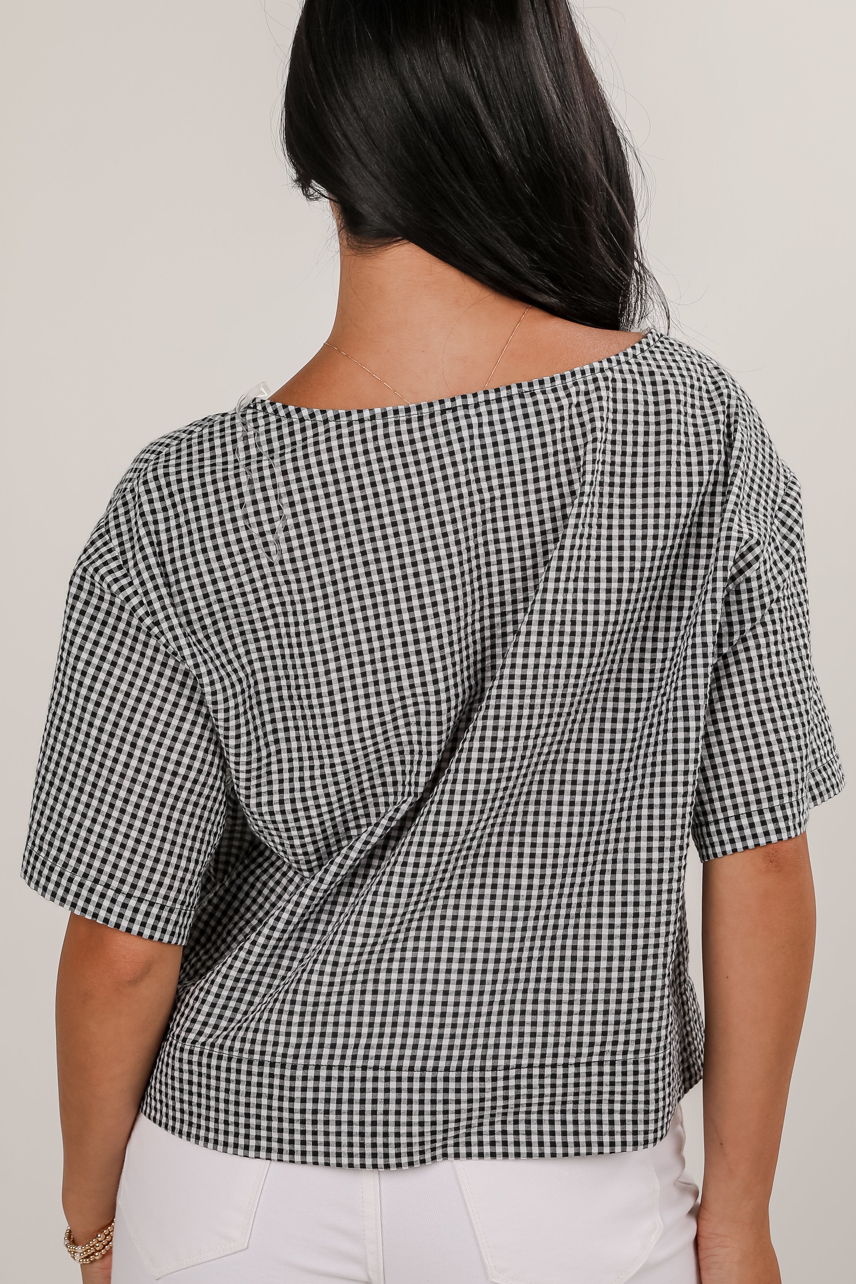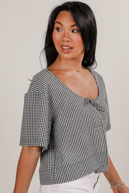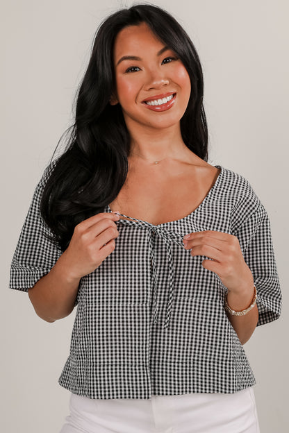FINAL SALE - Be My Muse Black Gingham Tie Top - DU DEAL