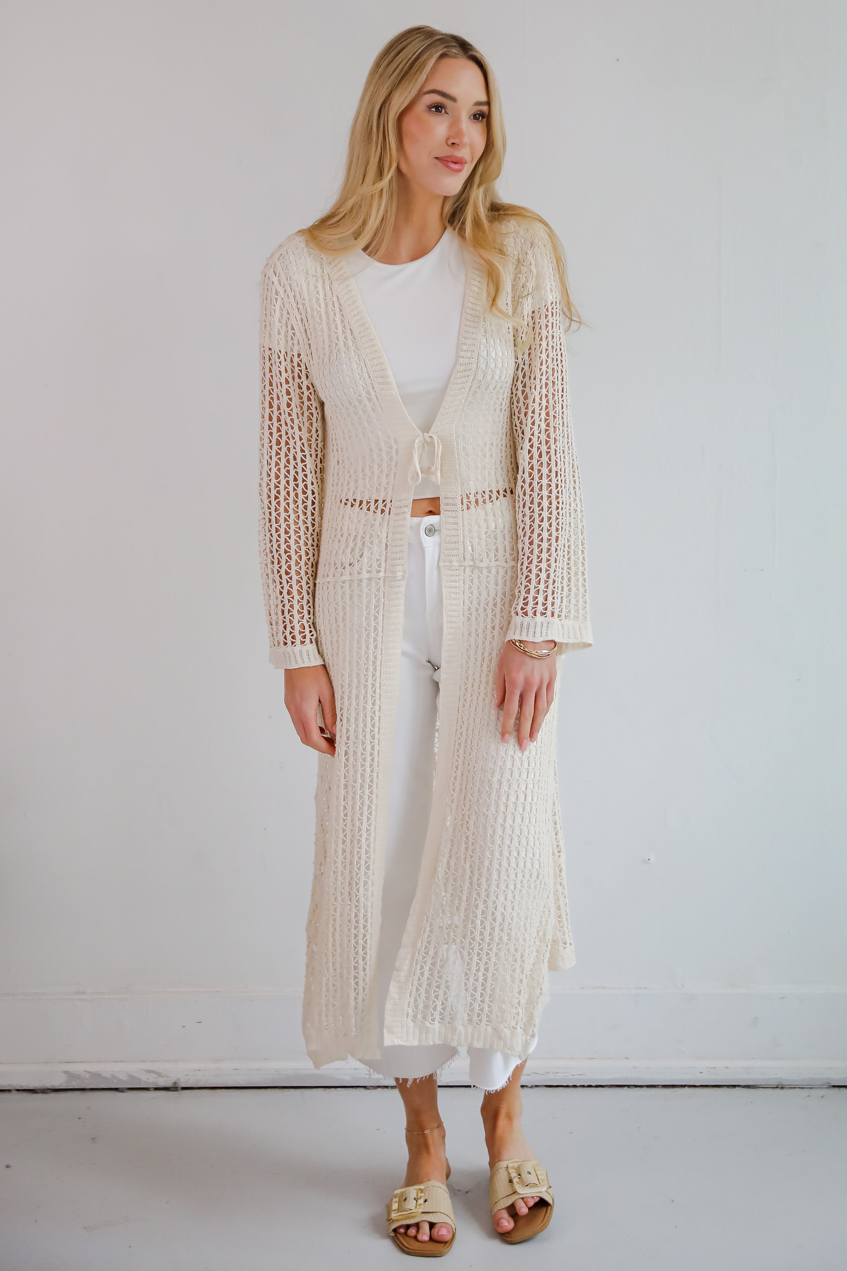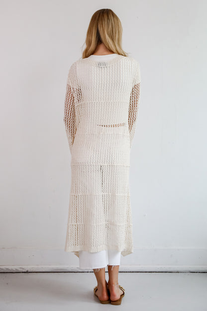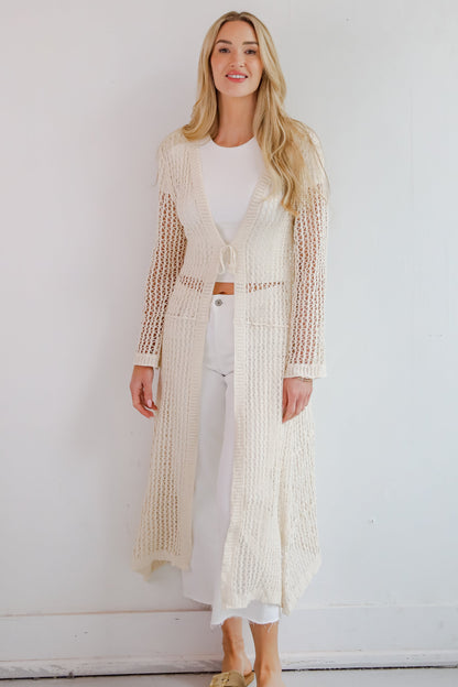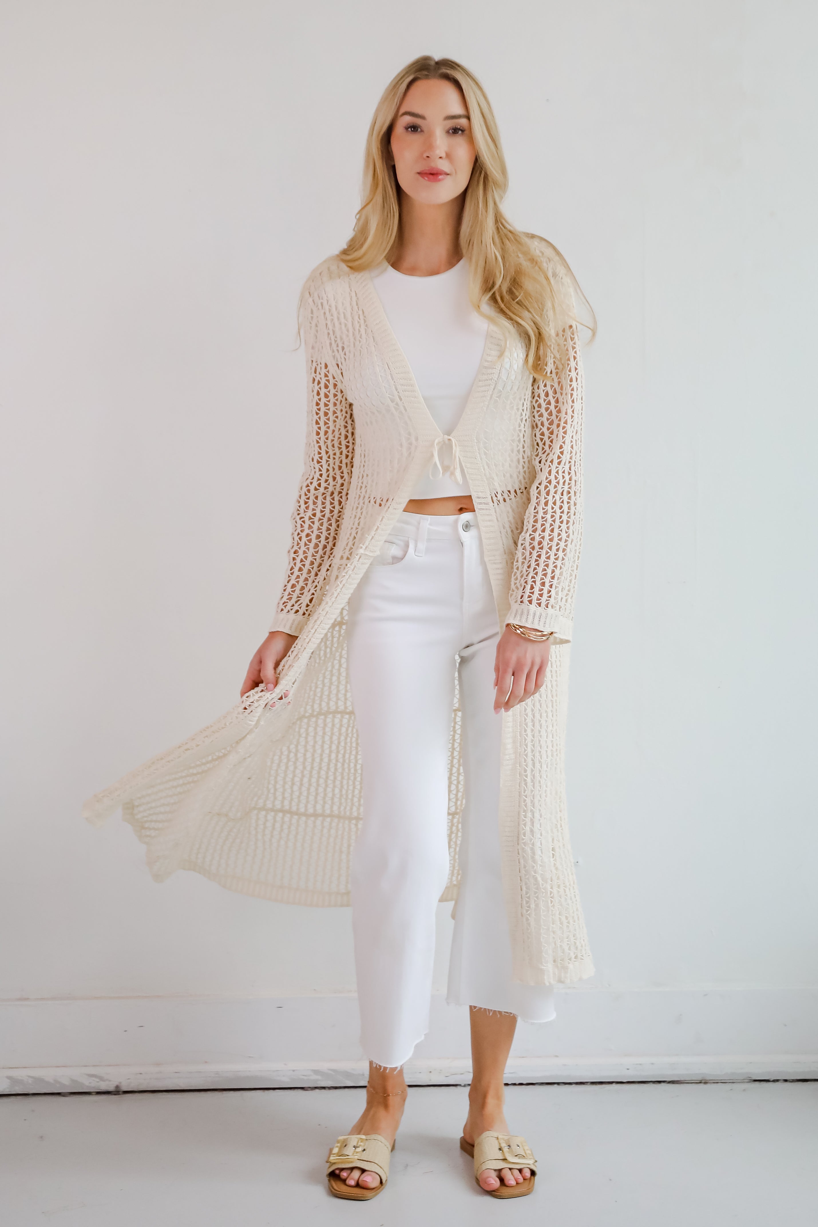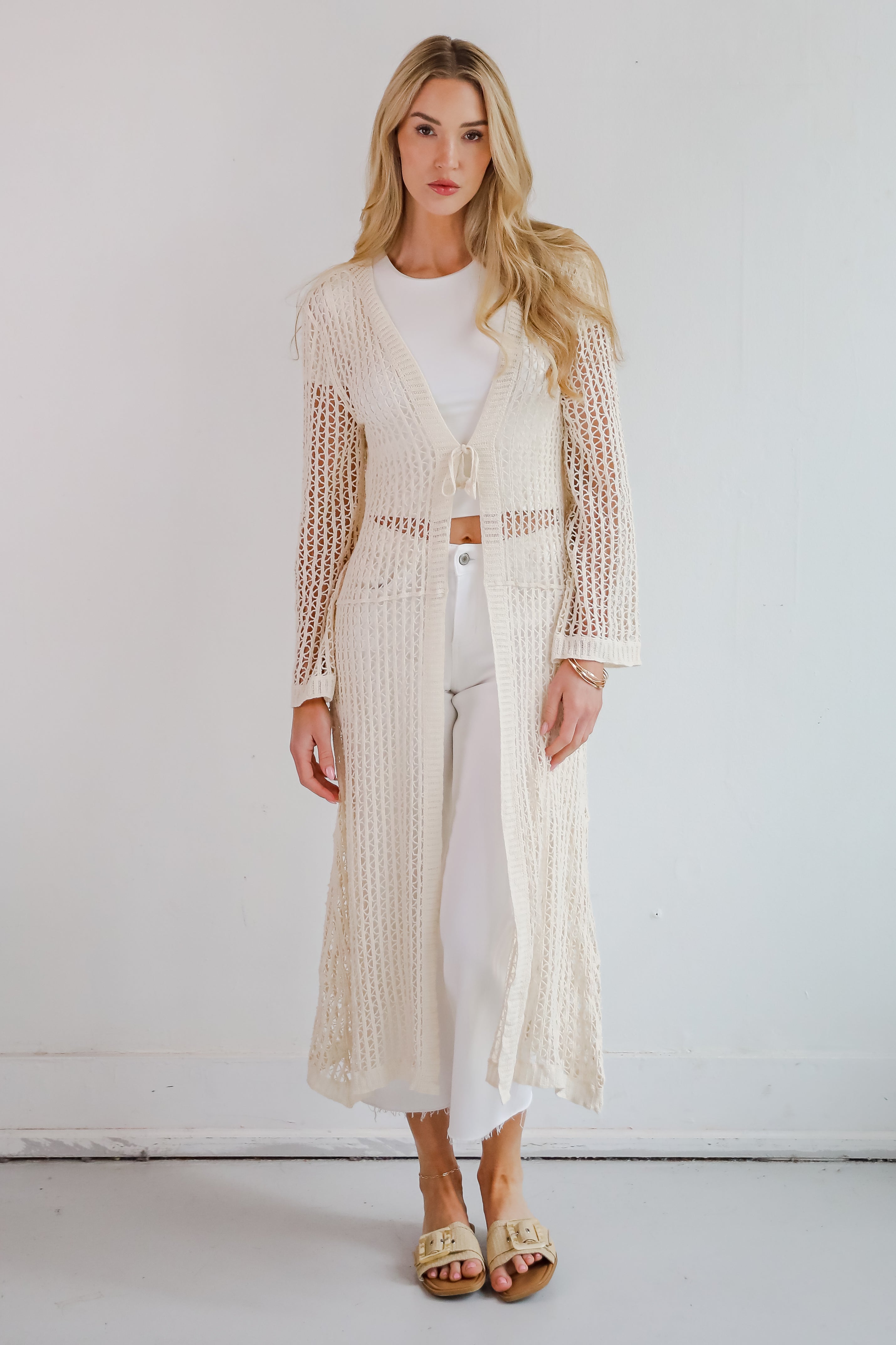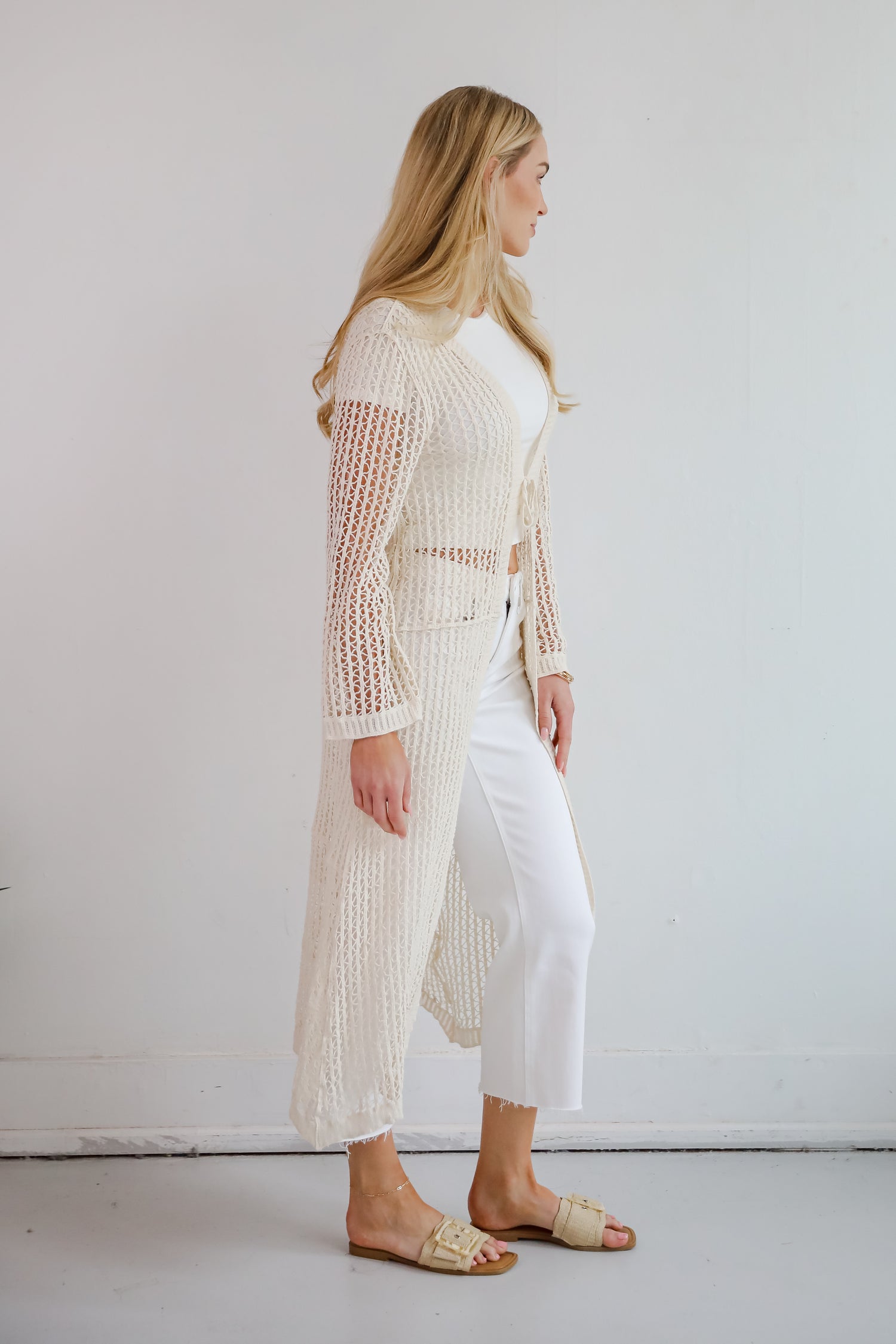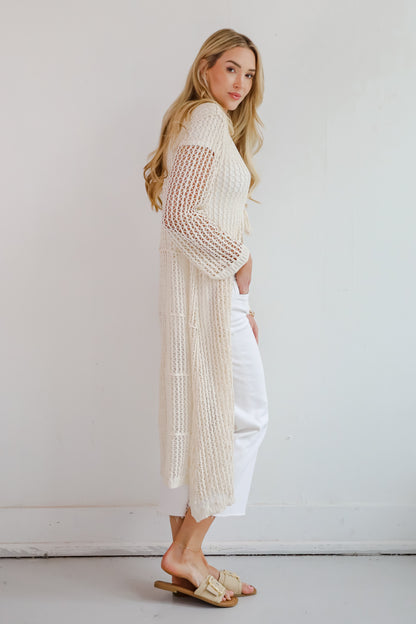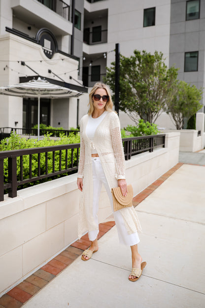 FINAL SALE - Beachy Tidings Cream Crochet Longline Kimono