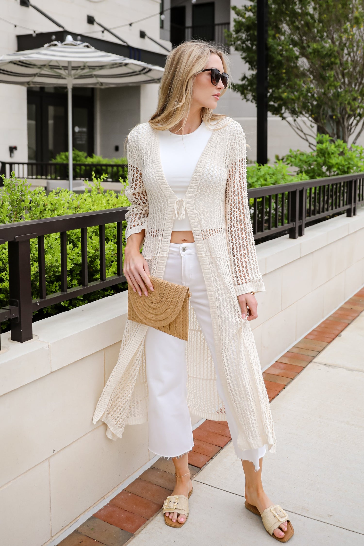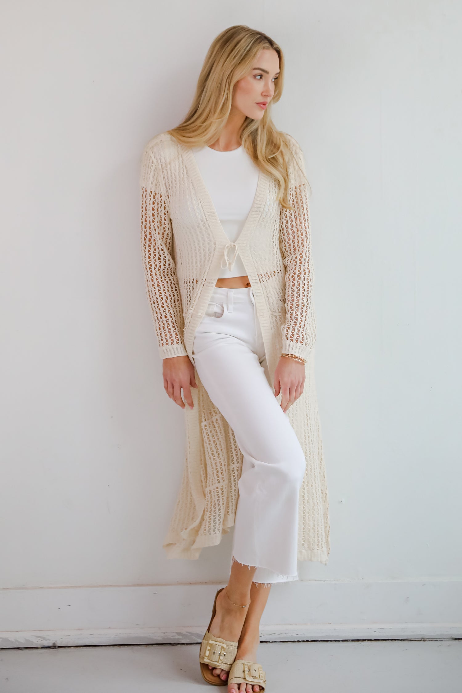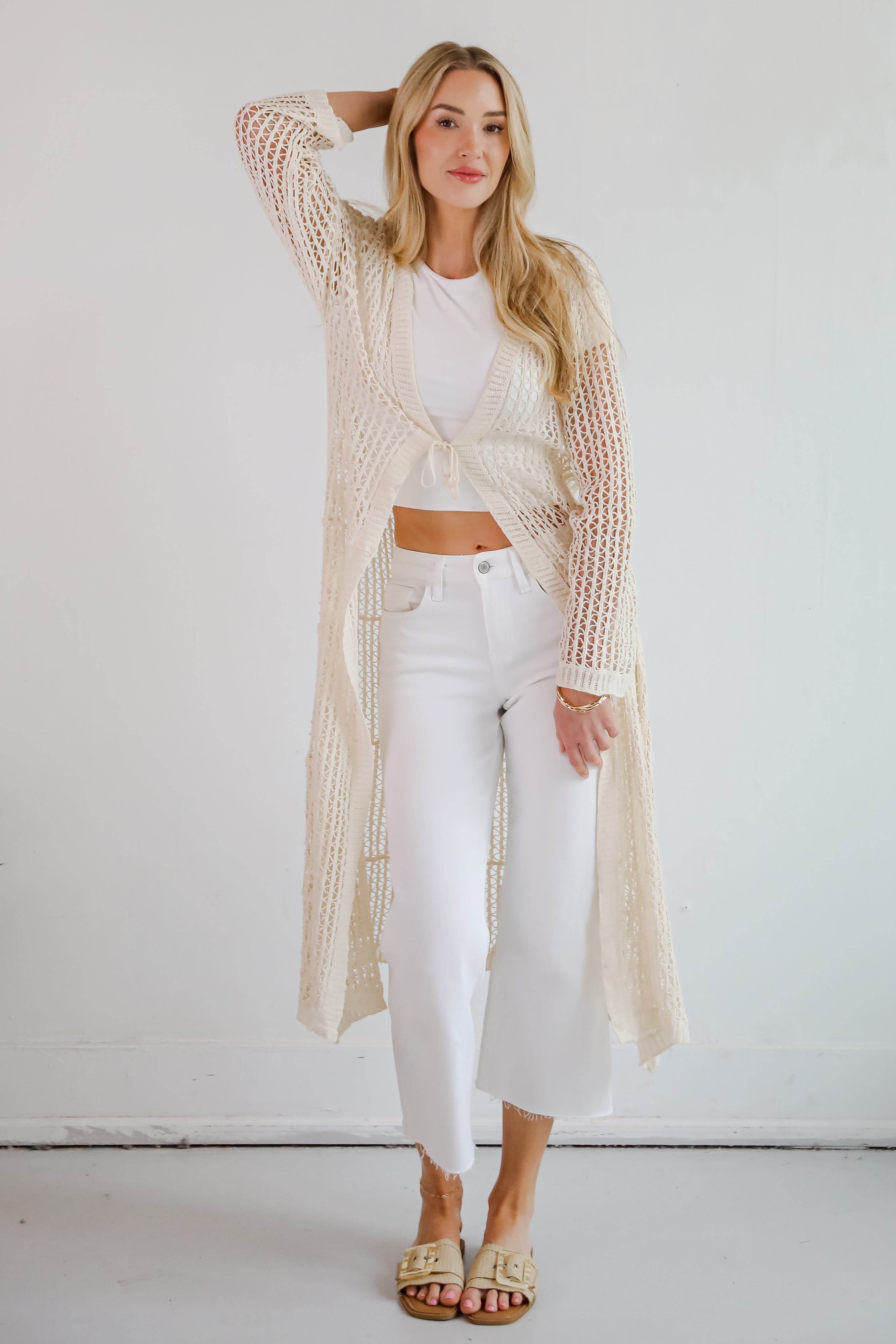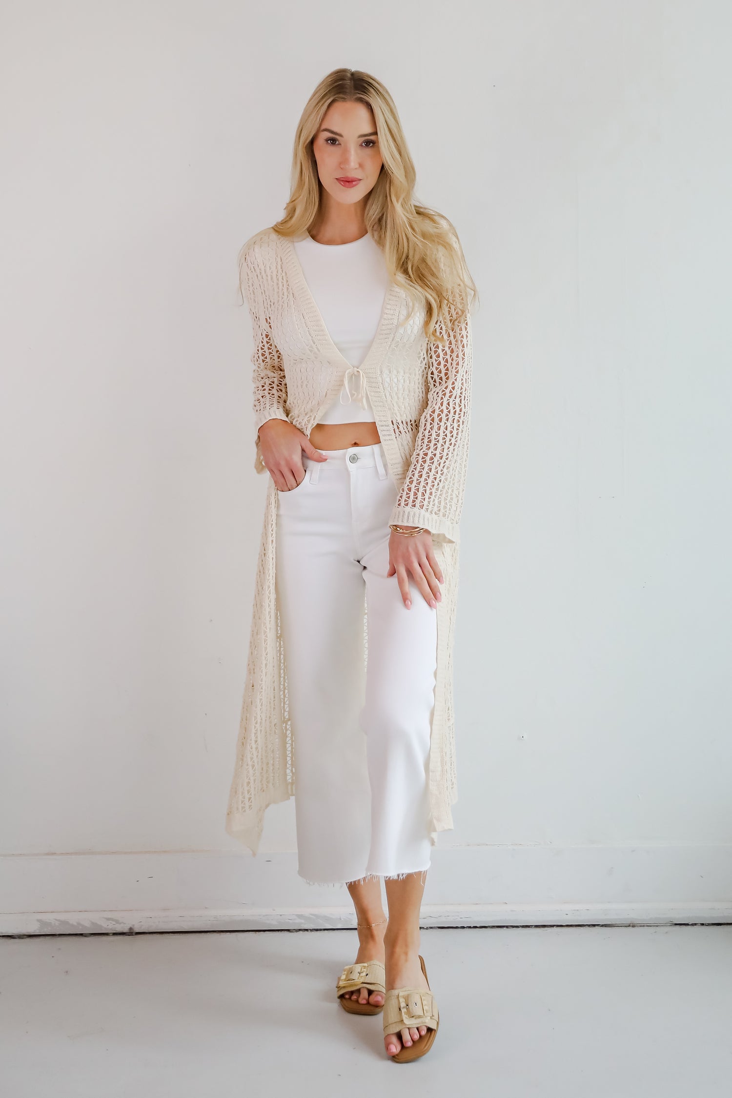 FINAL SALE - Beachy Tidings Cream Crochet Longline Kimono