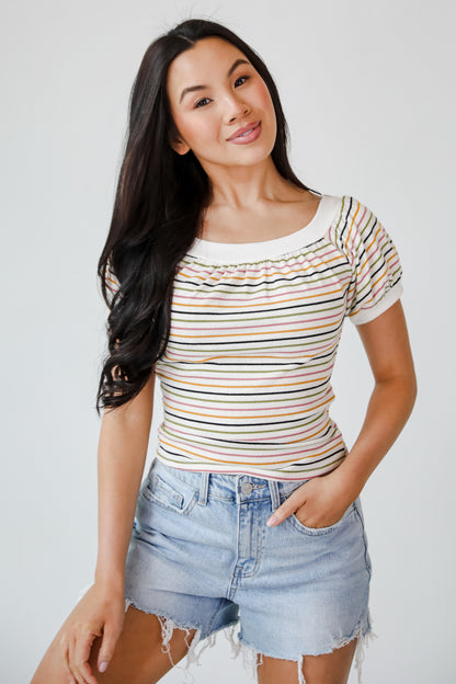 FINAL SALE - Beaming Perfection Ivory Striped Top - DU DEAL