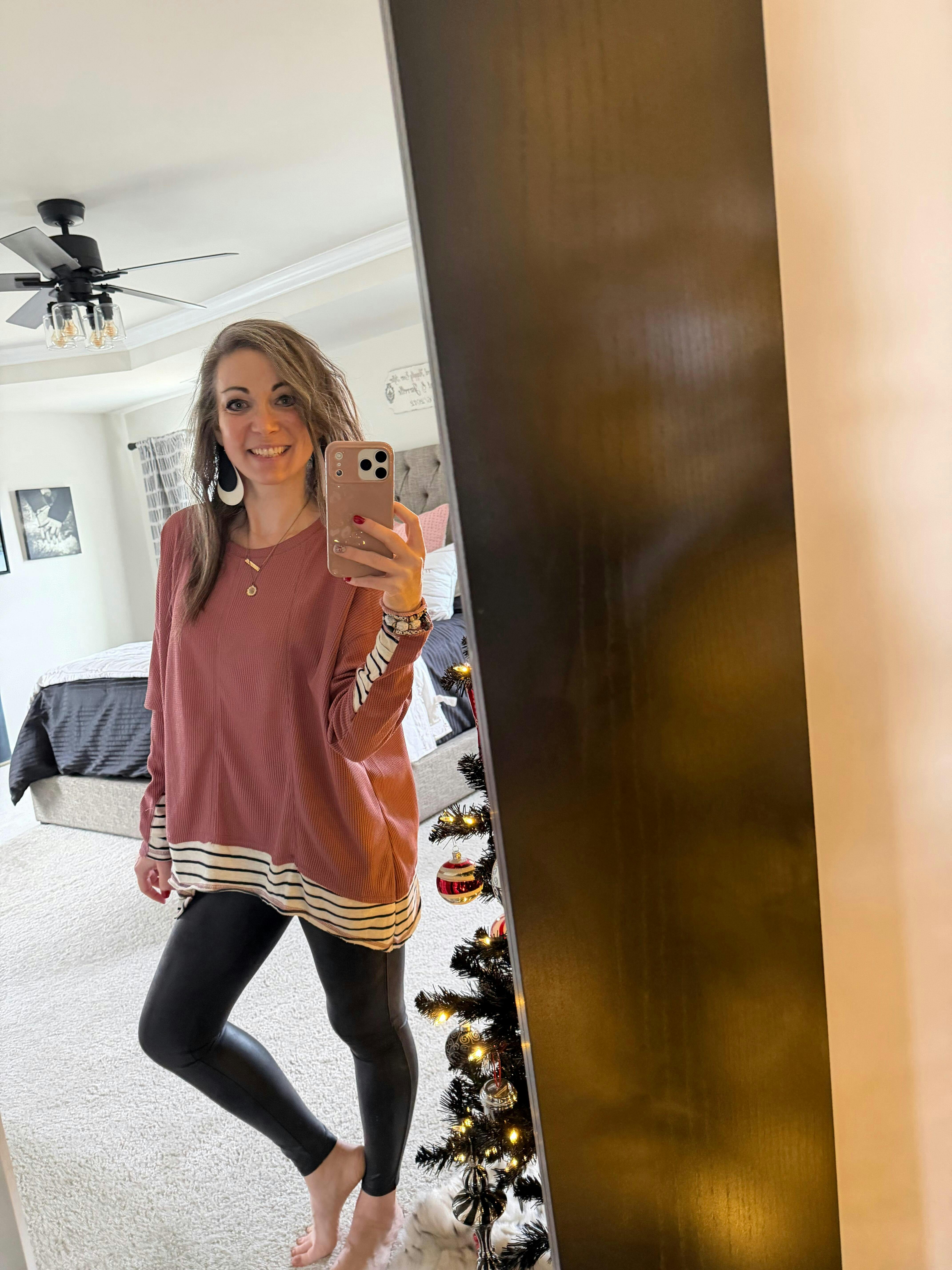 Stay cozy and stylish with the Beautifully Stated Mauve Waffle Knit Top! Crafted from soft waffle-knit fabric, this oversized top features subtle striped detailing for a modern, sporty touch. Perfect for pairing with leggings, jeans, or joggers, it’s an effortless choice for casual days, lounging, or weekend outings!