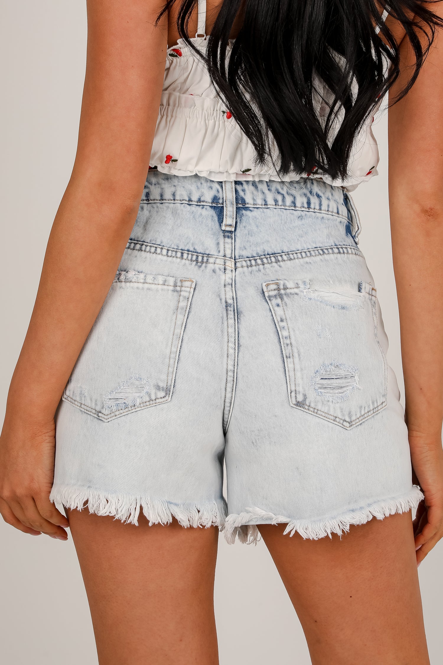 Bella Light Wash High-Rise Distressed Denim Shorts
