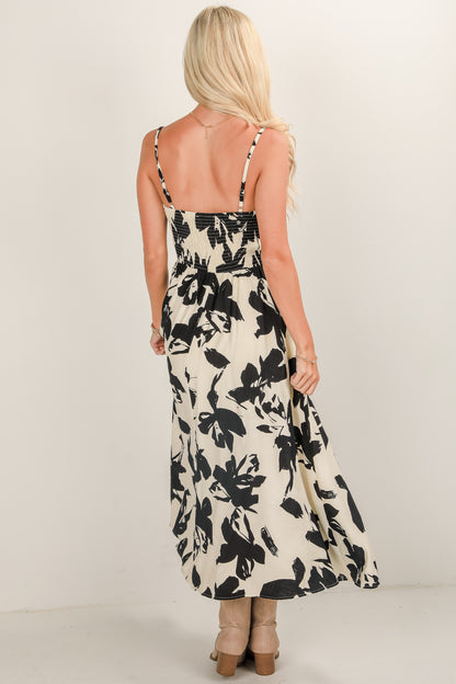 The Big Dreams Cream Floral Maxi Dress makes a charismatic first impression that's impossible to forget! Featuring a timeless cream base with a delicate black floral print, this dress is designed with adjustable spaghetti straps for a custom fit and a flattering silhouette. The flowy maxi length is elevated with a side slit for a touch of movement and a hint of allure. Perfect for brunch, date nights, or summer getaways, this dress pairs beautifully with strappy sandals or heels for a chic, feminine look!