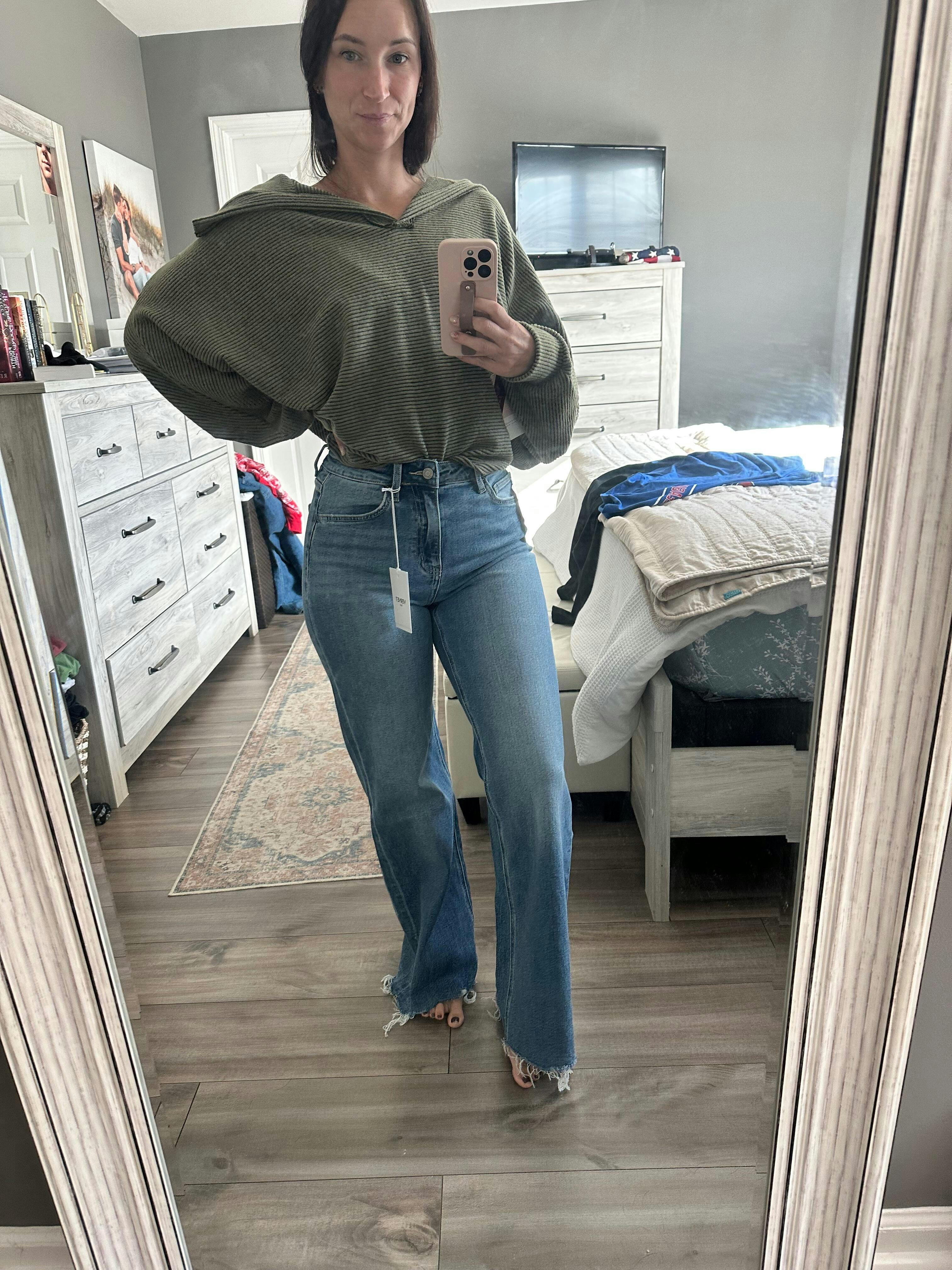 Elevate your denim collection with the Blair Medium Wash High-Rise Wide Leg Jeans, the perfect blend of vintage-inspired charm and modern comfort. Designed with a flattering high-rise waist, these jeans create a sleek silhouette while offering amazing all-day wearability. The wide-leg cut drapes effortlessly from hip to hem, giving you that relaxed, on-trend look that pairs beautifully with everything from fitted tops to oversized sweaters.