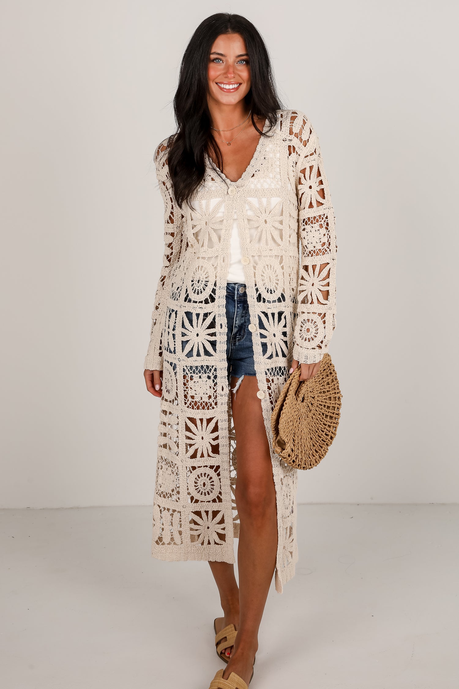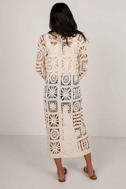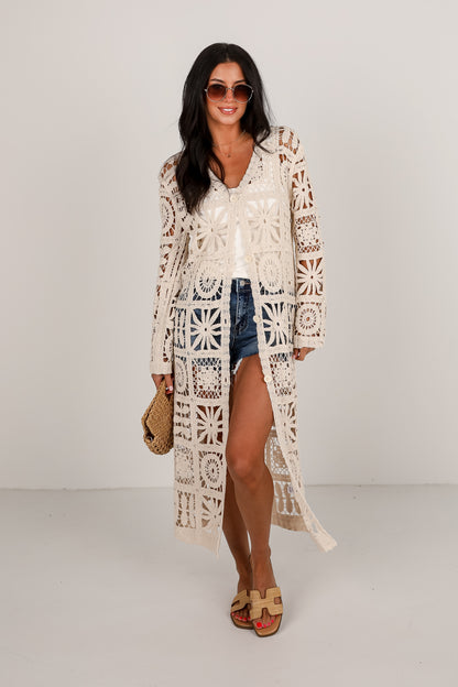 FINAL SALE - California Dreamin' Natural Crochet Longline Kimono