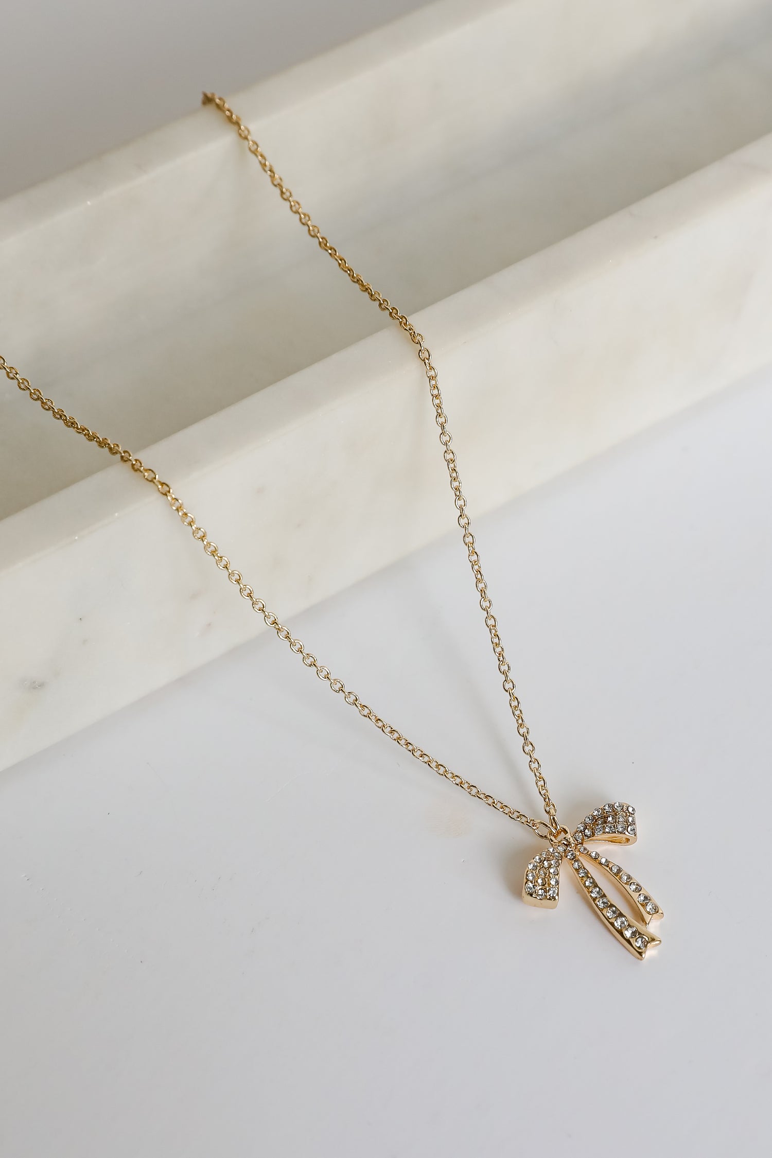 A simply chic finish can always be achieved with the Camila Gold Rhinestone Bow Charm Necklace! This dainty necklace features a gold chain with a rhinestone bow charm on the end. Style the Camila Necklace with any outfit to instantly upgrade your look!