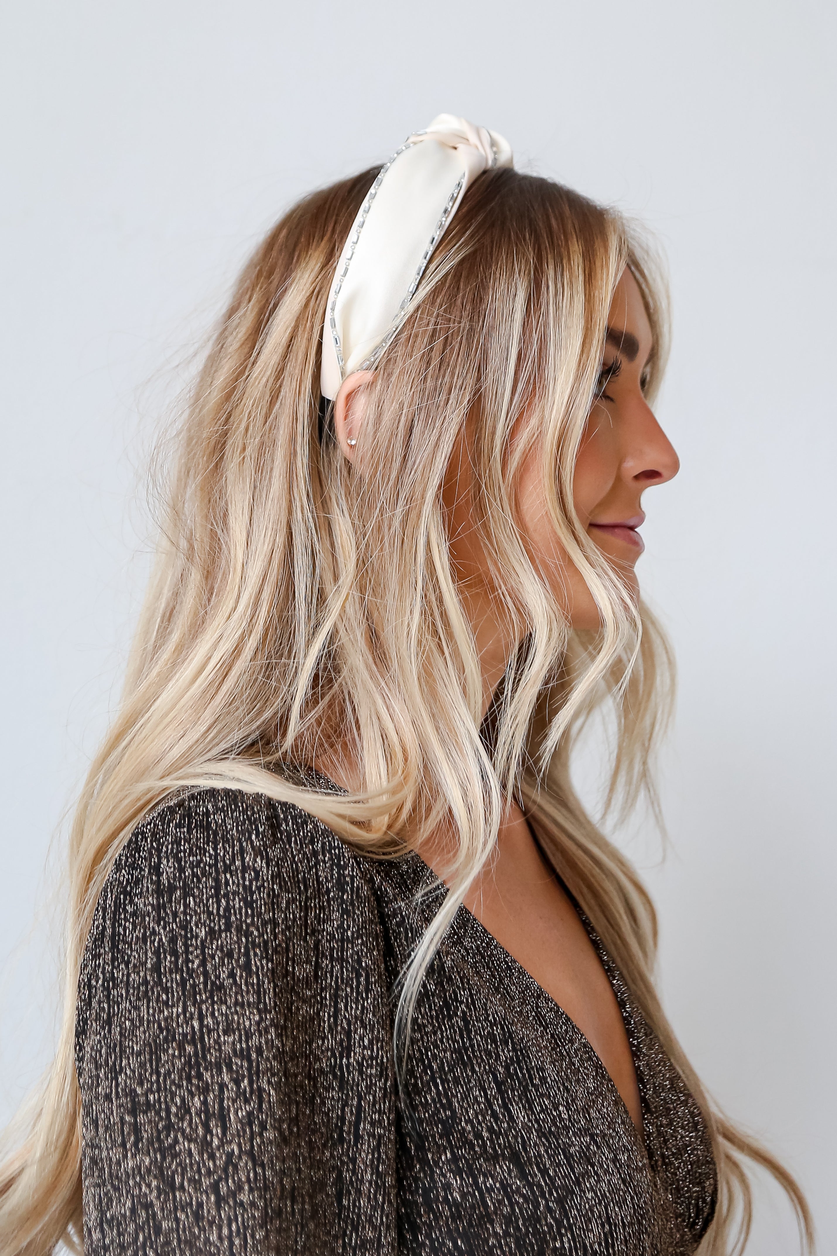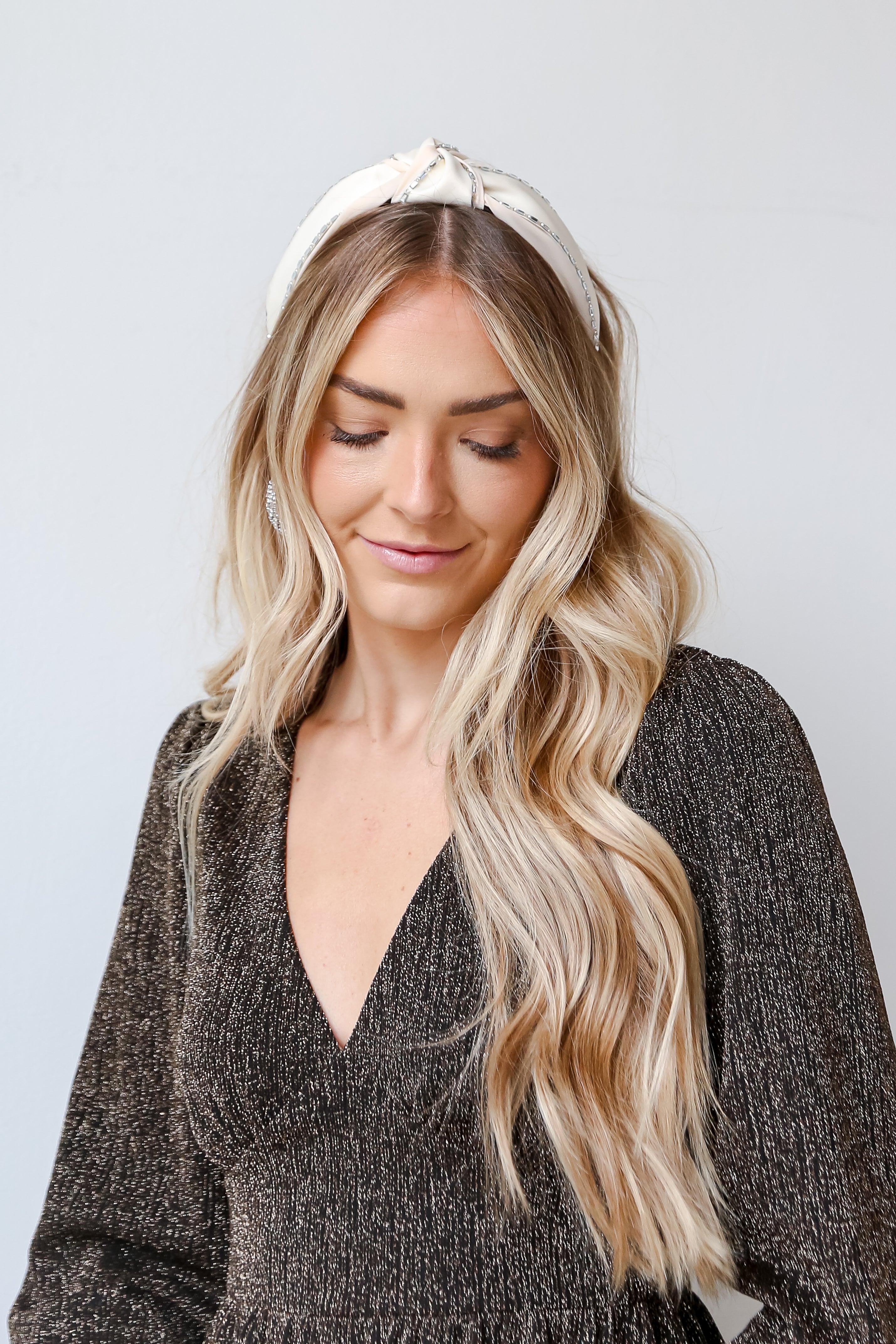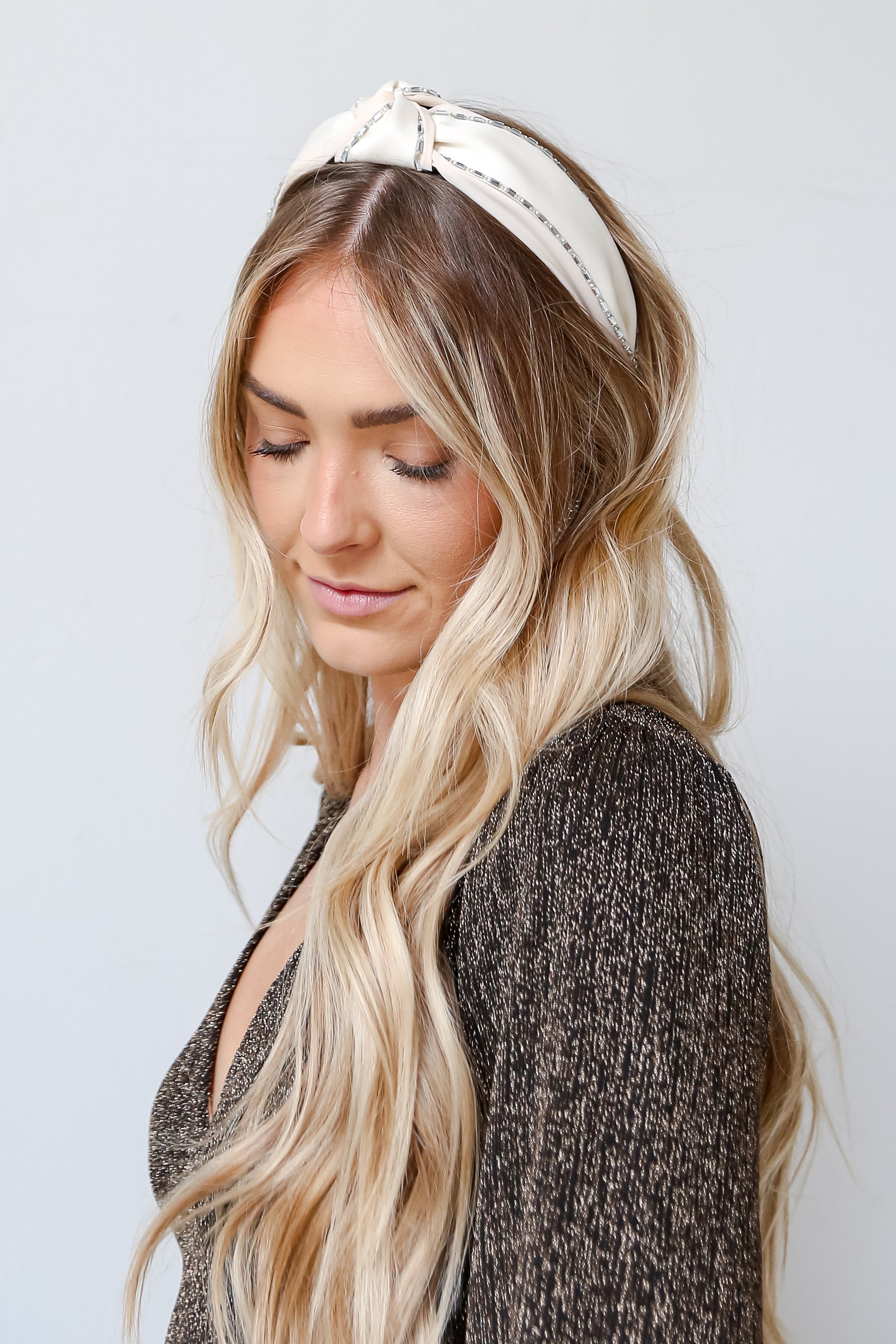 Can't Stop Your Shine Cream Rhinestone Knotted Headband