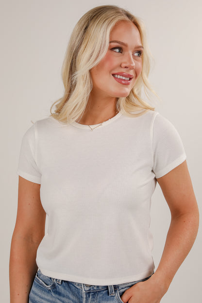 The Cassie Everyday Ribbed Tee is your new everyday essential! Made from soft, stretchy ribbed fabric, this tee offers a flattering, comfortable fit that moves with you. The classic crew neckline and short sleeves keep it timeless and versatile—perfect for layering or wearing on its own. Whether you dress it up with a skirt or keep it casual with jeans or shorts, this go-to tee is a must-have for effortless, everyday style! Available in 3 colors.