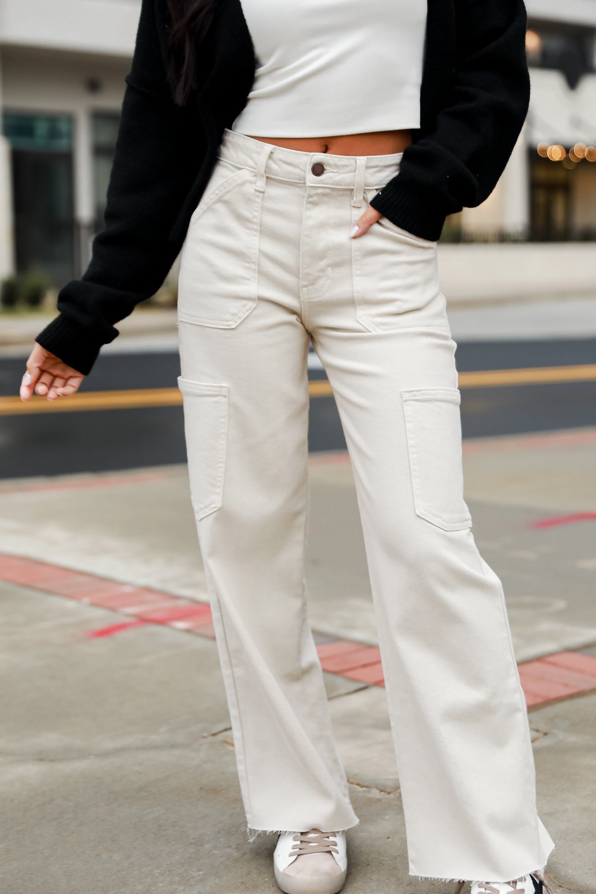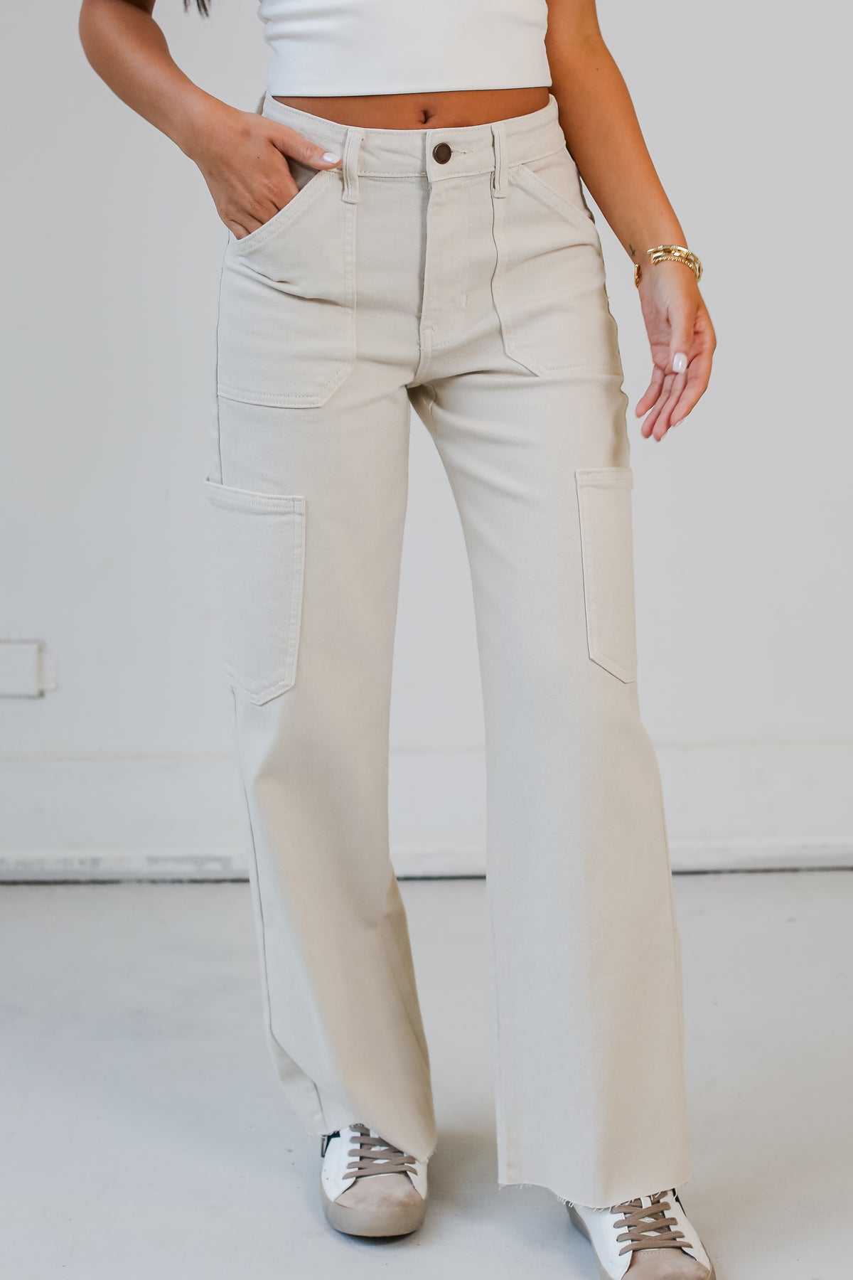 FINAL SALE - Casual Affection Cream Cargo Jeans