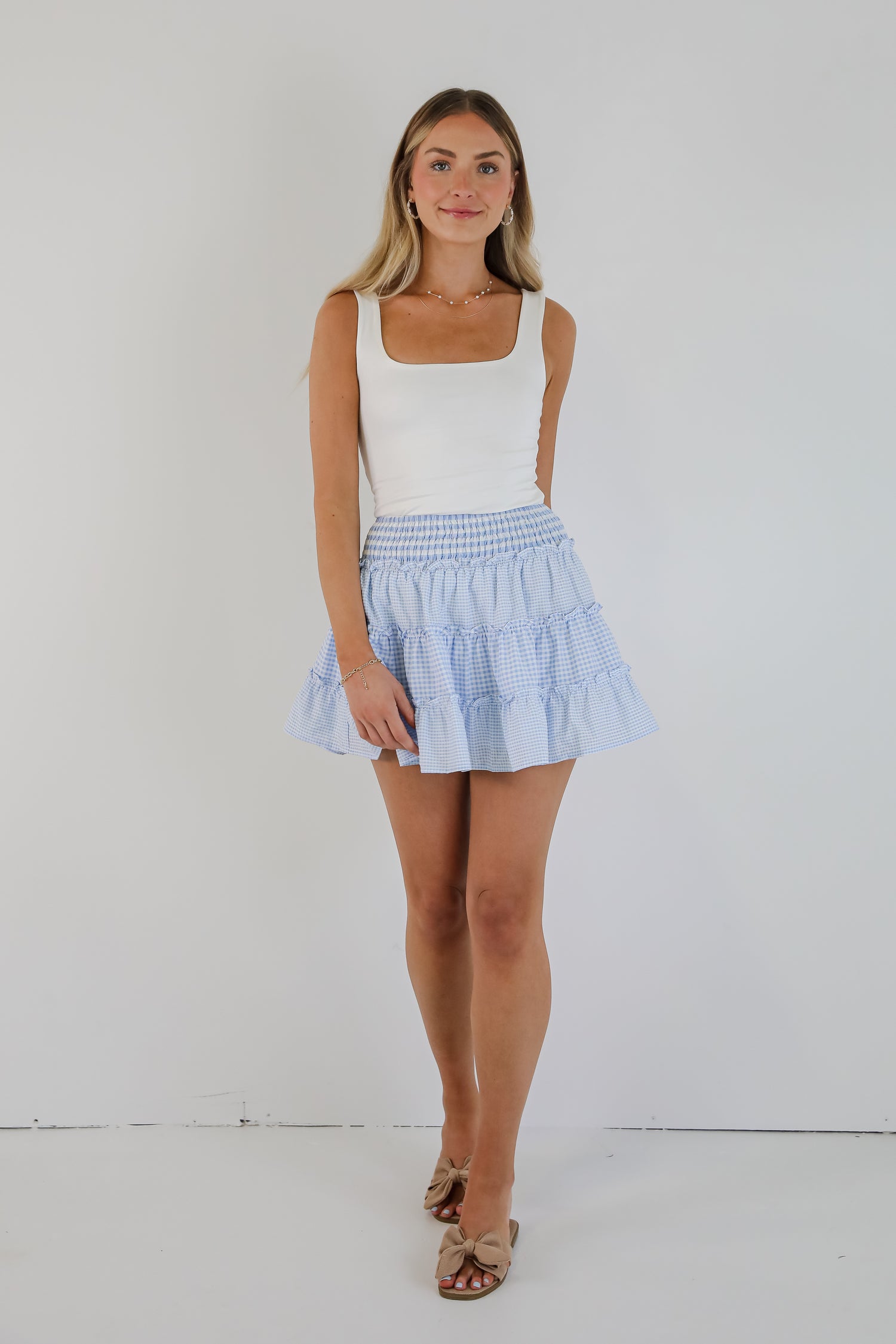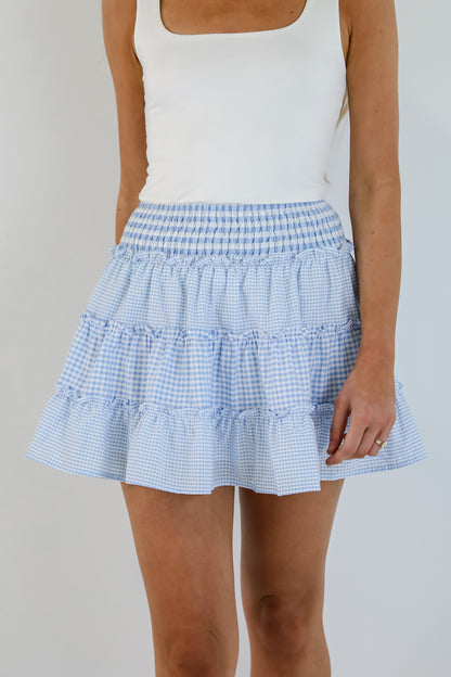 Charmed Feeling Blue Gingham Tiered Mini Skirt