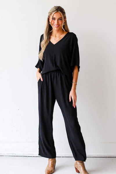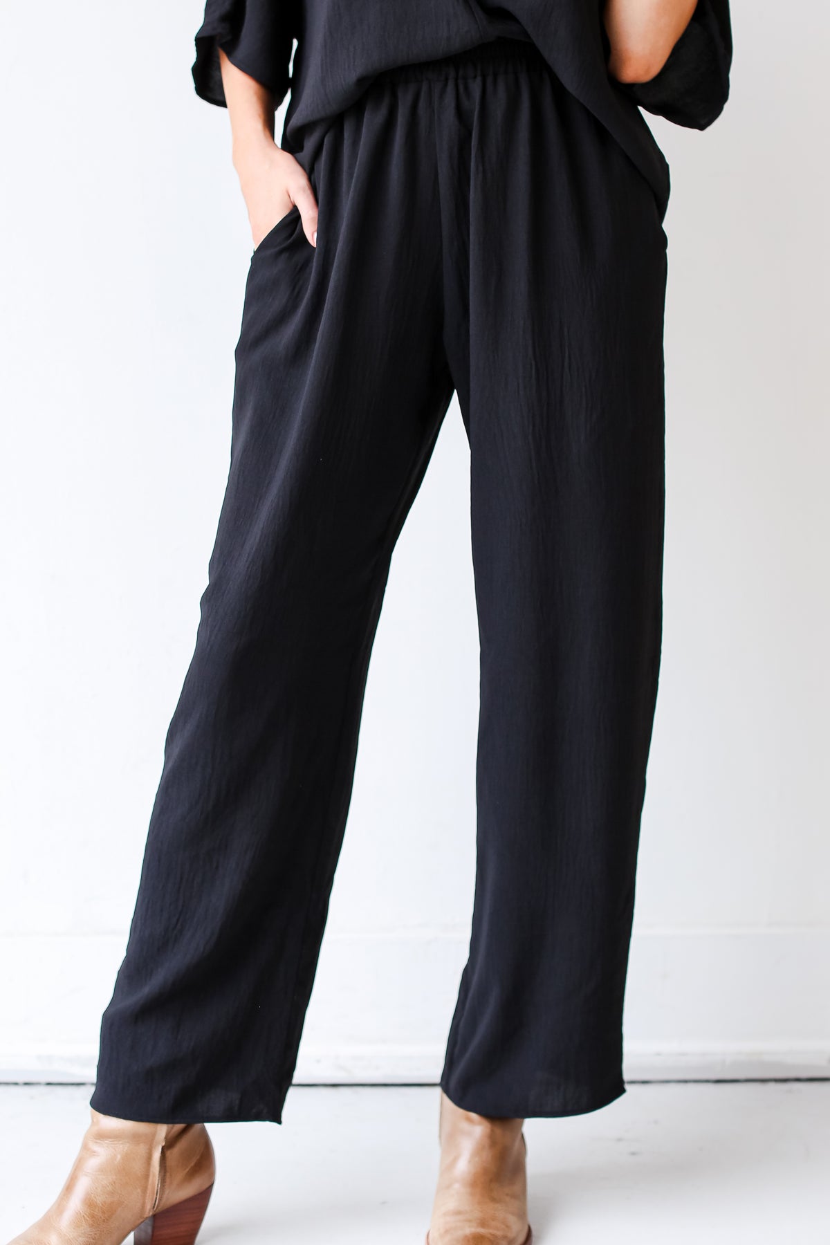 No more waiting around—the Charming Composure Wide Leg Pants are finally here and ready to make you the most stunning sight to see! These pants are designed to combine comfort with a timeless style, making them an essential addition to your wardrobe. Crafted from high-quality black fabric, these wide-leg pants exude an air of elegance and versatility. The black color is a classic choice that pairs effortlessly with a variety of tops and accessories, ensuring you always look polished and put-together. The wide-leg silhouette features a relaxed fit through the hips and thighs, providing both comfort and a flattering drape. The pants gracefully flow from the waist to the hem, creating a look that's both contemporary and timeless. Pair them with a blouse and heels for a professional and elegant look, or dress them down with a casual top and flats for a more relaxed ensemble!