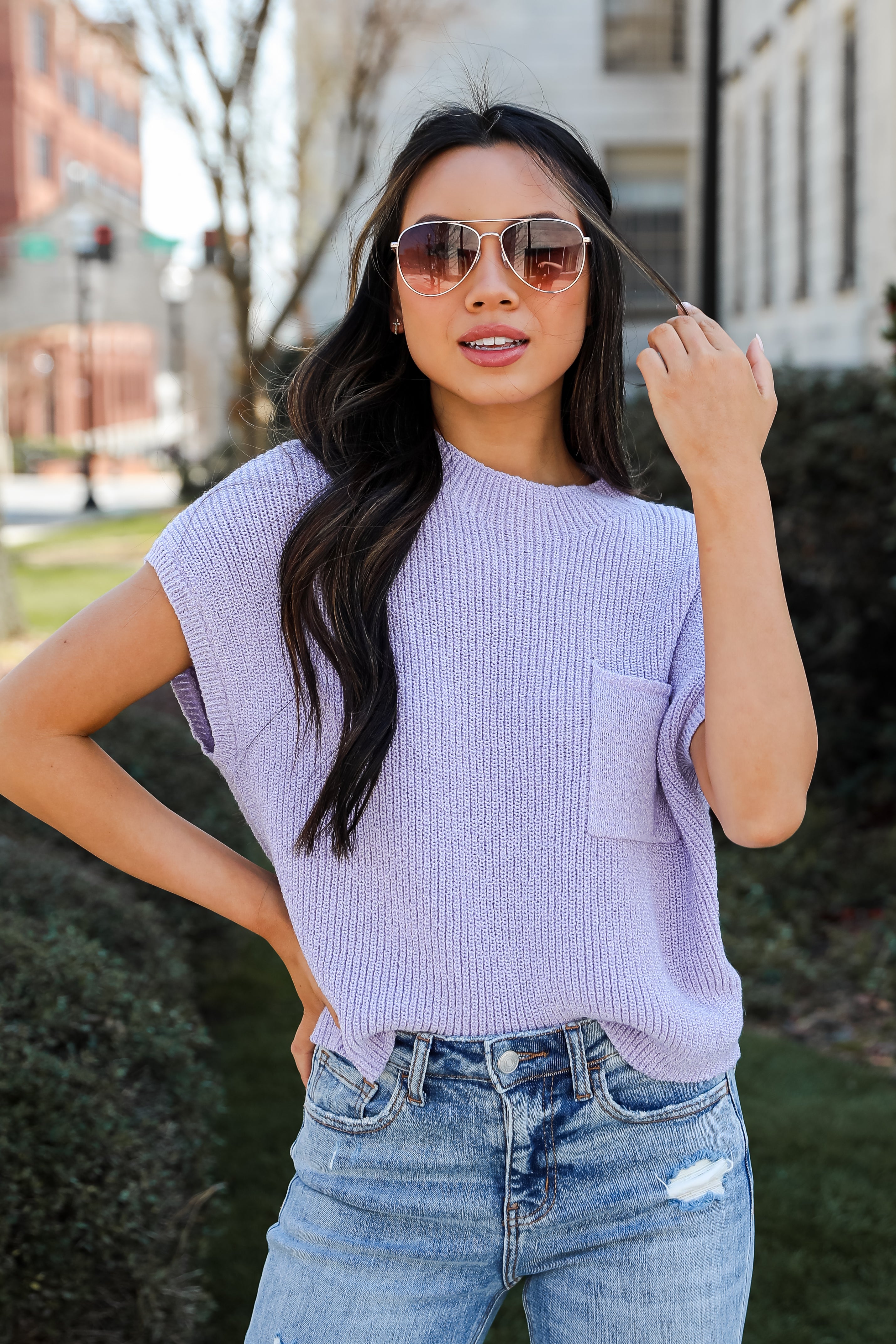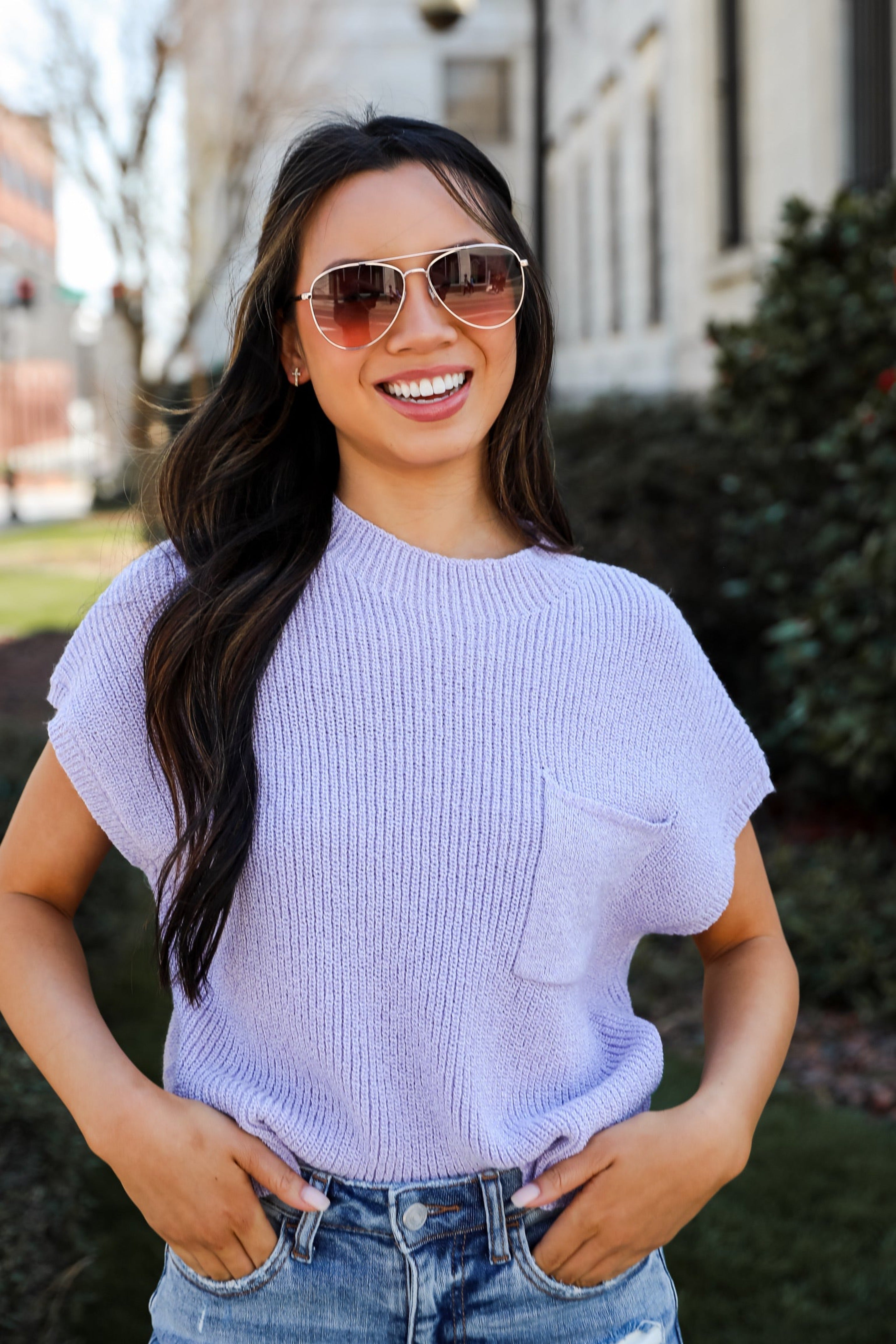 Seaside strolls and breezy days call for the Coastal Style Lilac Sweater Top! This delightful piece effortlessly combines comfort with sophistication, making it a versatile addition to your wardrobe. Crafted with soft and luxurious materials, this sleeveless sweater top features a lovely lilac hue that evokes a sense of tranquility and romance. The delicate color adds a touch of whimsy to your ensemble, making it perfect for both casual outings and more refined occasions. The sleeveless silhouette offers a modern and refreshing twist, allowing you to stay cool and comfortable while still enjoying the coziness of a sweater. The relaxed fit drapes elegantly over the body, offering a flattering silhouette that is both chic and versatile!
