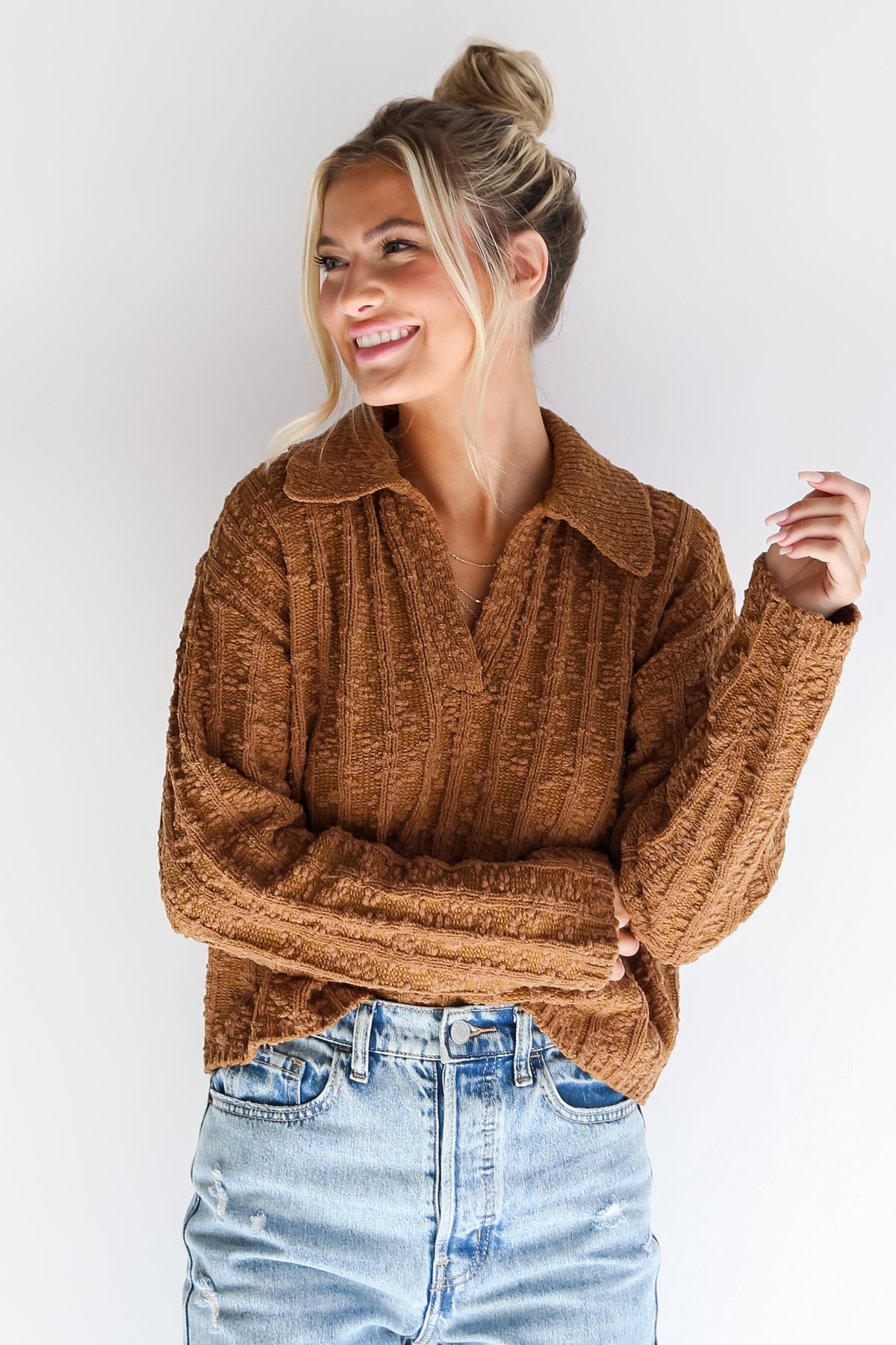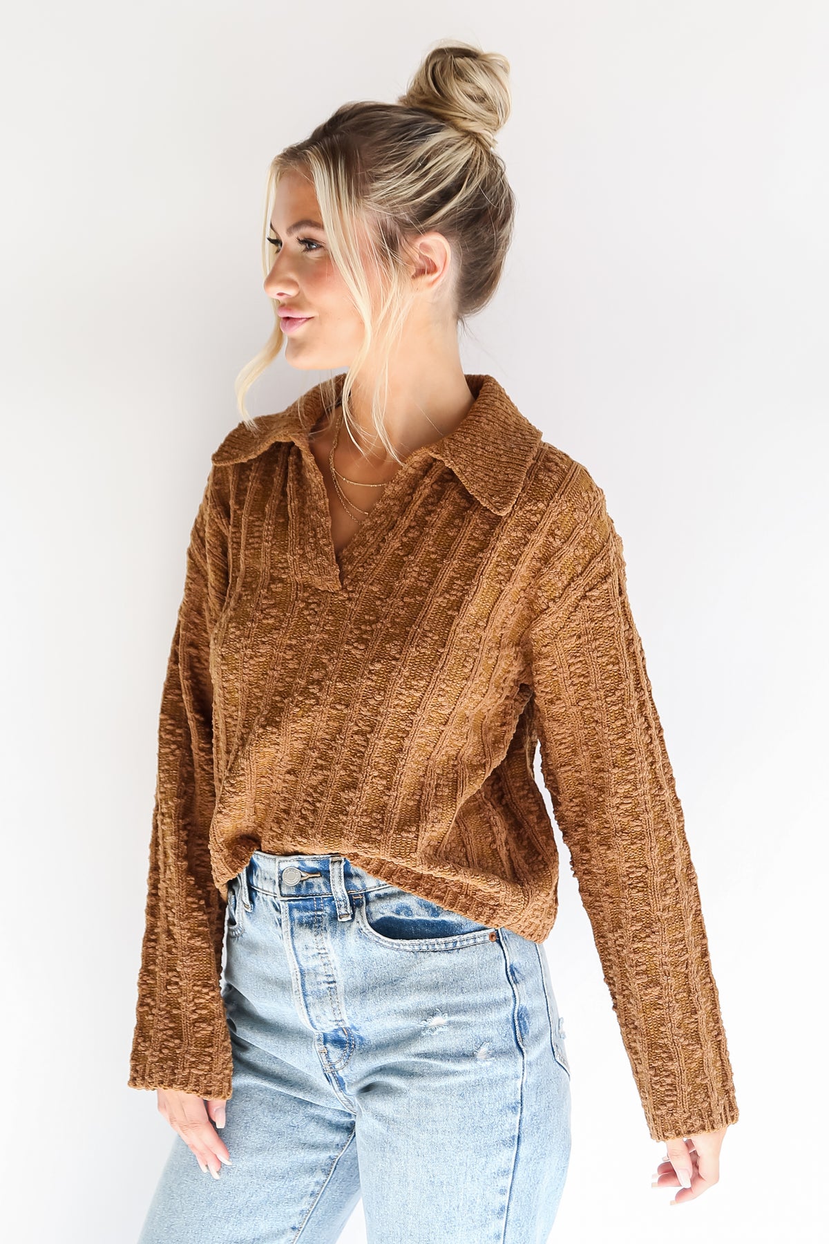 FINAL SALE - Cozy Addition Camel Collared Sweater