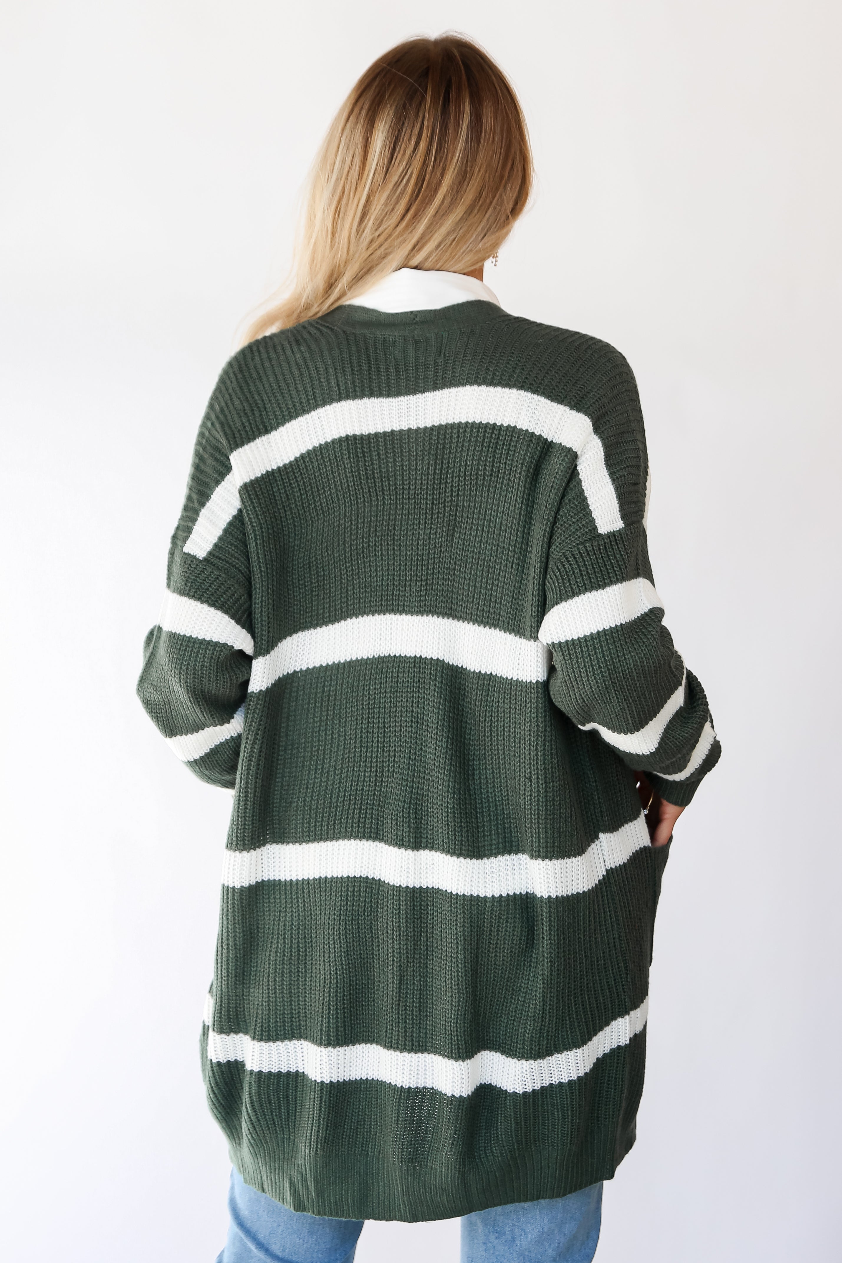 FINAL SALE - Cozy Circumstance Green Striped Longline Cardigan