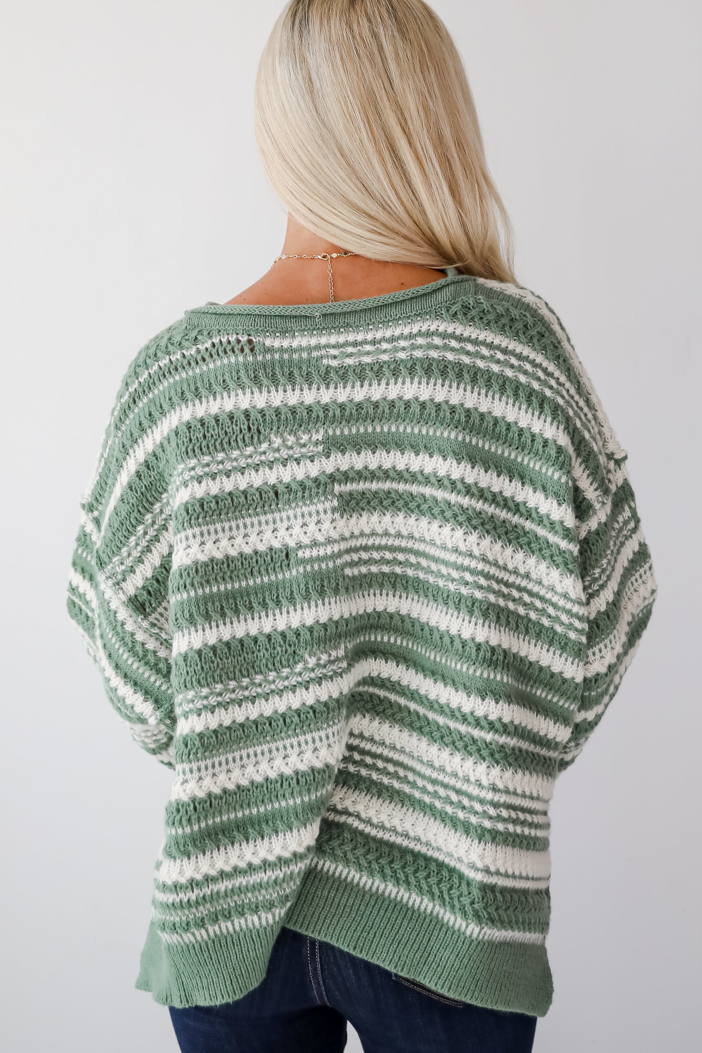 Cozy Conclusion Green Striped Sweater