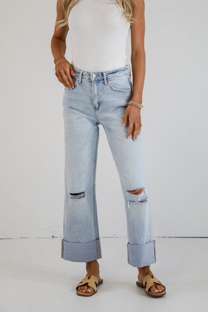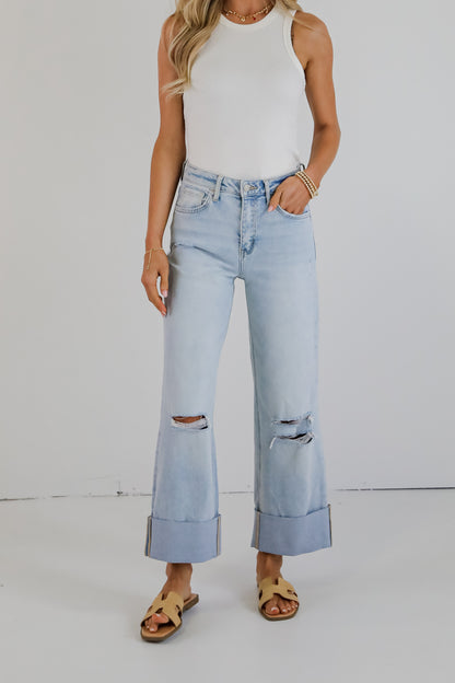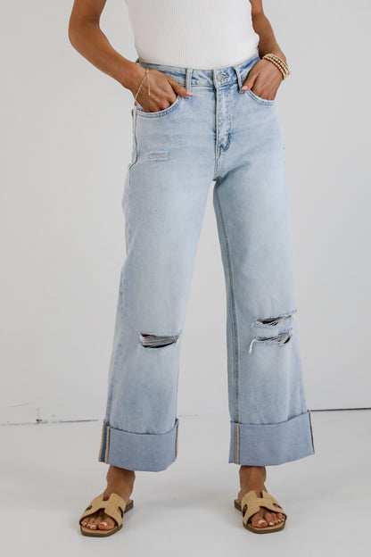 Say hello to effortlessly cool with the Demi Light Wash Super High-Rise Cuffed Baggy Wide Leg Jeans! These light wash beauties bring all the vintage vibes with a modern twist—featuring a flattering high-rise fit, relaxed baggy silhouette, and wide leg design that moves with you. The distressed detailing adds just the right amount of edge, while the cuffed hem keeps the look clean and styled. Whether you're pairing them with sneakers and a tee or dressing them up with heels and a bodysuit, these jeans are your new go-to for laid-back confidence!