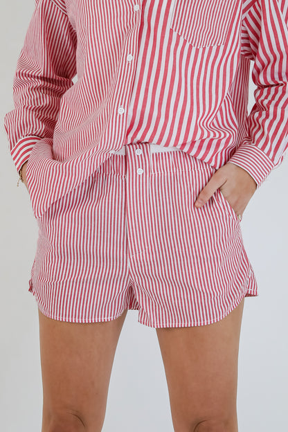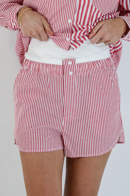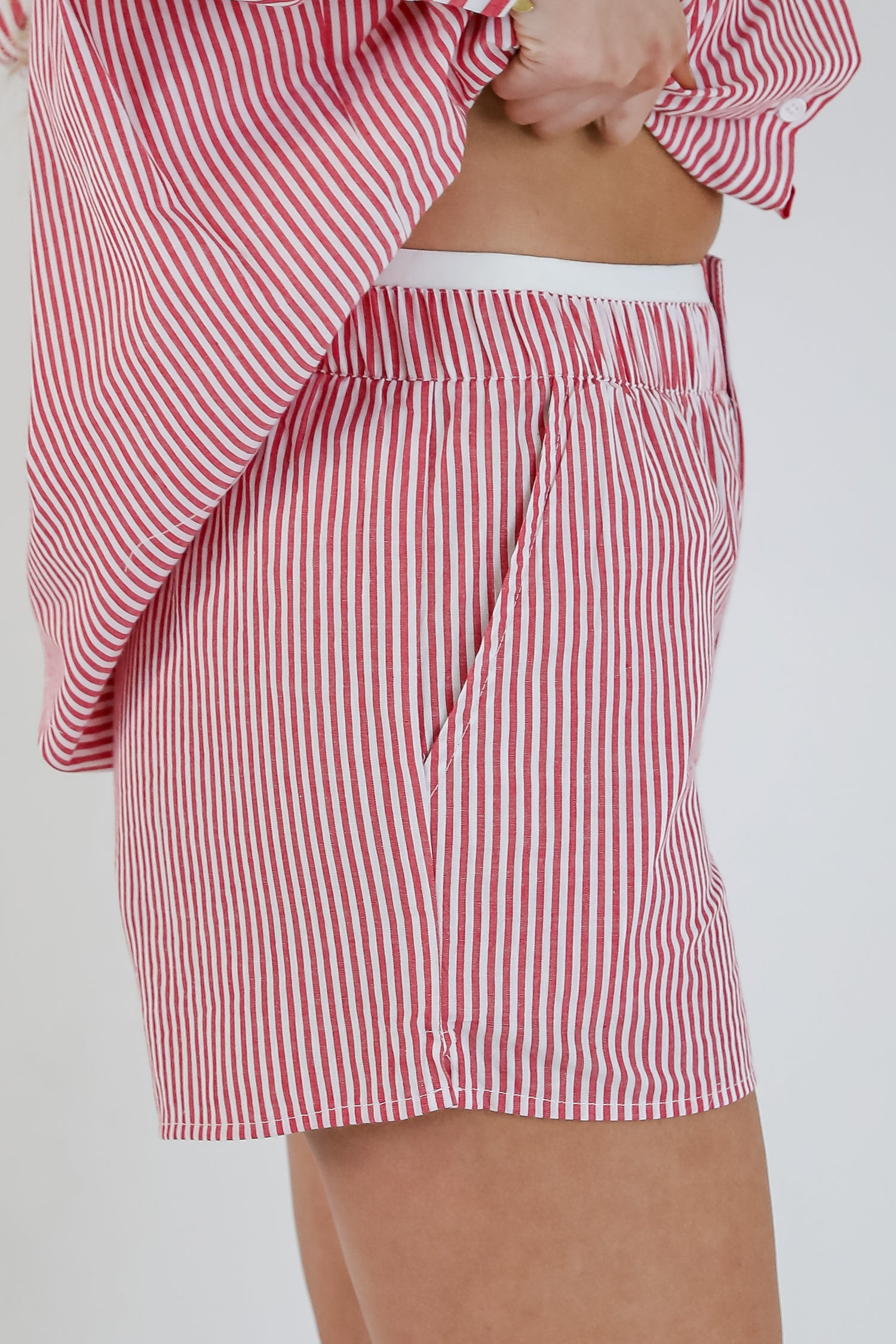 A summer with the Do Not Disturb Striped Boxer Shorts will be a time full of stylish convenience! Designed with a relaxed fit and soft, breathable fabric, these shorts bring a playful twist to classic loungewear. The all-over stripe pattern adds a pop of personality, while the elastic waistband ensures all-day comfort. Whether you're lounging at home, running errands, or styling them up with a tucked-in tee, these boxer shorts are the perfect blend of cozy and cute! Available in 2 colors.