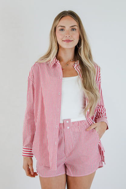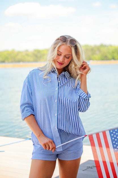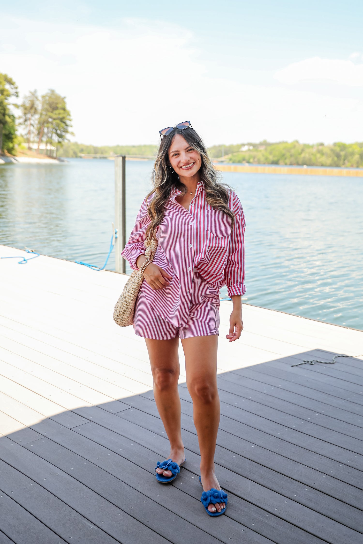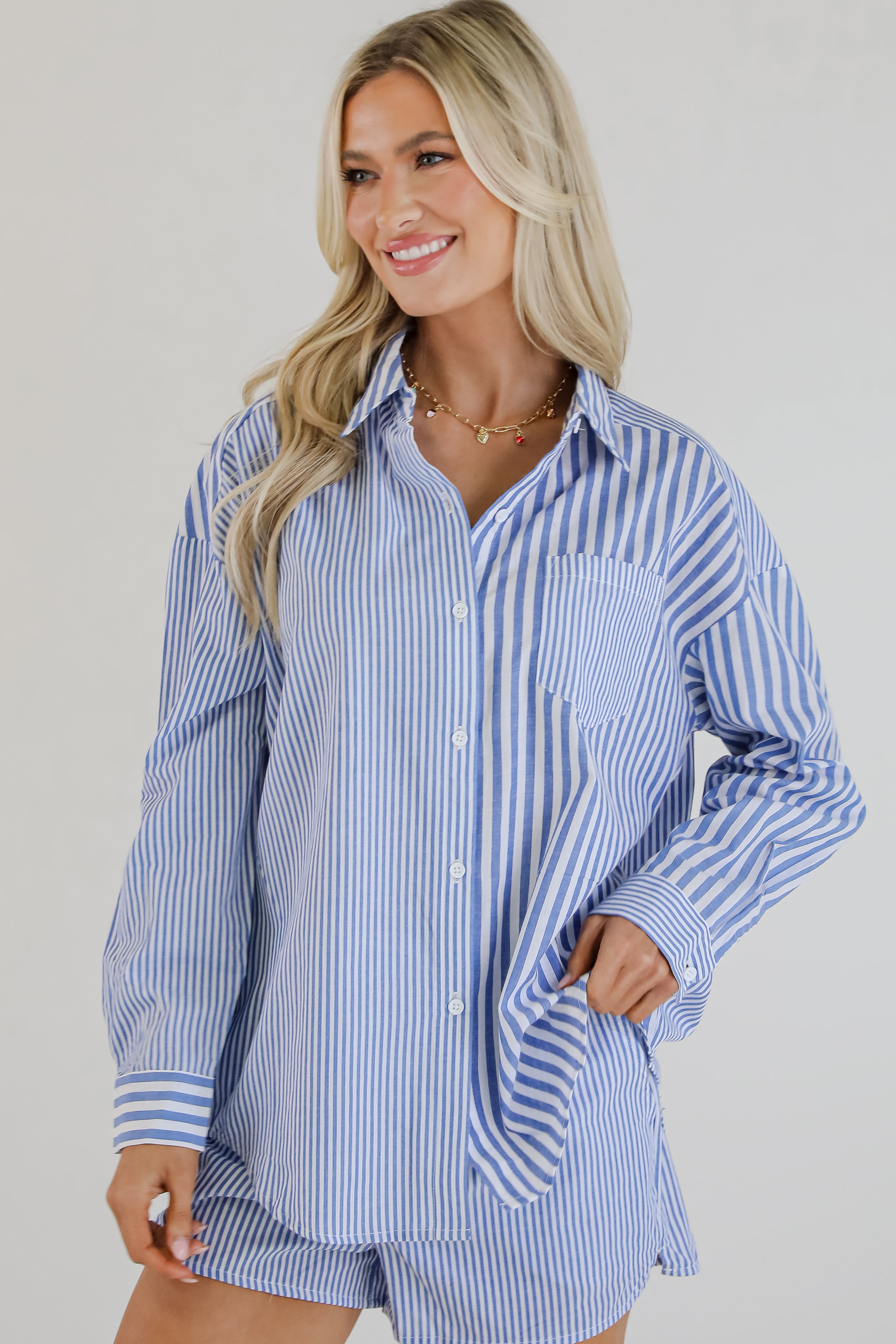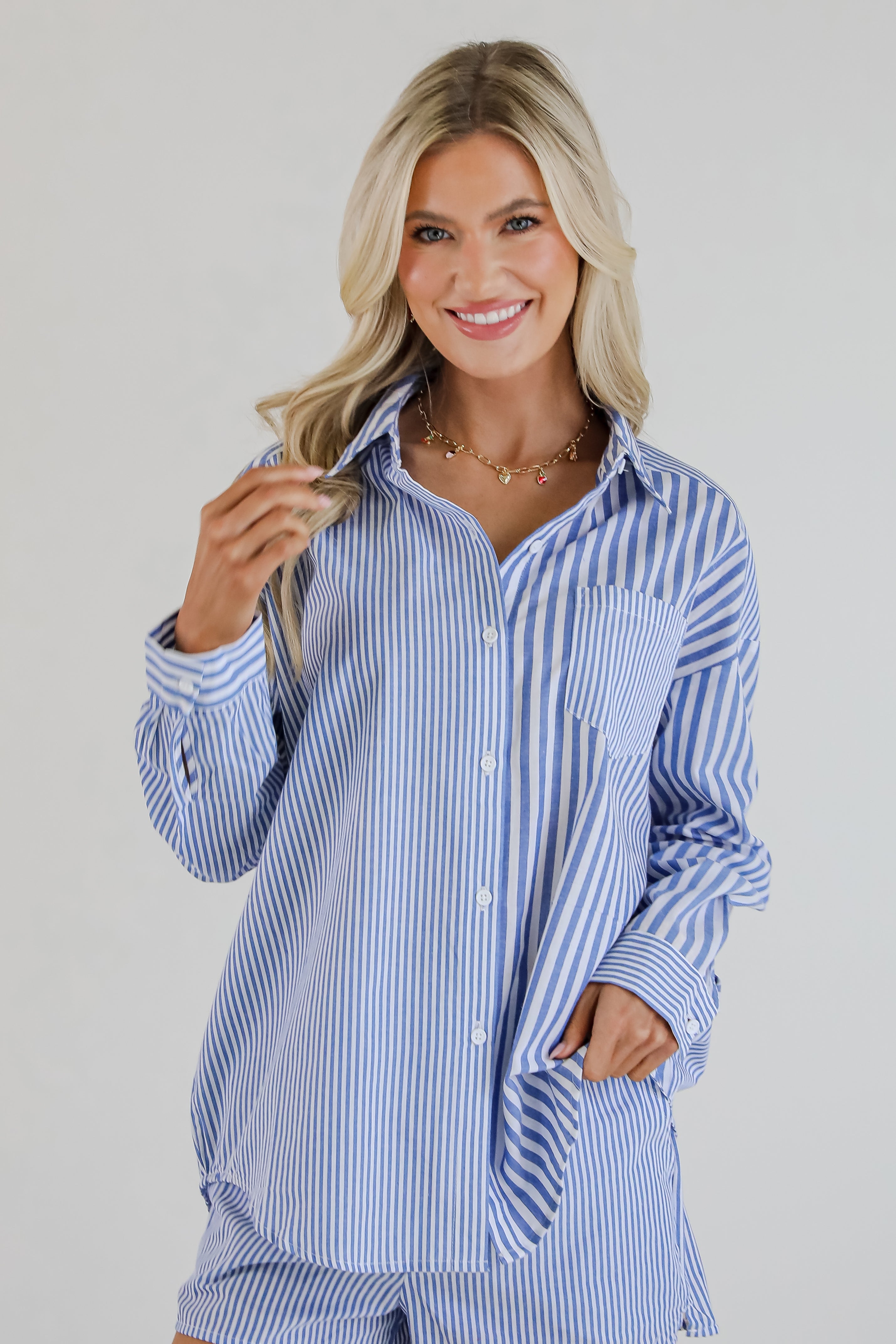 A summer with the Do Not Disturb Striped Button-Up Blouse will be a time full of stylish convenience! Designed with a relaxed, oversized fit and classic vertical stripes, this blouse gives off that perfect blend of polished and laid-back. The lightweight fabric drapes beautifully, while the button-front and collared neckline keep it chic and structured. Style it tucked, tied, or worn open over a tank for that cool, undone vibe! Available in 2 colors.