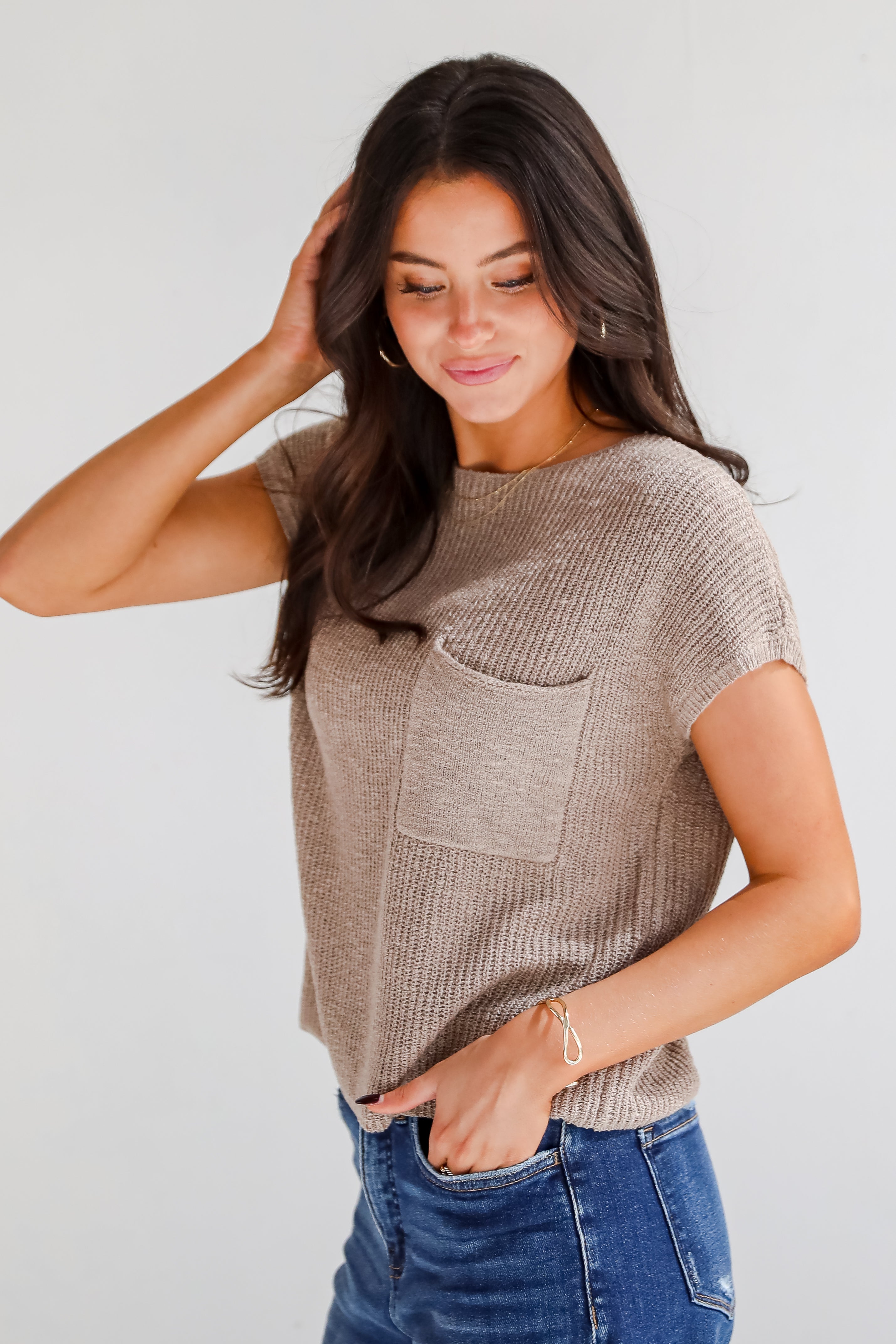 Sophisticated style is easy to achieve, thanks to the Elevated Persona Taupe Lightweight Knit Sweater Top! Crafted from a soft, breathable knit fabric, this top offers a relaxed fit that drapes beautifully, making it perfect for layering or wearing on its own. The neutral taupe color adds versatility, allowing it to easily pair with a variety of bottoms, from shorts to skirts. With its sleeveless design, it’s ideal for staying cool on sunny days while still providing a touch of sophistication. Whether you're headed to brunch or a casual outing, this lightweight knit sweater top is a stylish choice that effortlessly combines comfort and chic appeal!