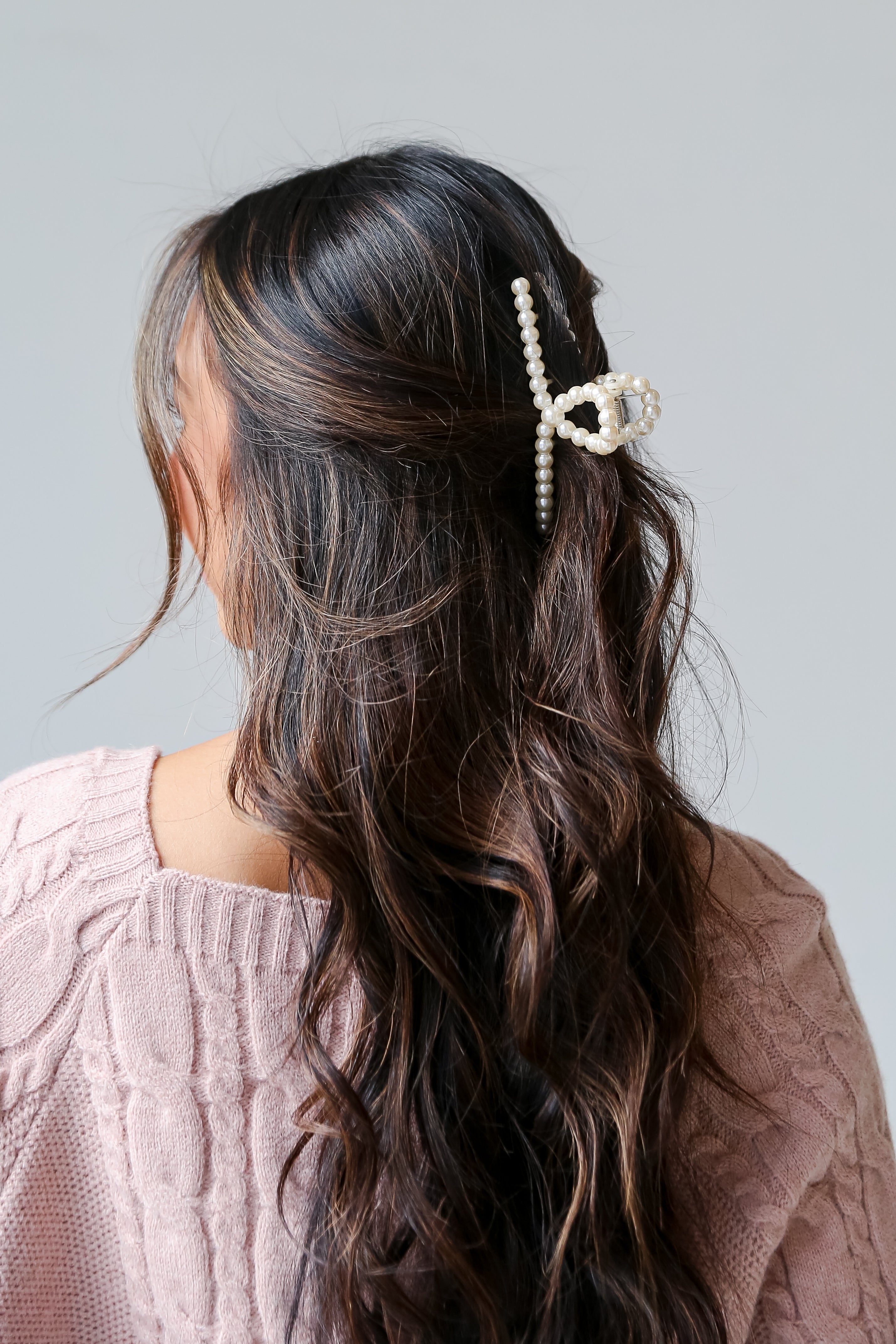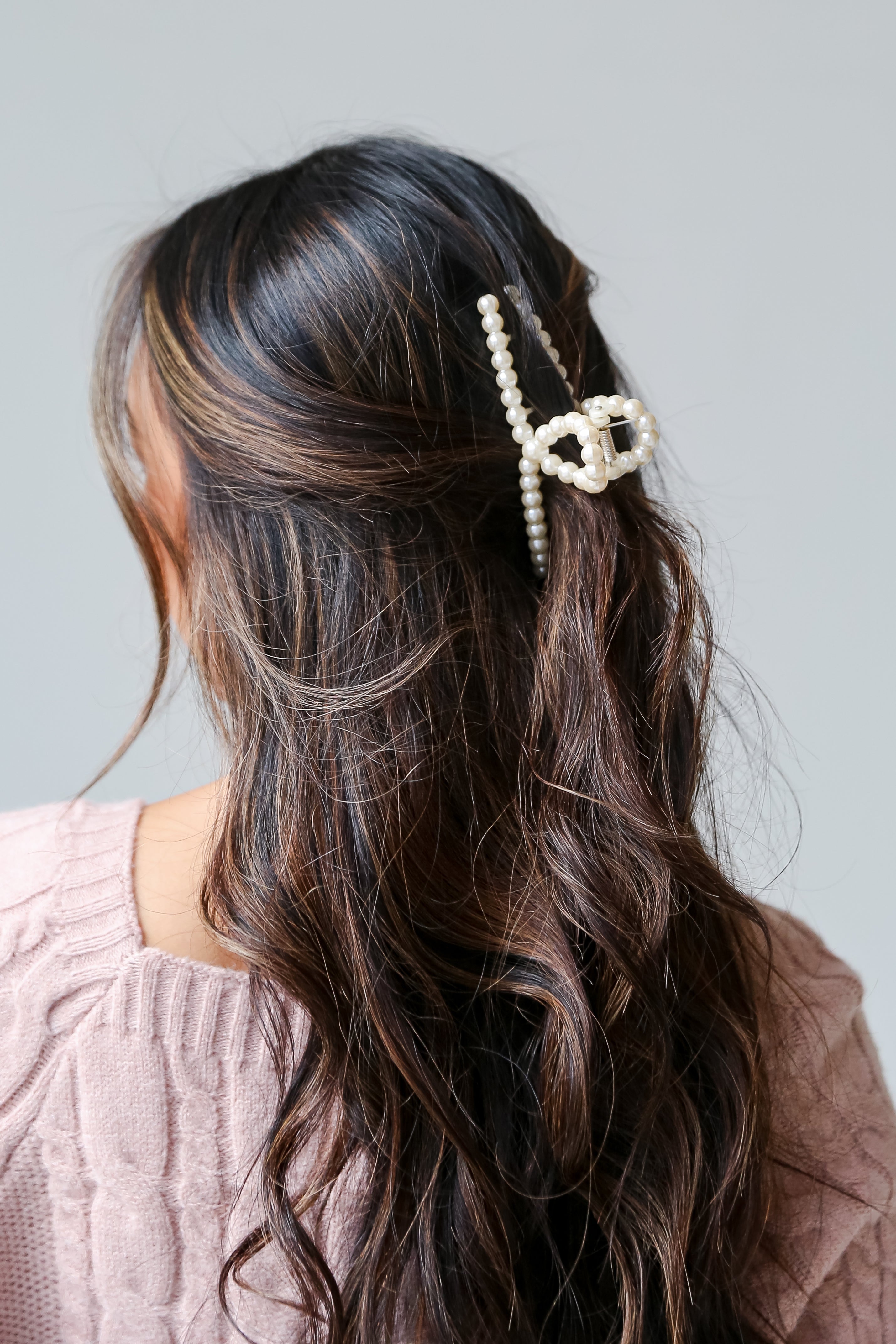 Everyone will envy your gorgeous updo with the Emily Pearl Claw Hair Clip! This cute hair clip has a gold plated design with pearls and a hinged, claw-style closure. Throw your hair up with the Emily Clip to instantly add a girly touch to your outfit!