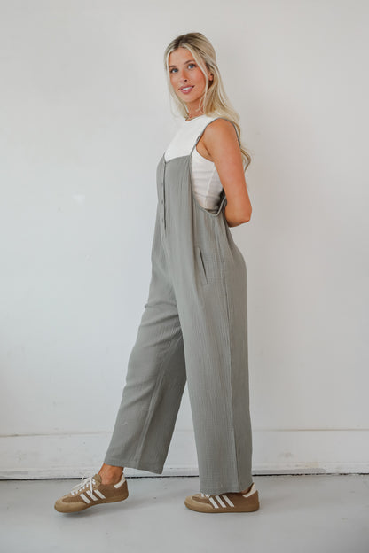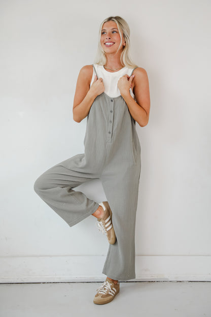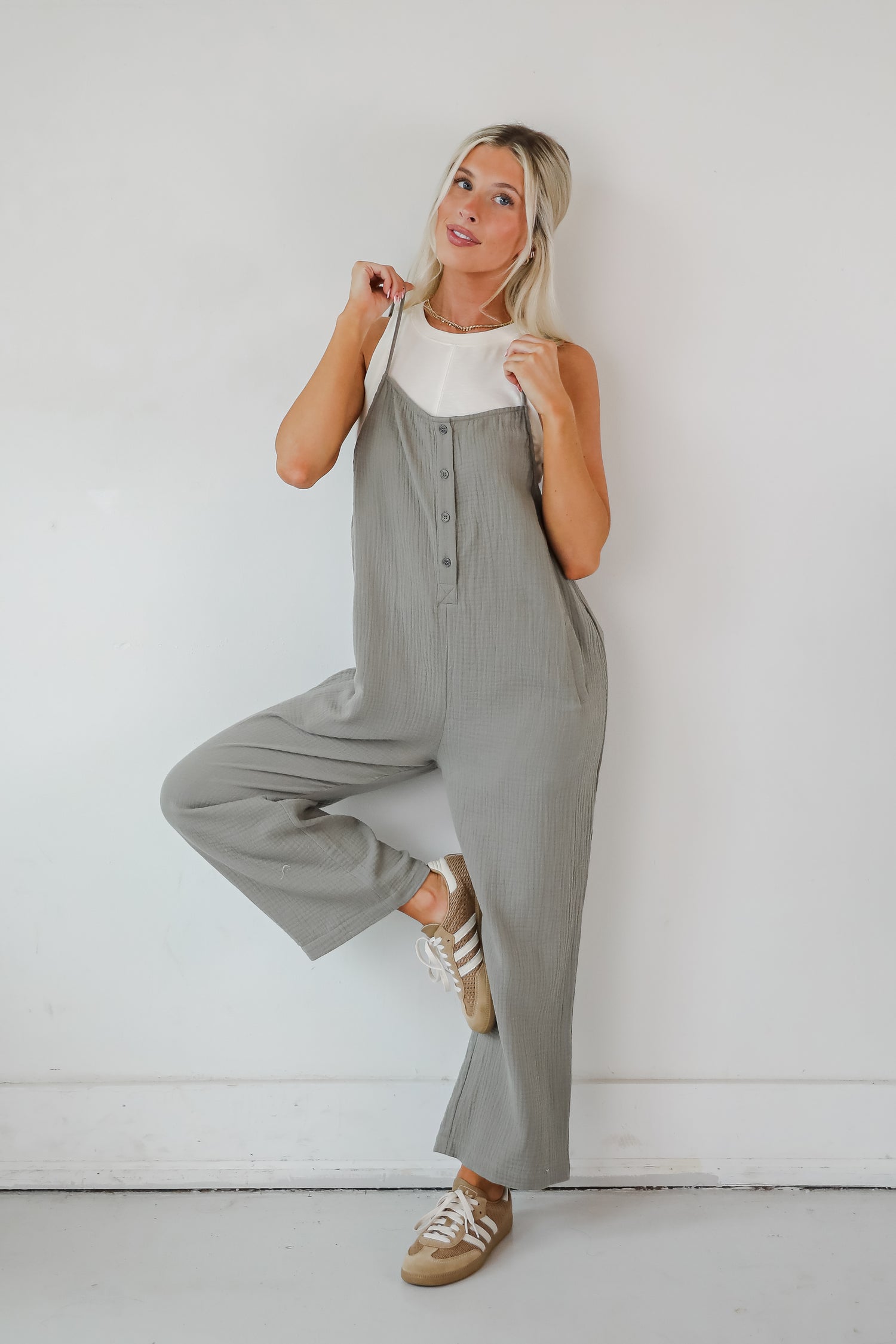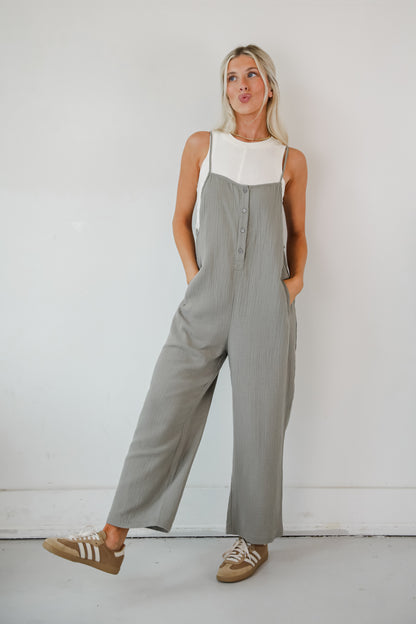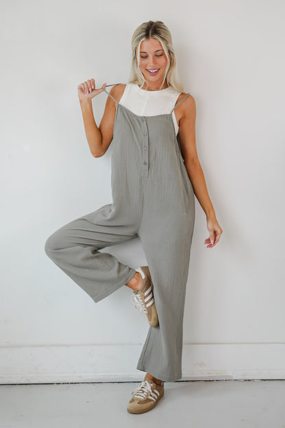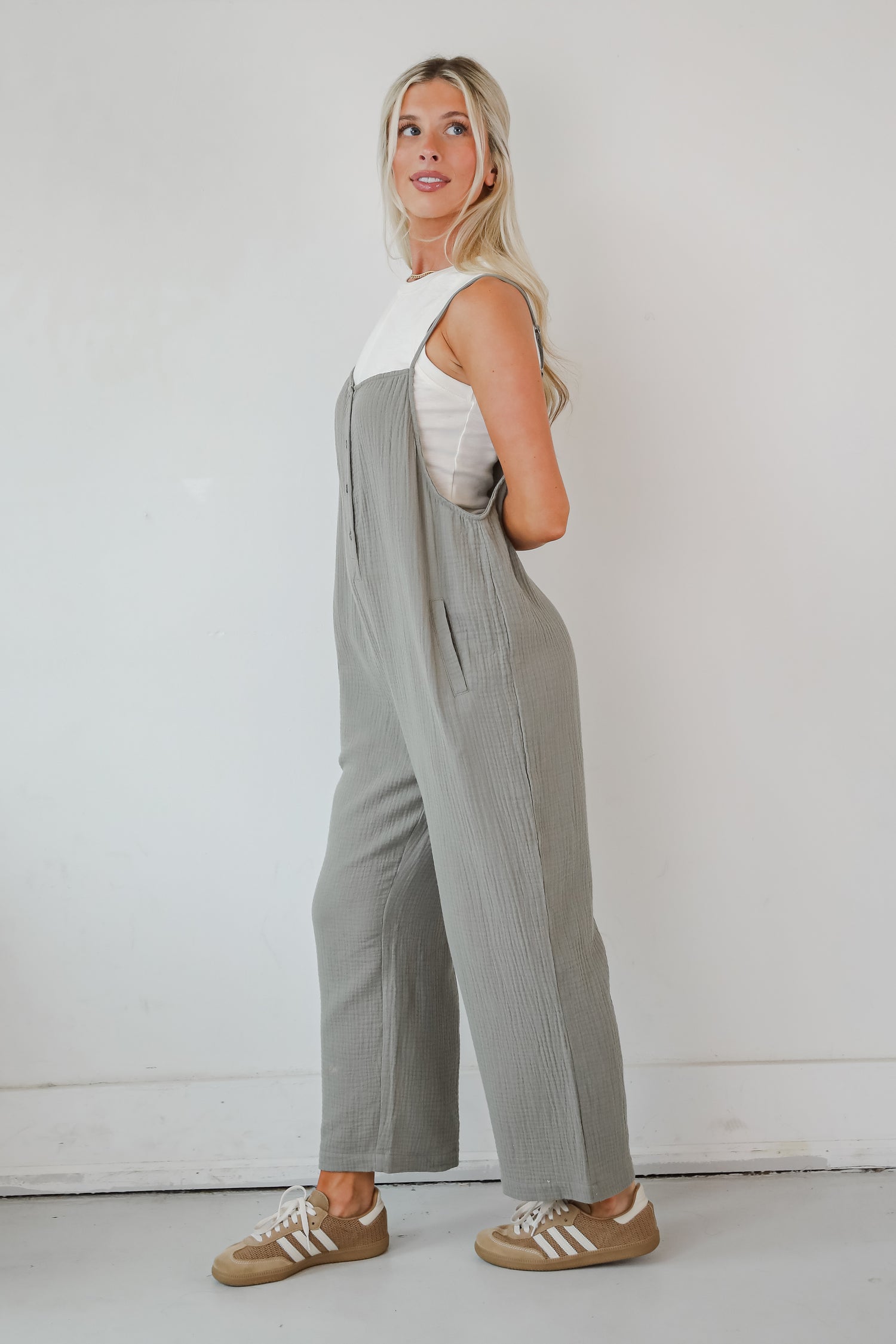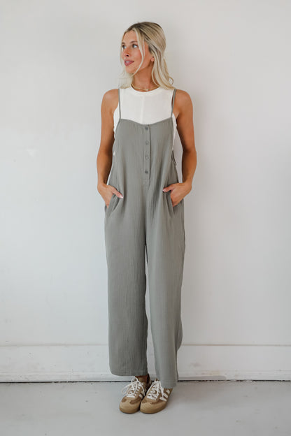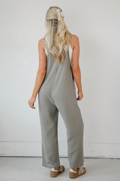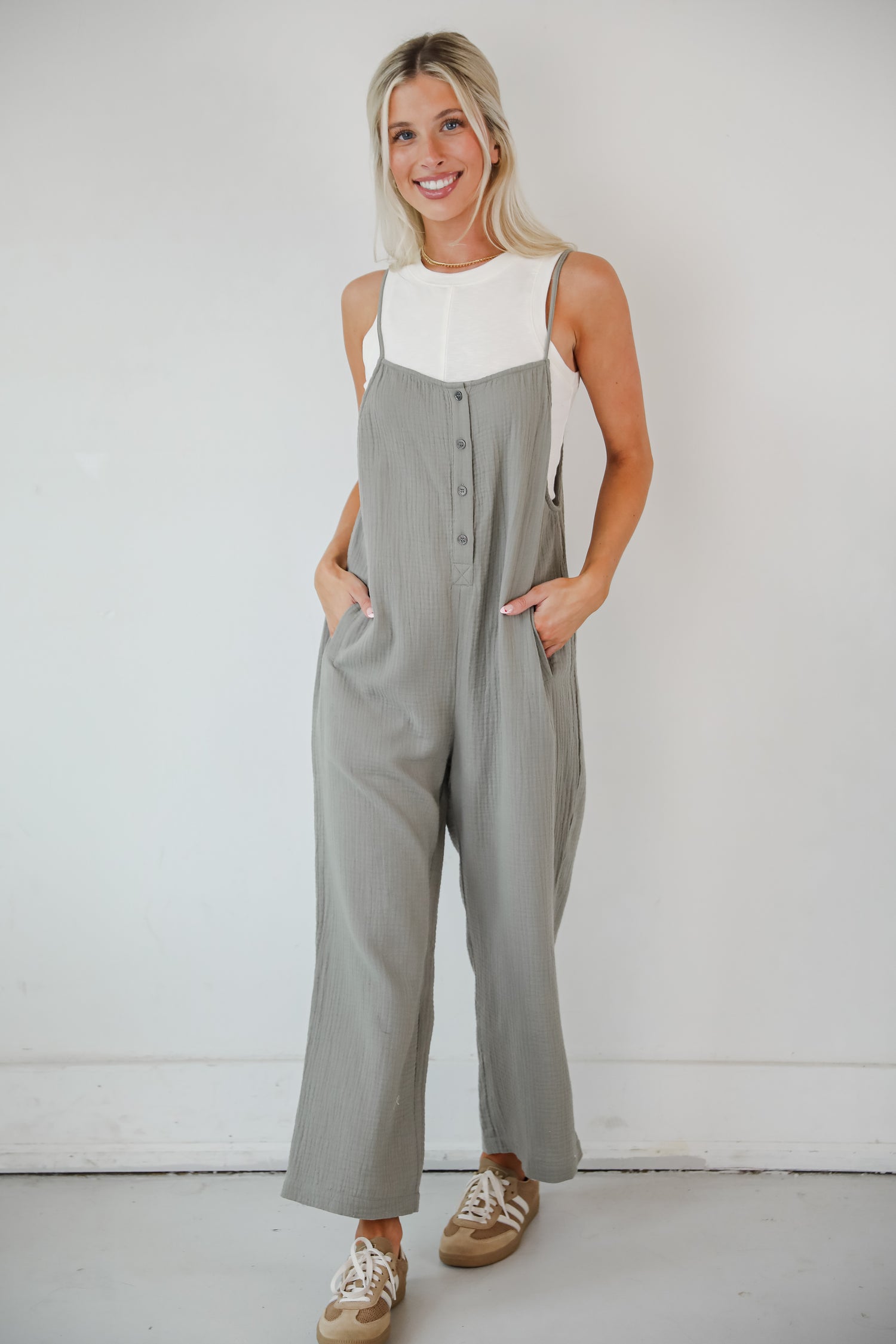 FINAL SALE - Enticing Darling Sage Linen Jumpsuit