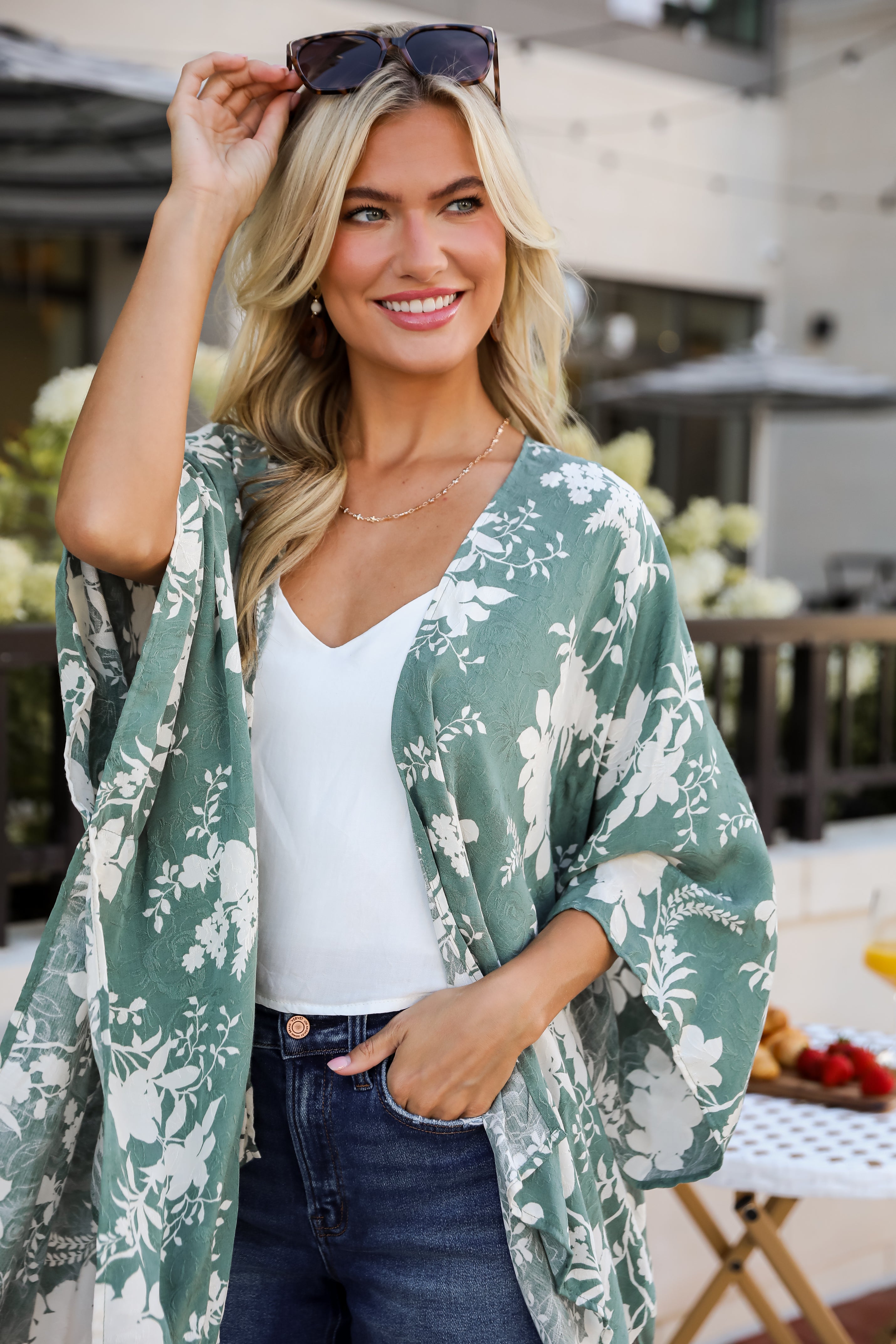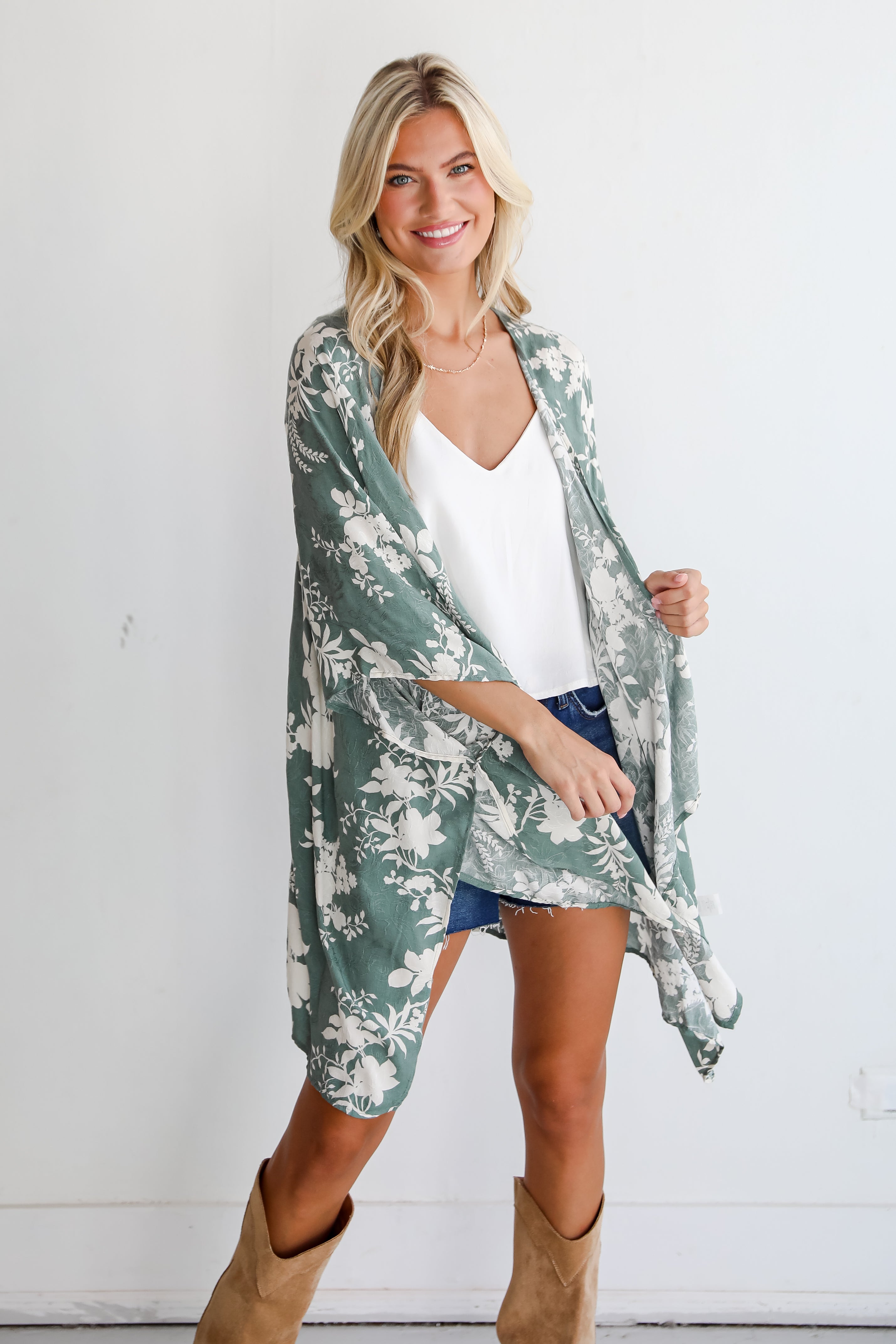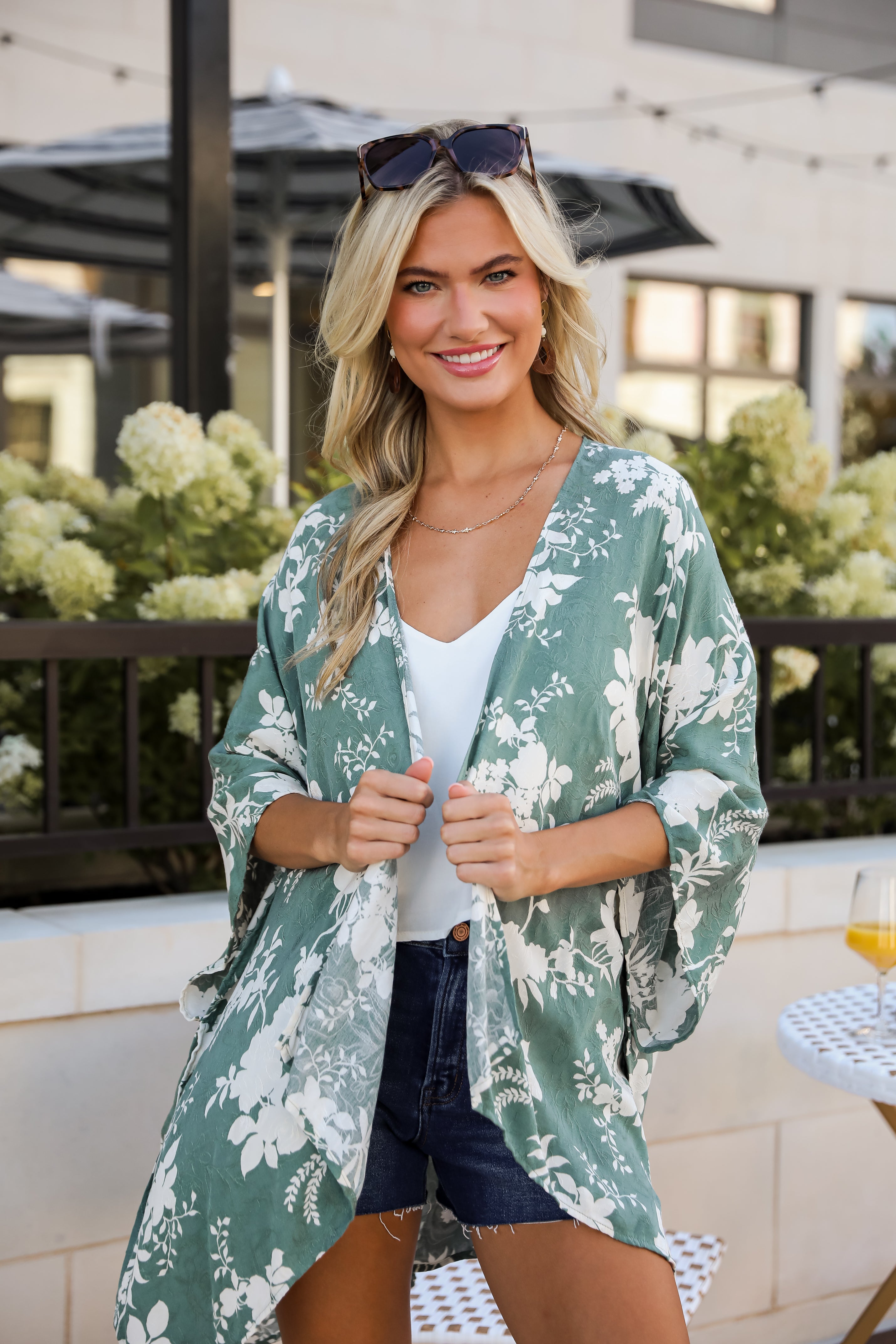 FINAL SALE - Feeling Flouncy Sage Floral Kimono