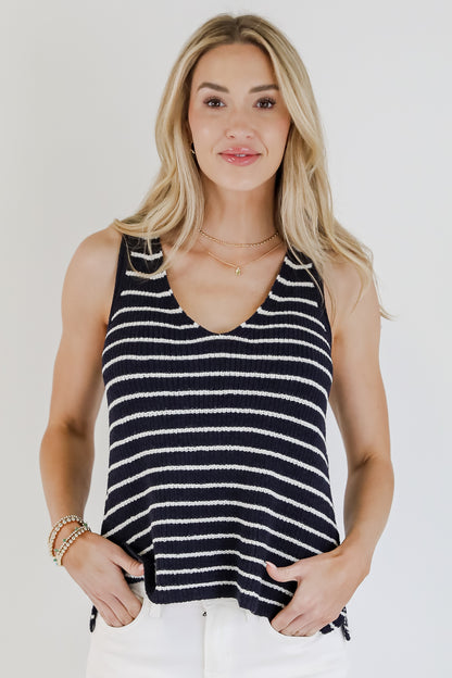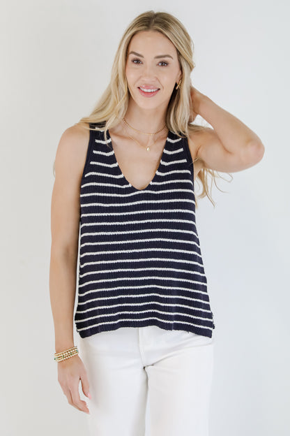 FINAL SALE - Feels Like Freedom Navy Striped Knit Tank