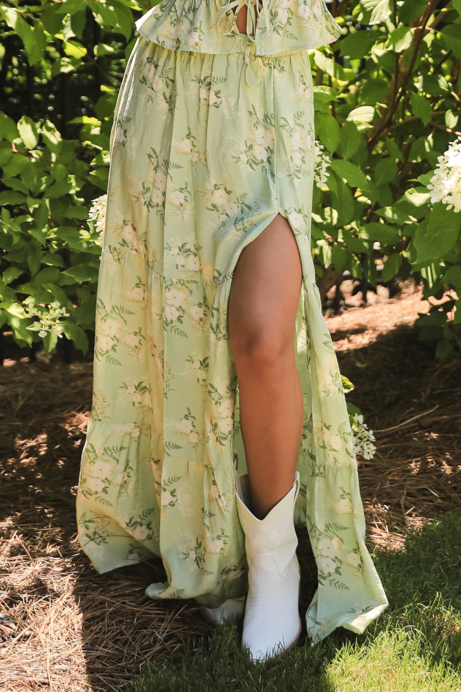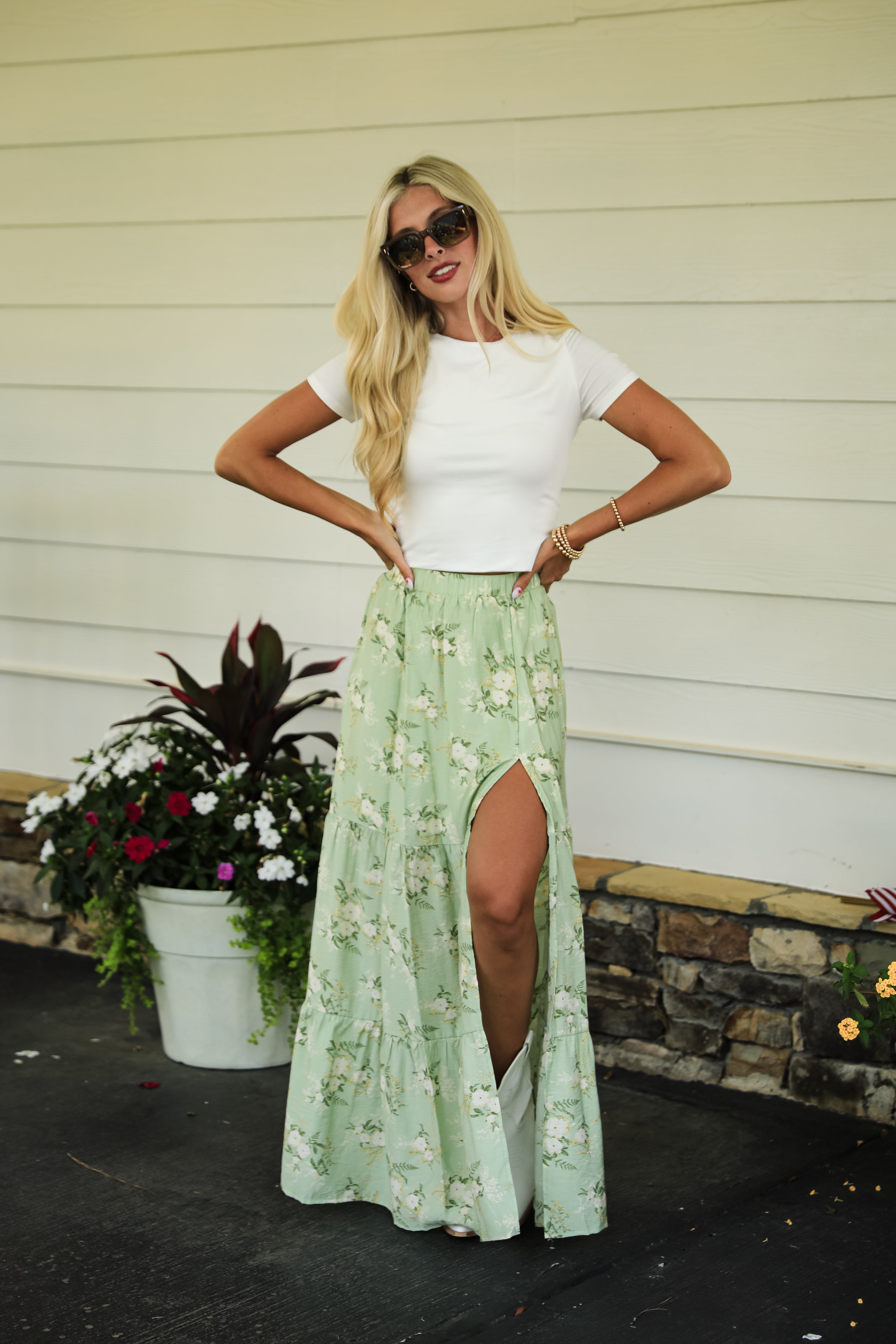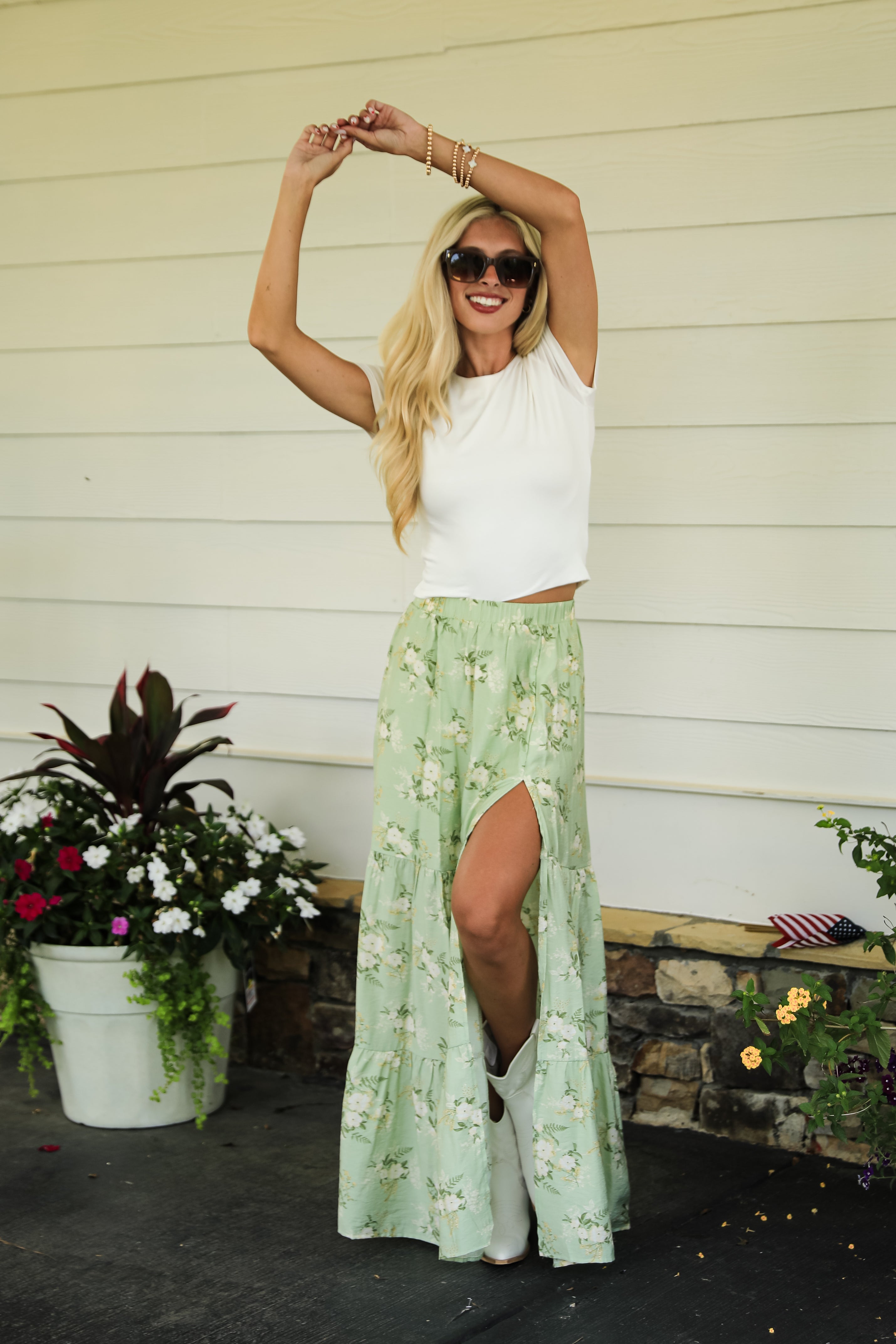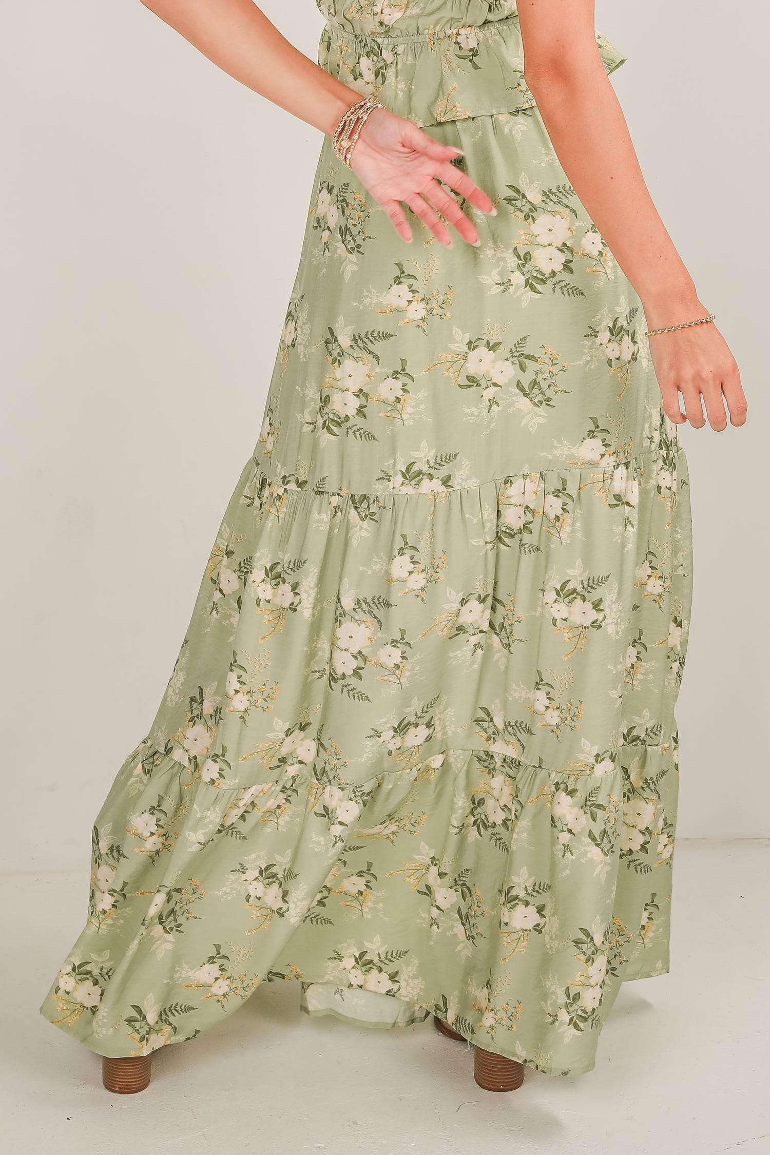 FINAL SALE - Found Love Sage Floral Tiered Maxi Skirt - DU DEAL