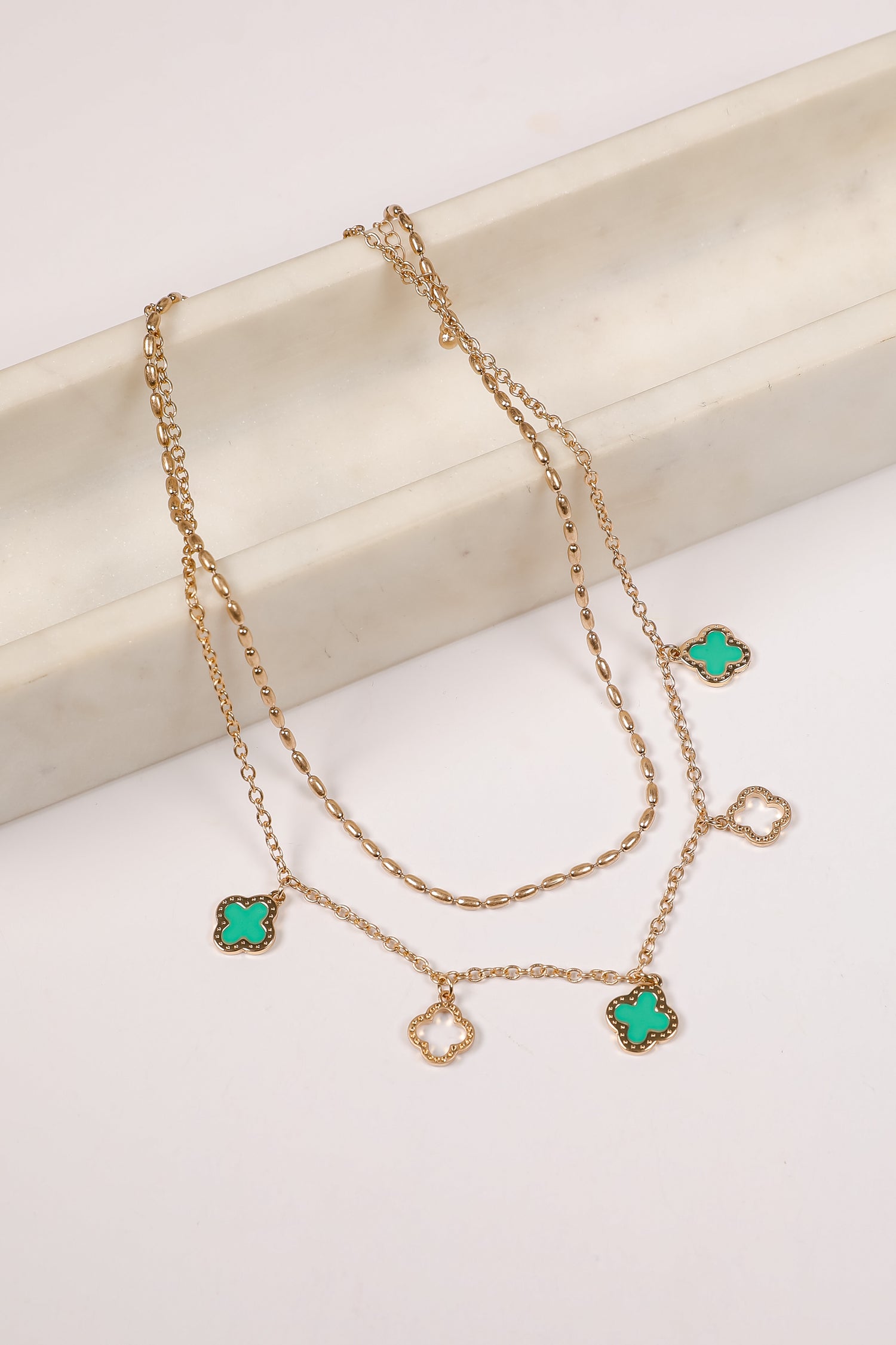 The Gianna Quatrefoil Layered Chain Necklace is sleek and classic! This trendy necklace features two layers of gold chains with colored quatrefoil charms. Style the Gianna Necklace with any outfit to instantly upgrade your look! Available in 2 colors.