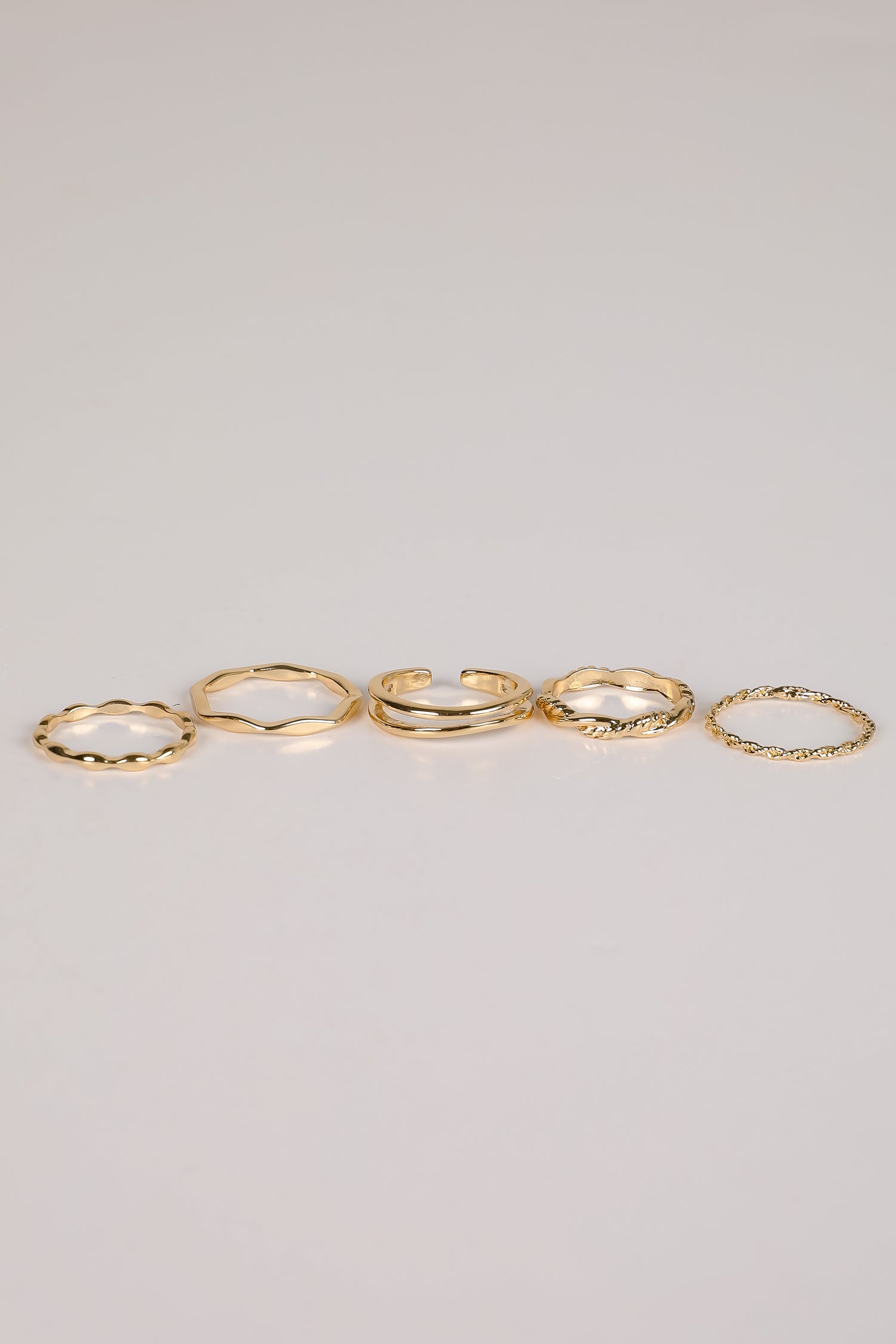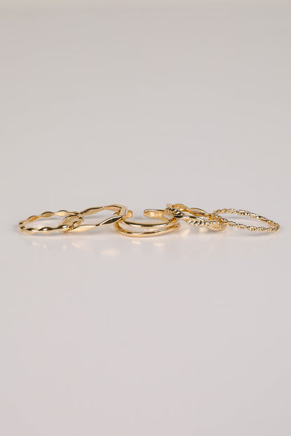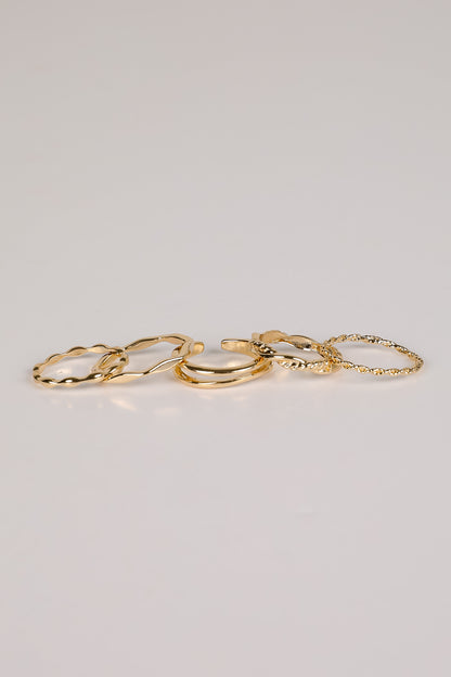 The Hanna Gold Ring Set is perfect all together and individually stunning on their own! This set of five dainty gold rings feature varying shapes and textures. Wear the Hanna Rings separately or stack them all together, either way you'll love them!