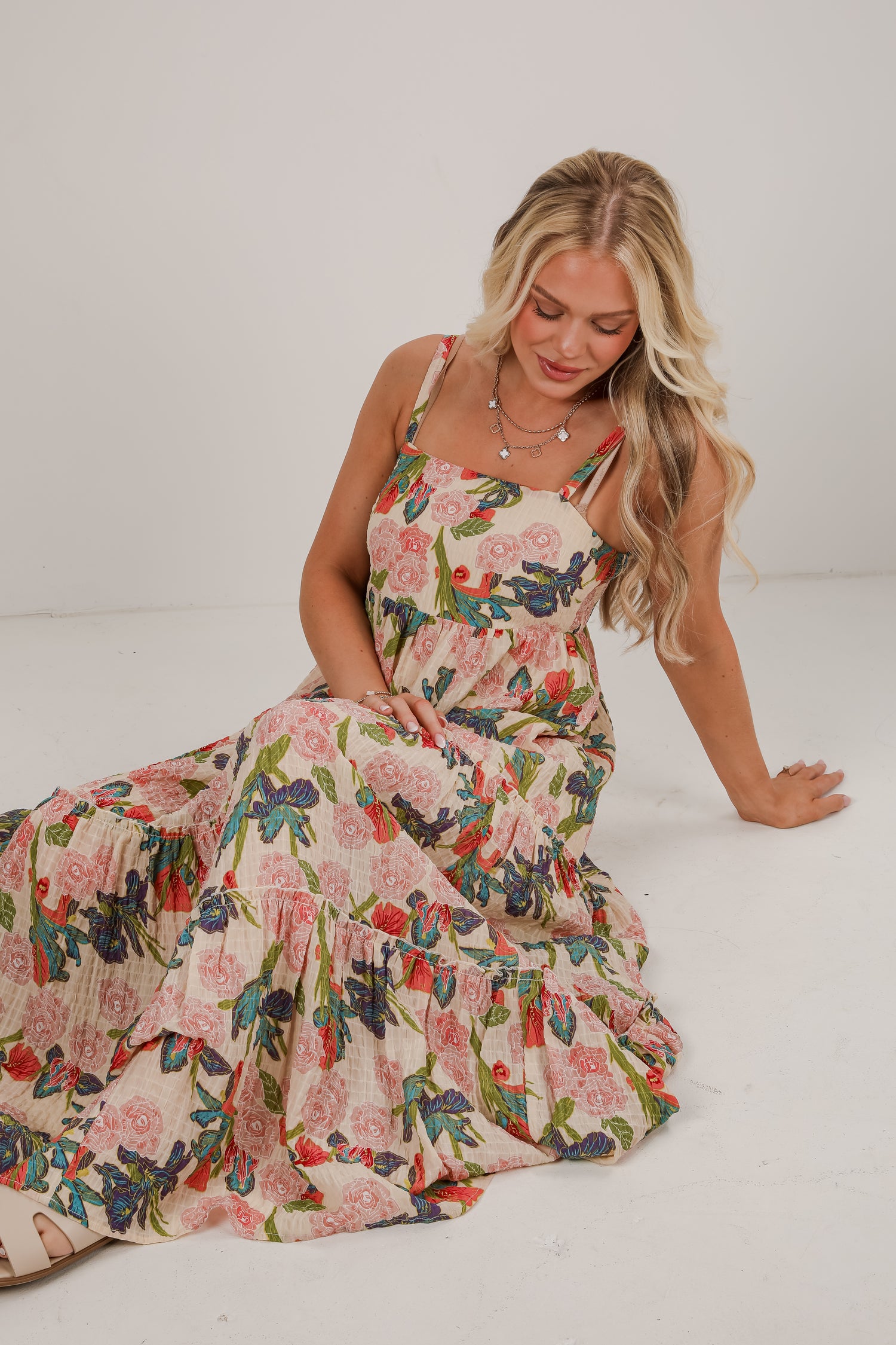 Become a Mediterranean muse the moment you slip into the In Your Favor Cream Floral Maxi Dress! This elegant and cheerful dress features a soft cream backdrop adorned with vibrant floral patterns that bring a pop of color to every step. The sleeveless design and flowy maxi silhouette make it perfect for warm-weather days, offering both comfort and charm. Ideal for garden parties, beach vacations, or weekend brunches, this dress is a must-have for effortless feminine style!