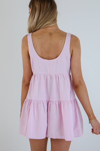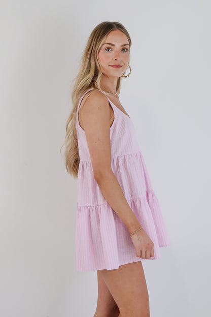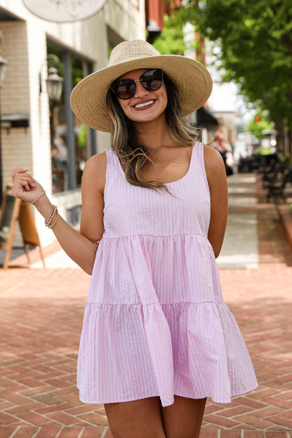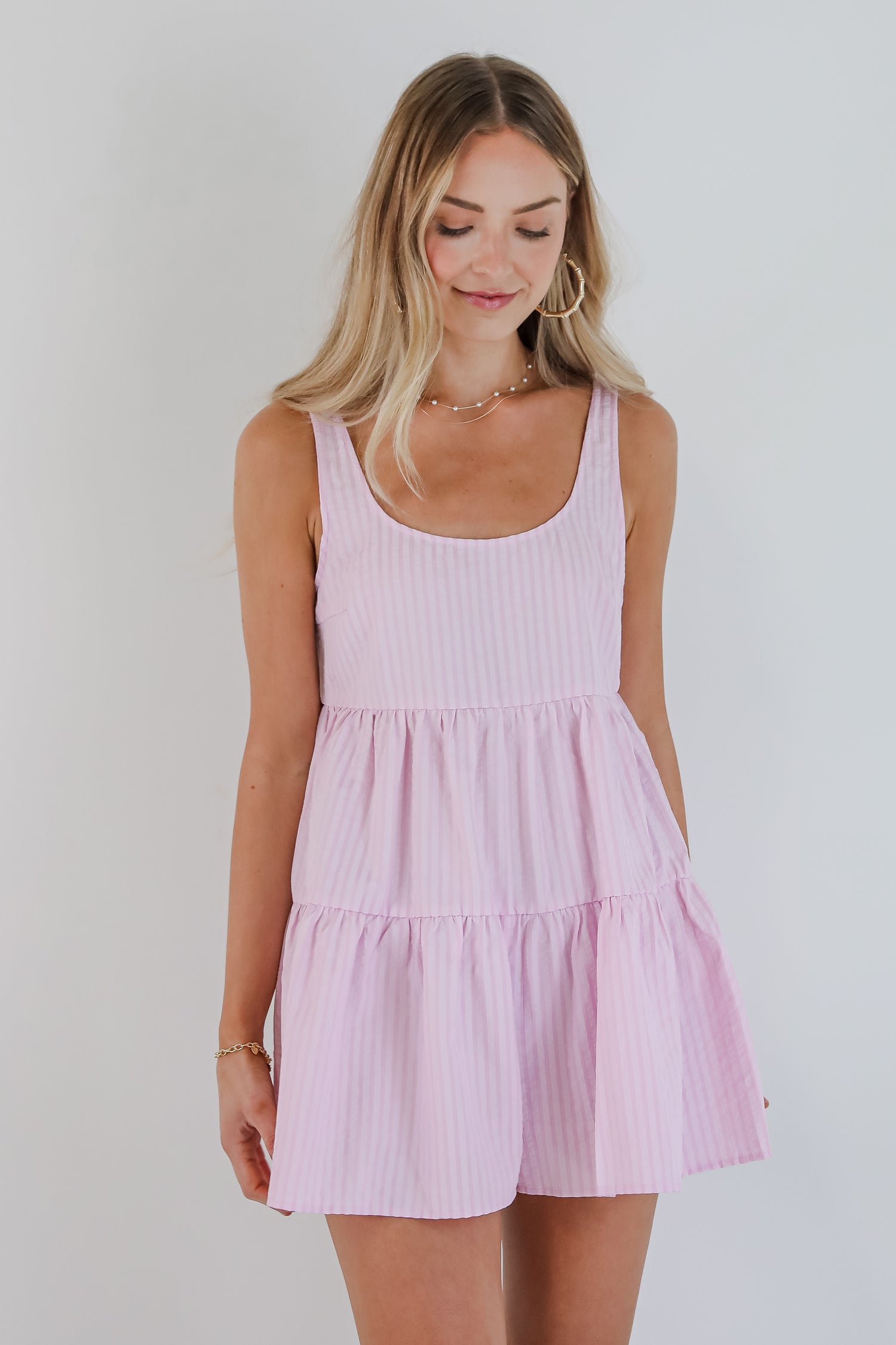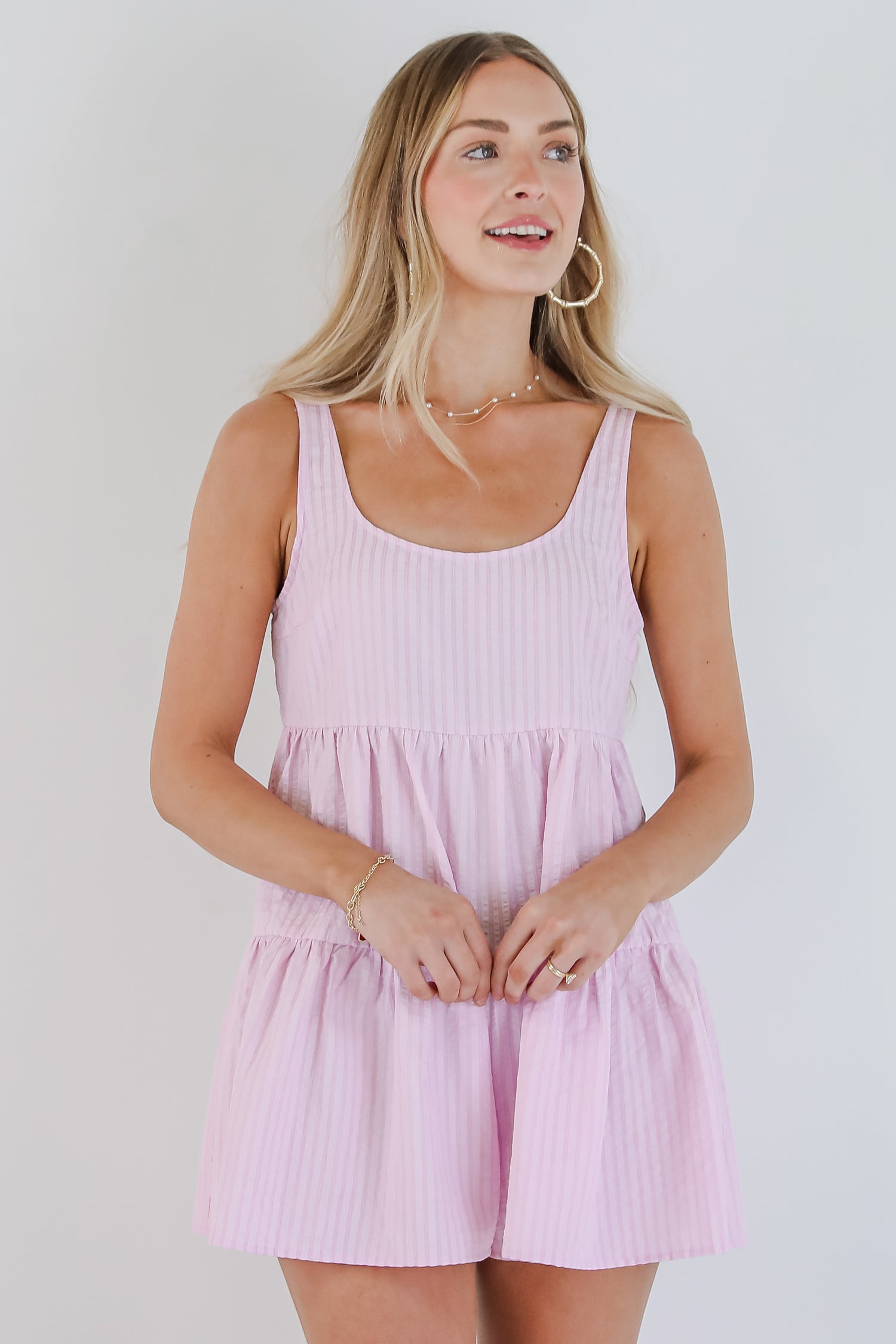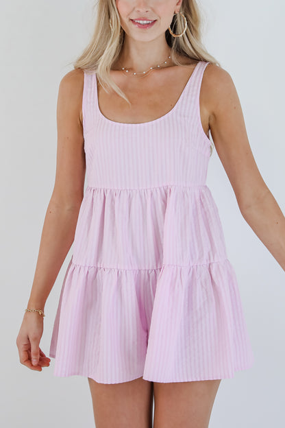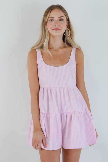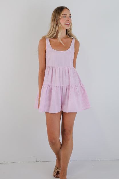 It's easy to fall in love with a look as cute as the Inspiring Love Blush Striped Romper! Featuring soft blush and white stripes, this romper is designed with tiered, flowy layers that add dreamy movement and a flattering silhouette. The sleeveless cut keeps it breezy and lightweight, perfect for sunny days, weekend brunches, or vacay strolls. Just pair it with sandals and a straw hat for an easy, feminine look that feels as good as it looks!