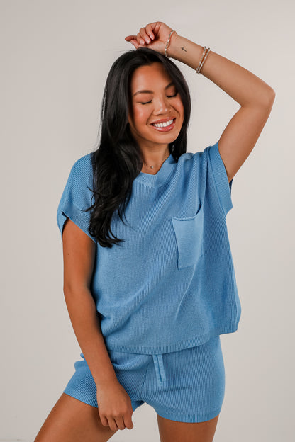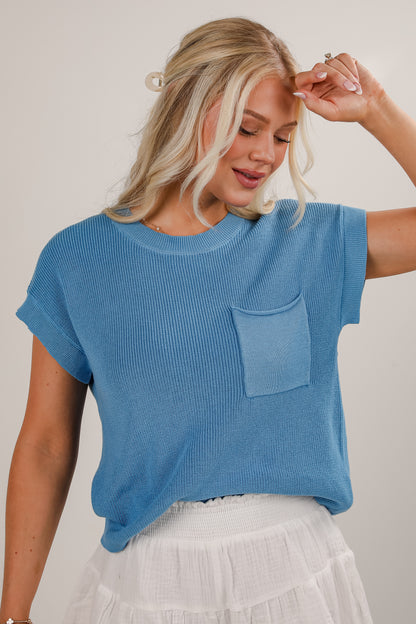 The Just Imagine It Blue Knit Top is both breezy and summery! Crafted from soft, breathable knit fabric, this top features relaxed cap sleeves and a handy front pocket for subtle style and function. The vibrant blue shade adds a cheerful pop, making it perfect for pairing with jeans, shorts, or your favorite casual bottoms. Whether you’re out and about or just kicking back, this top keeps you looking cool and feeling cozy all day long!