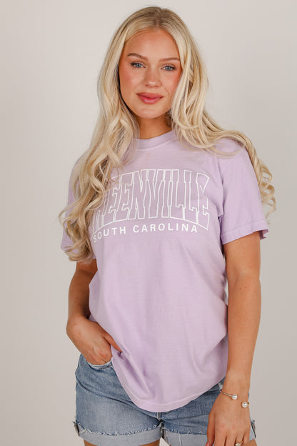 Calling all Greenville residents, the Lavender Greenville South Carolina Block Letter Tee was made just for you! This comfy tee is designed with a soft and stretchy knit. It features a crew neckline, short sleeves, a relaxed fit, and the words "Greenville South Carolina" on the front. Style the Lavender Greenville South Carolina Block Letter Tee with your favorite denim and sneakers for a casual daytime look!