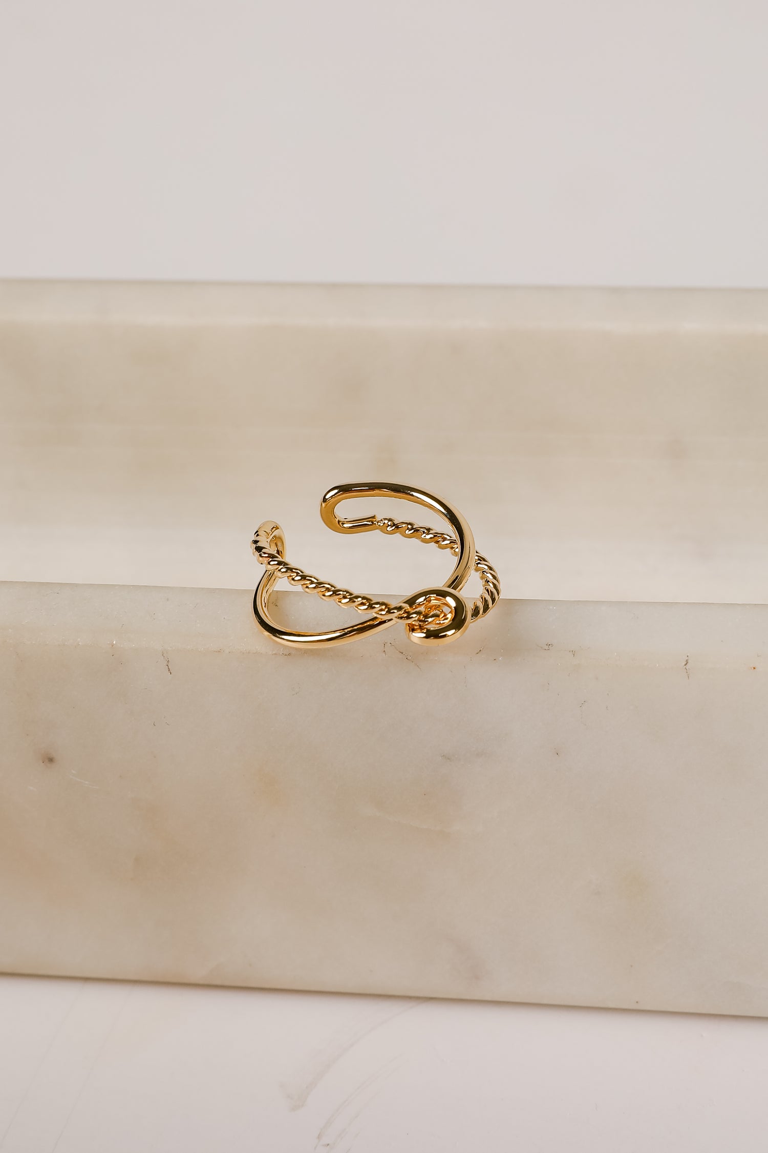 From cocktail hour to office aesthetics, the Lucy Gold Knot Double Ring is here to make an impression! This chic gold ring features a double ring design with a knot detail. Wear the Lucy Ring on its own or stack it with other gold rings, either way you're sure to shine!