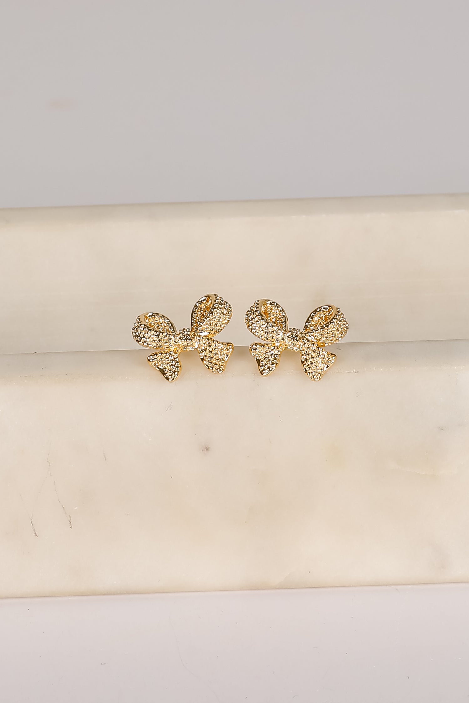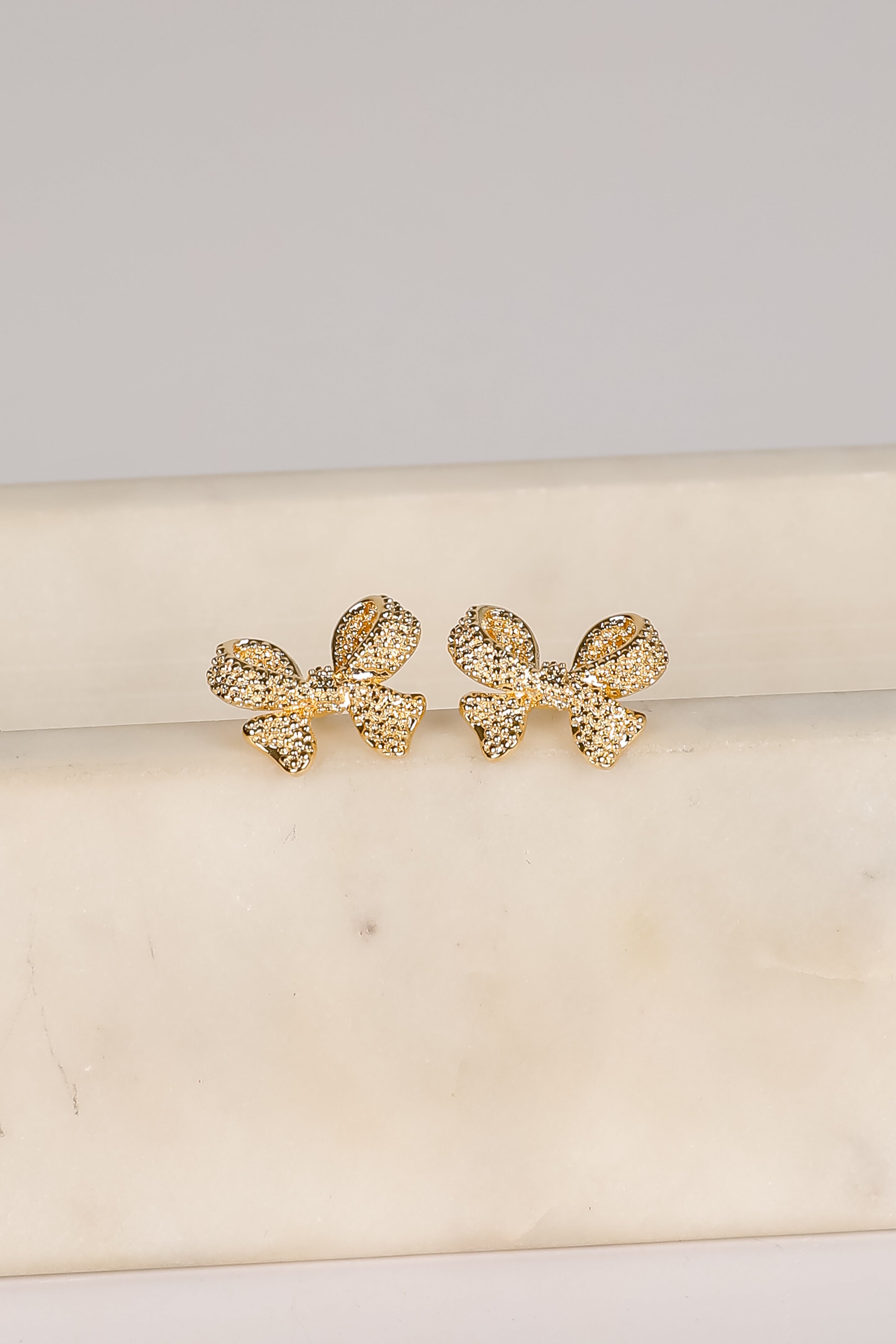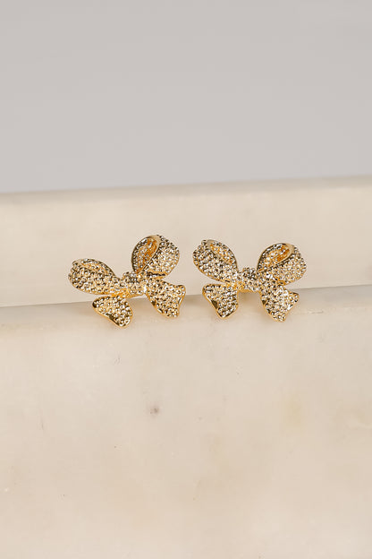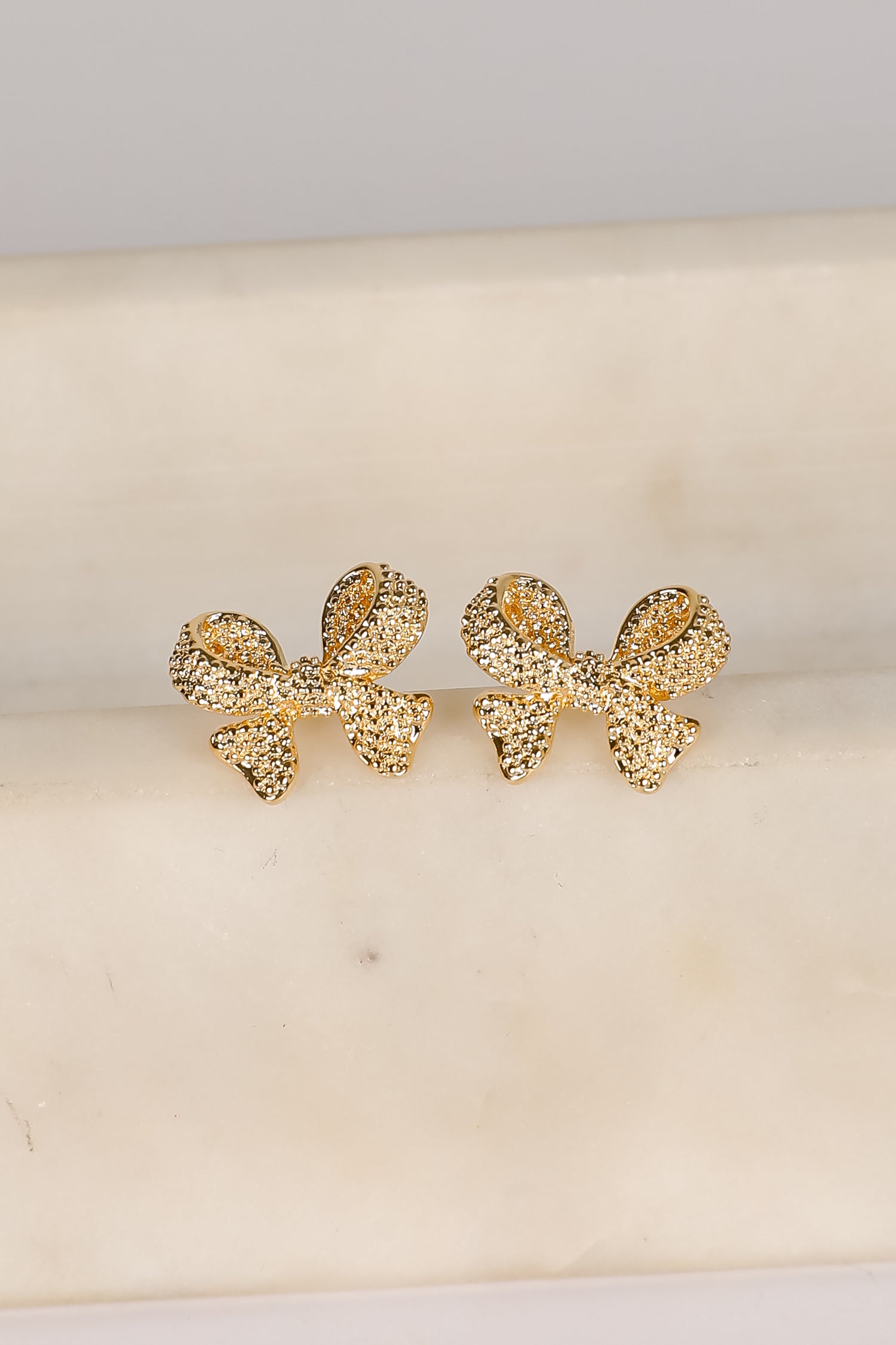 Elegance is in the details, and the Mckenna Gold Bow Earrings are the perfect example! These trendy earrings are designed with a bow shape + stud post back. Add these cute earrings to a black dress + heels to add a girly touch to your date night look!