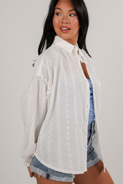 FINAL SALE - Melodies And Memories White Embroidered Button-Up Blouse
